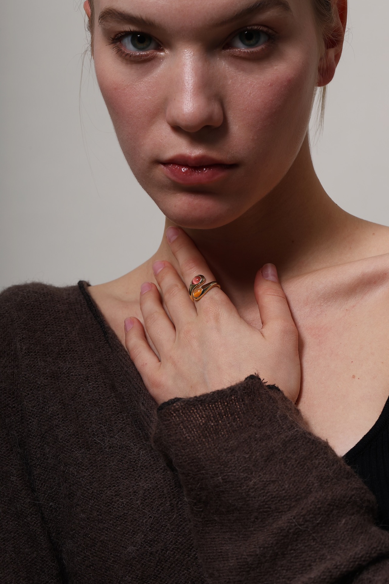 TYNVIE 欧根紗灯笼袖针织衫-米白