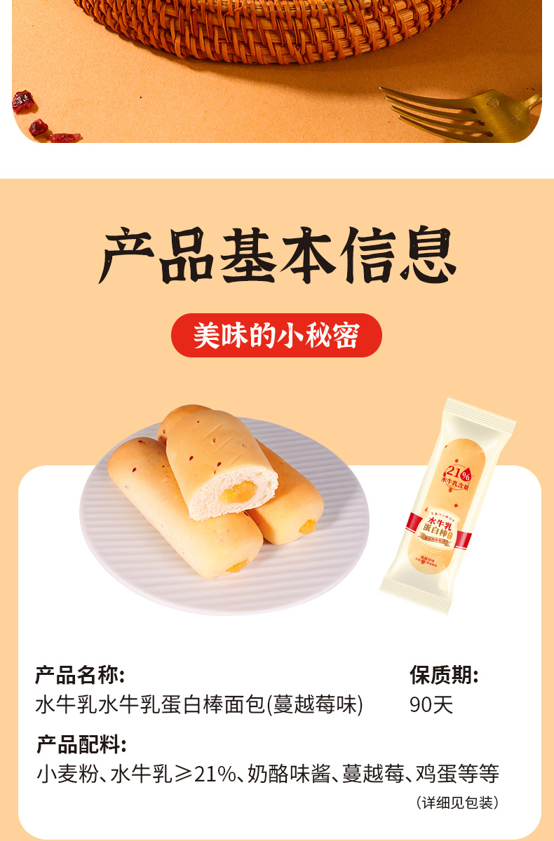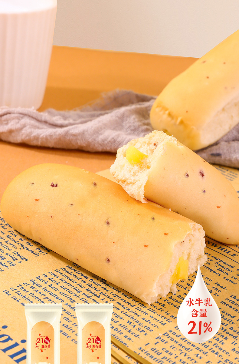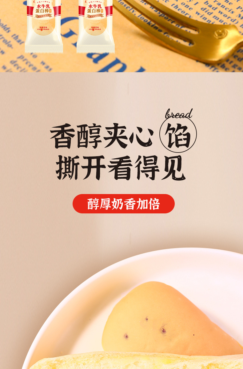 【不加1滴水!水牛乳蛋白棒面包】0反式脂肪酸,手工和面,软绵细腻,大人小孩都爱吃!营养早餐水牛奶味软休闲解馋小零食