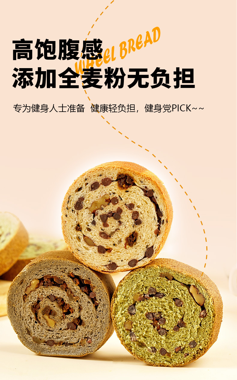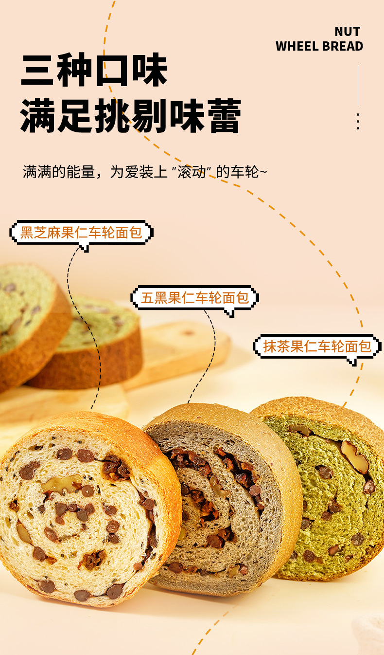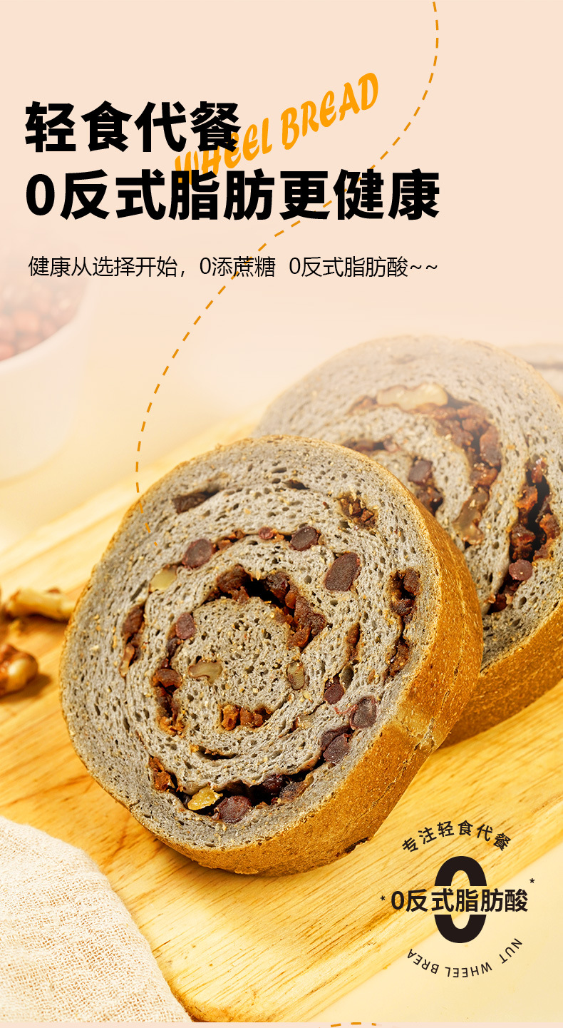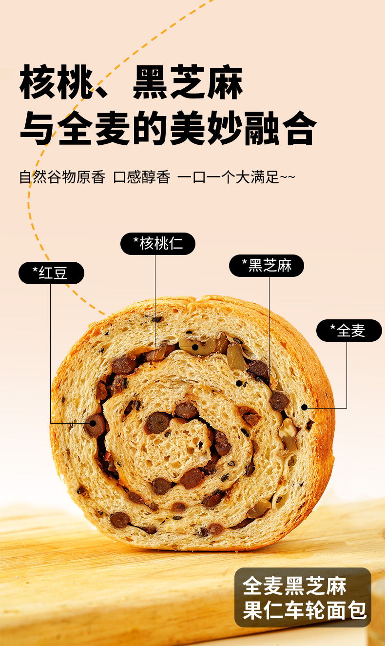 【一口醇香又营养!果仁车轮面包】不单独添加蔗糖全麦黑芝麻果仁车轮面包约枚代餐用零食品