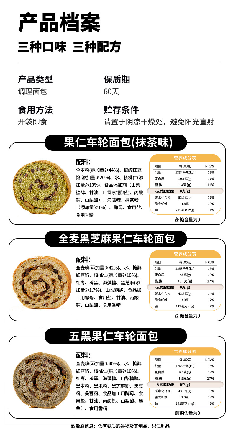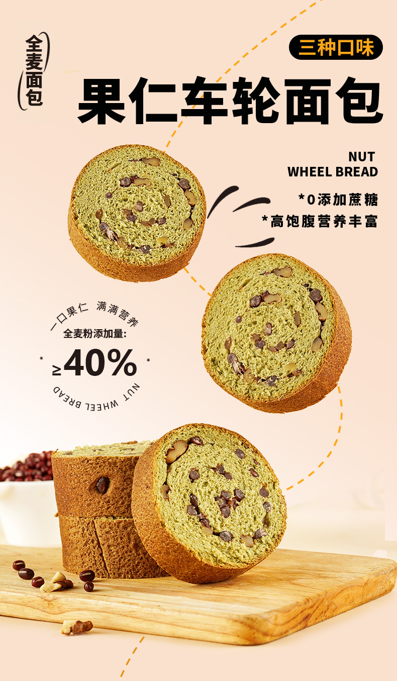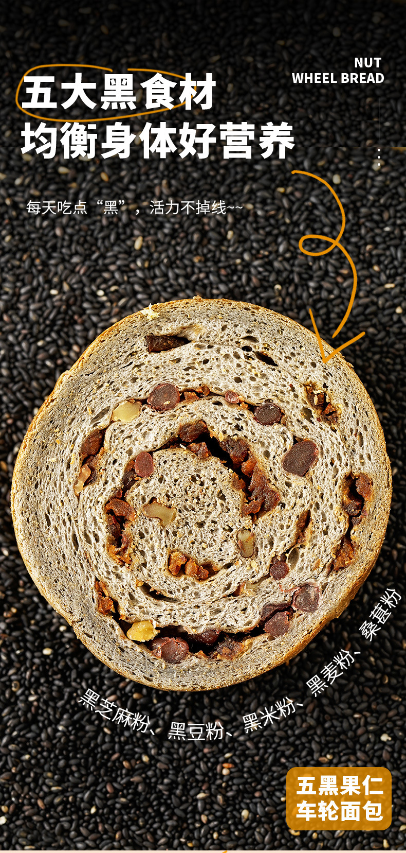 【一口醇香又营养!果仁车轮面包】不单独添加蔗糖全麦黑芝麻果仁车轮面包约枚代餐用零食品