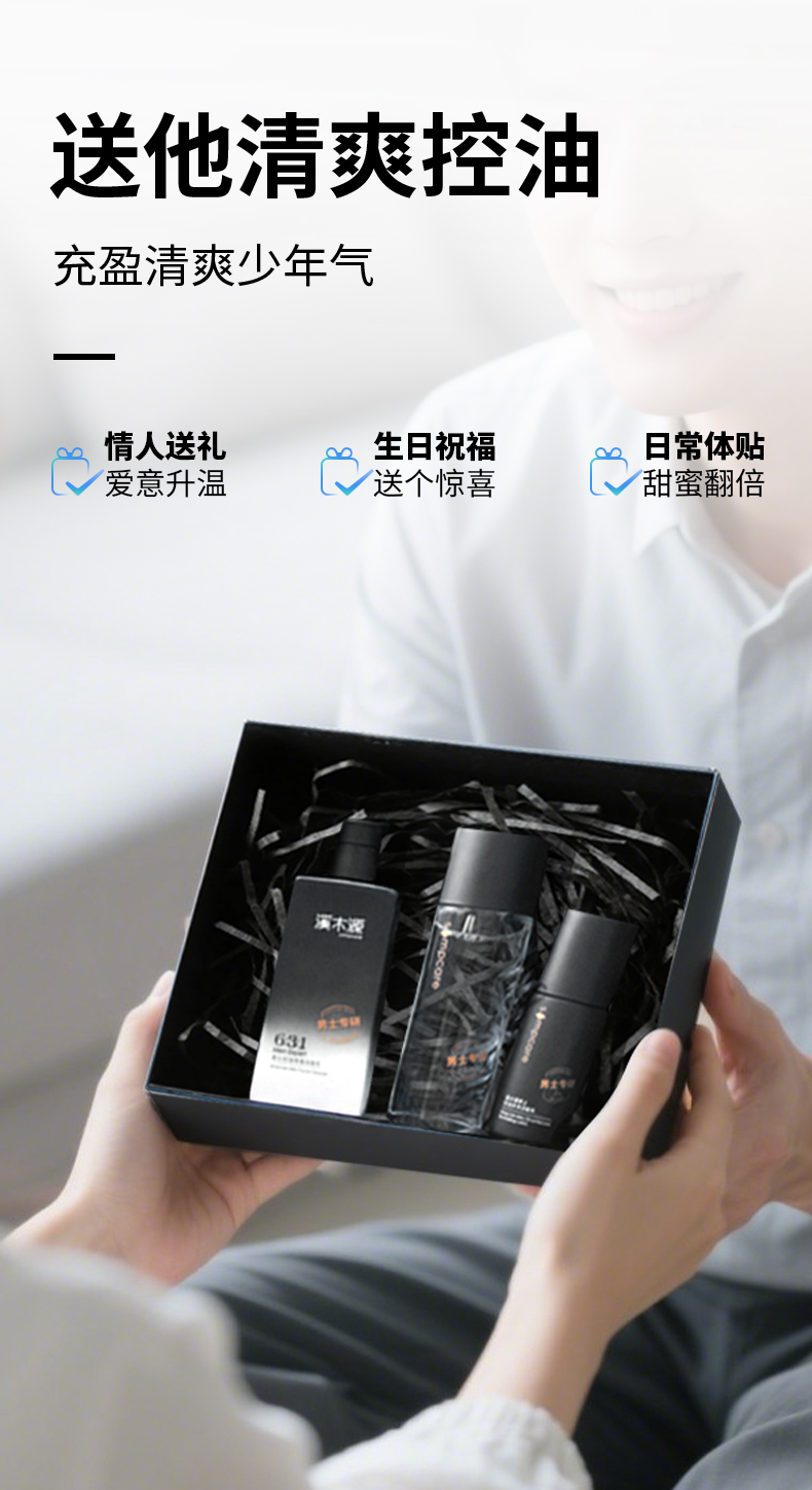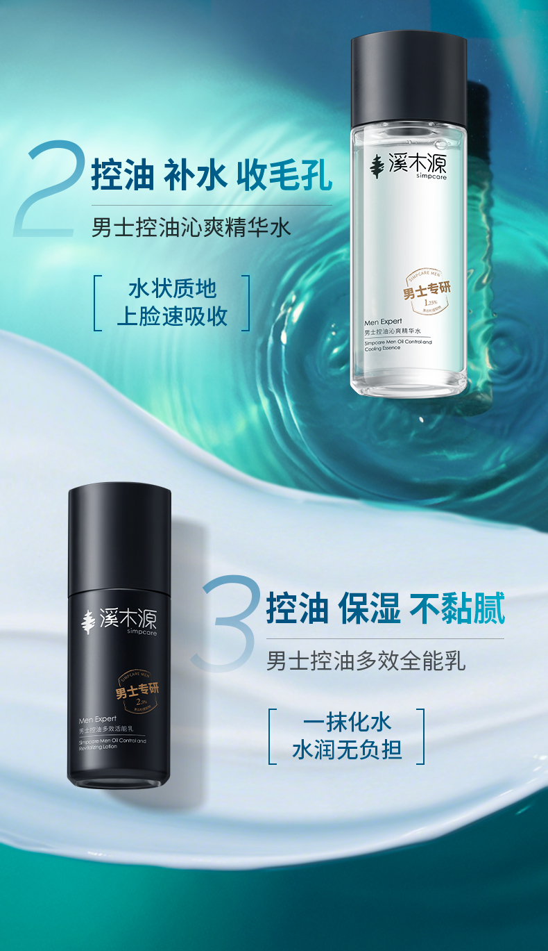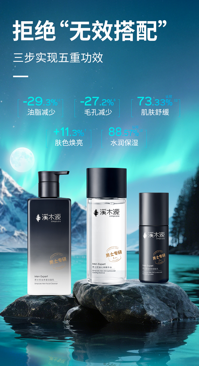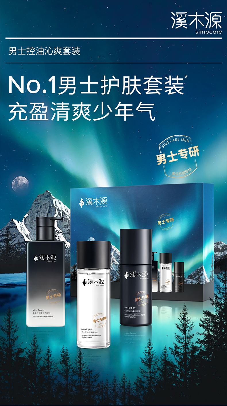 【分销专享】溪木源男士精华爽肤水洁面乳极光黑云杉控油保湿补水舒缓护肤