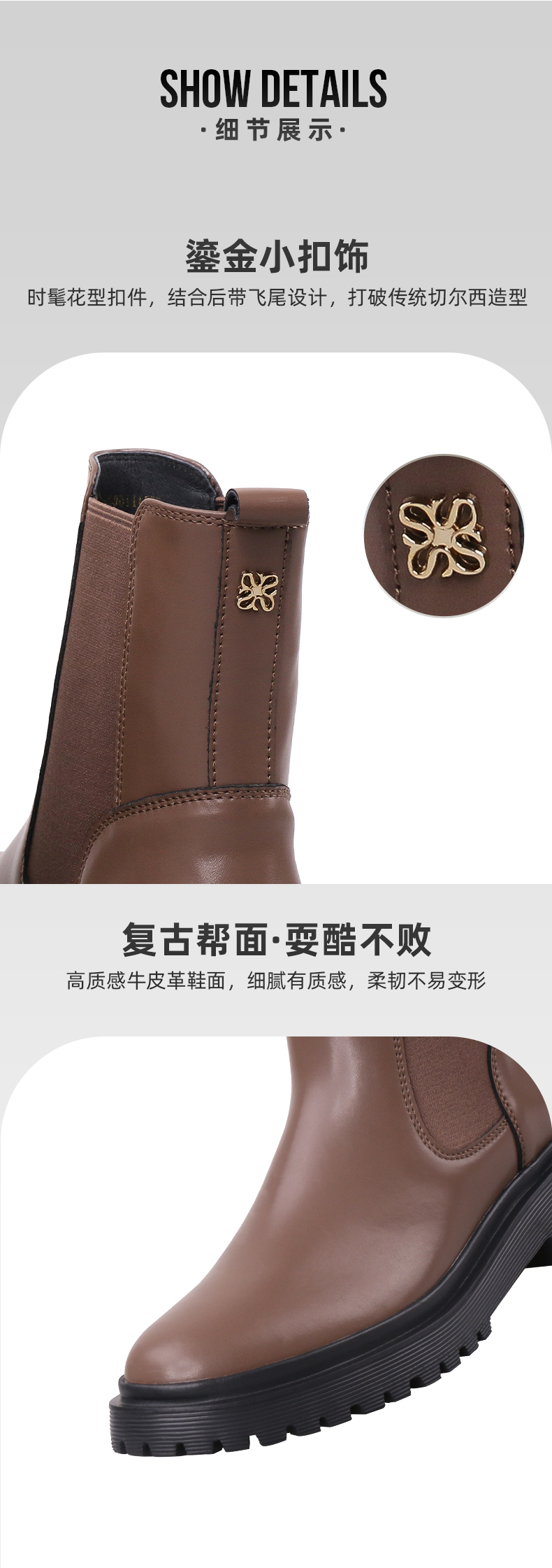 2、细节展示:材质、工艺、做工等;