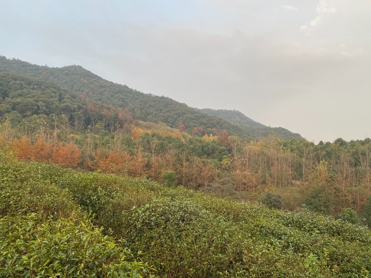 上半年是采茶制茶最忙碌的时期,这次去到村里,已经见不到采茶、制茶的场景,家家户户都忙着卖茶叶。包兴伟带着我们爬到了双灵村的茶山,“整个村的茶园种植面积有2500亩,核心产区每年的产量有200吨,红茶用的茶青都是群体种,比起龙井43号,群体种制作的红茶不仅茶香浓郁,而且口感鲜甜,也更加耐泡。这几年有农户陆续‘红改绿’,茶树从群体种改成了龙井43号,九曲红梅的产量也在下降。”