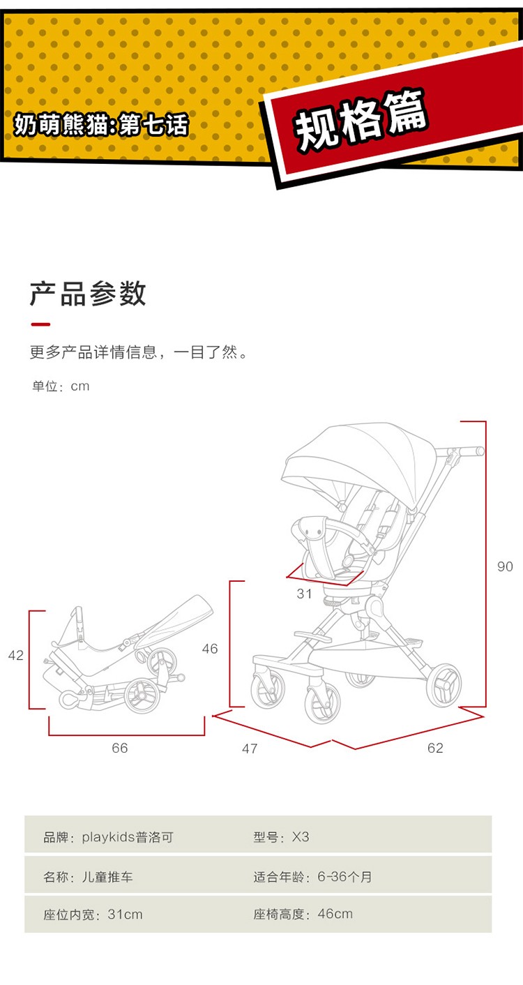 Playkids遛娃神器婴儿推车X3-熊猫限量版