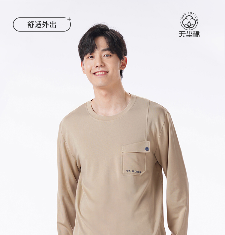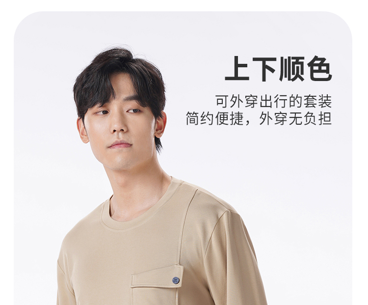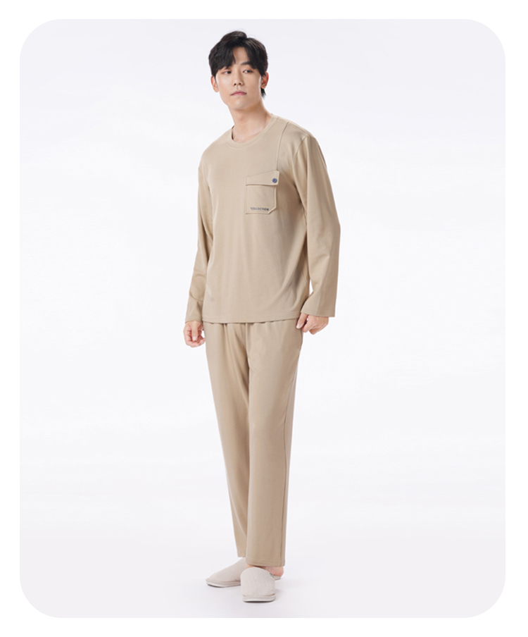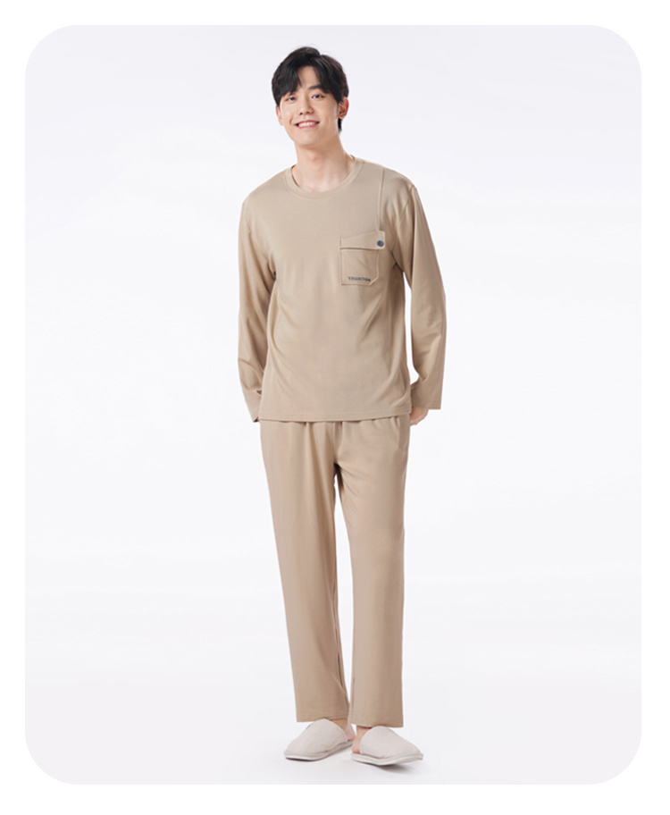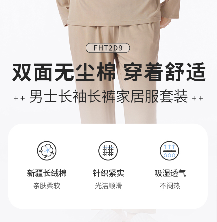 都市丽人都市锋尚睡衣舒适外出长袖双面无尘棉薄男士棉质长袖套装FHT2D9
