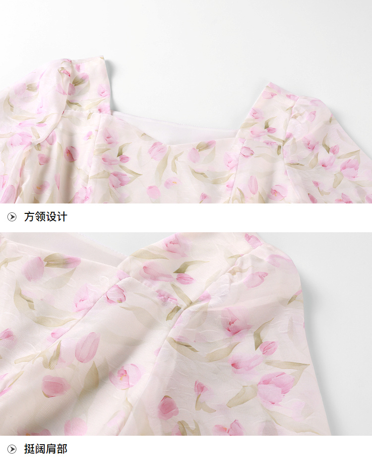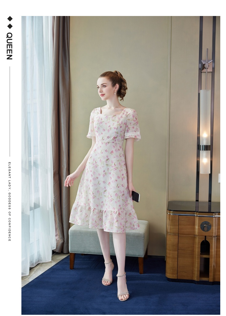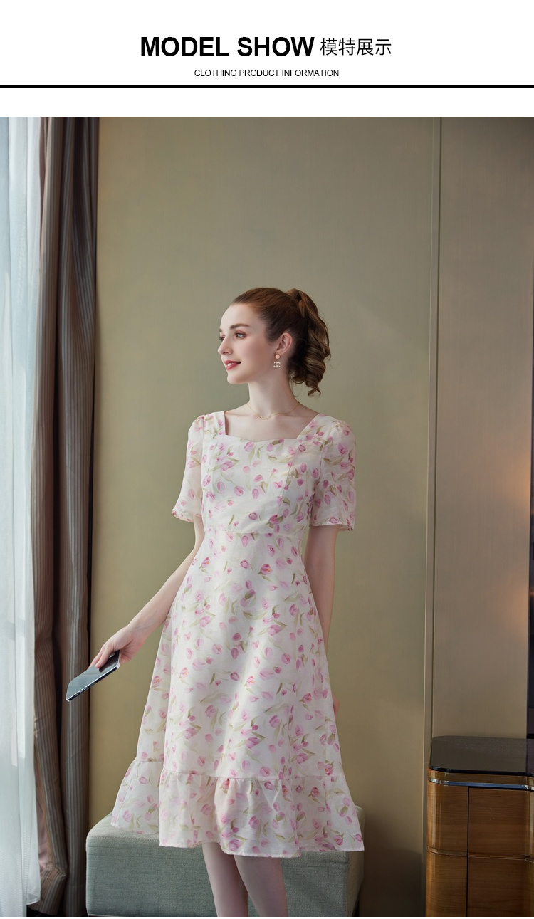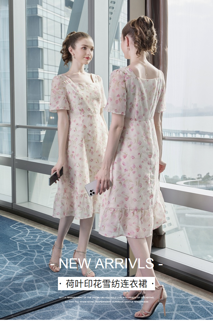 【清仓超15天不保价】奢姿2024夏季新款大码女装气质方领裙子胖妹妹荷叶印花雪纺连衣裙9942853415