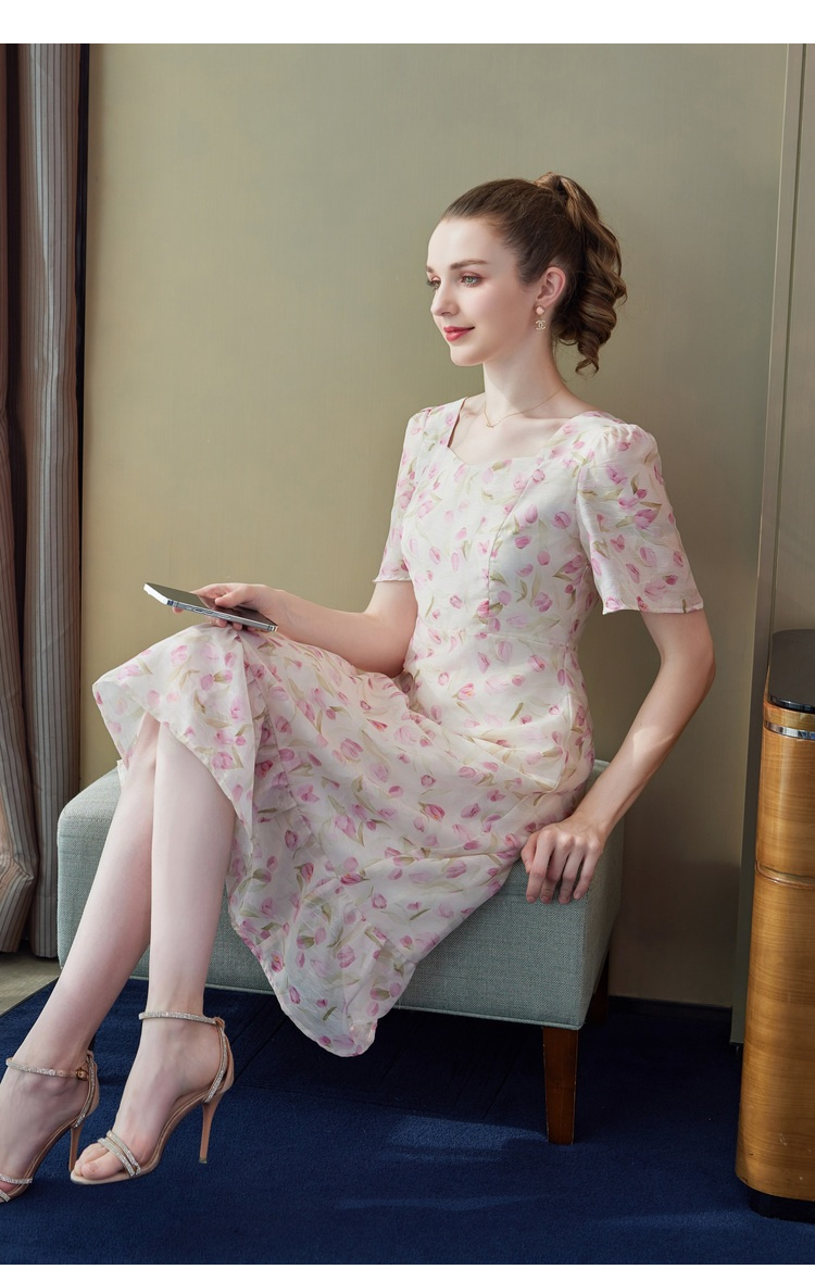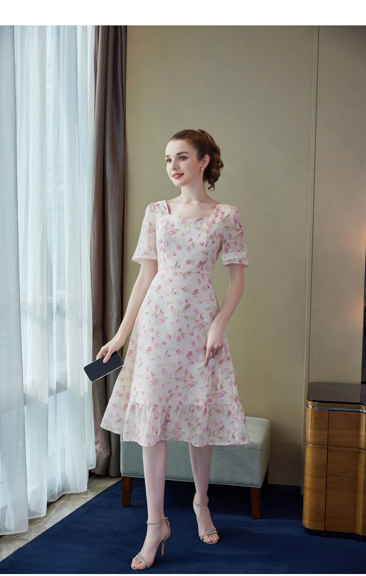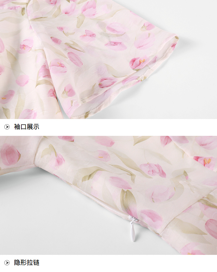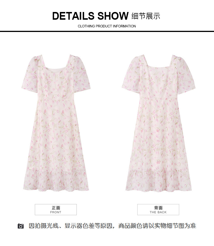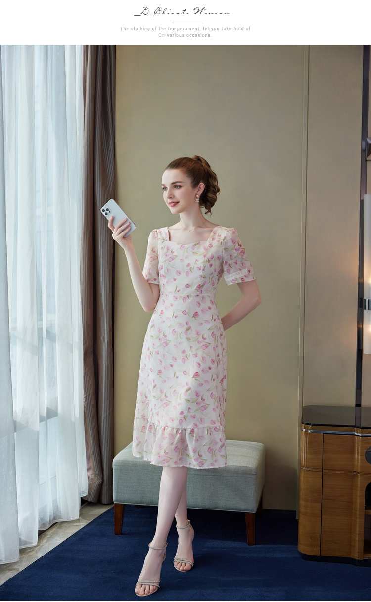 【清仓超15天不保价】奢姿2024夏季新款大码女装气质方领裙子胖妹妹荷叶印花雪纺连衣裙9942853415