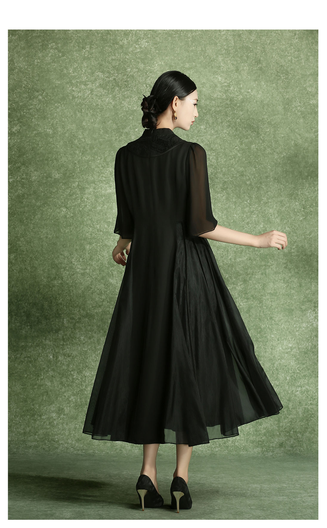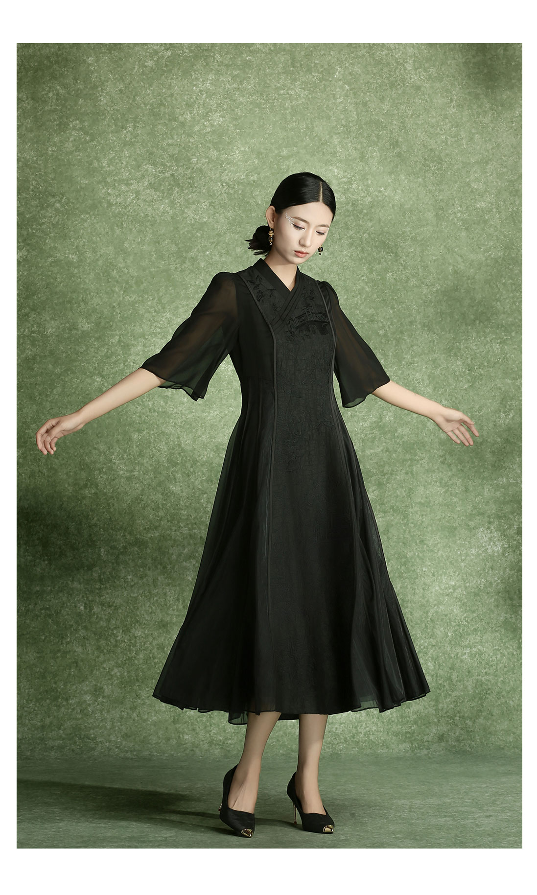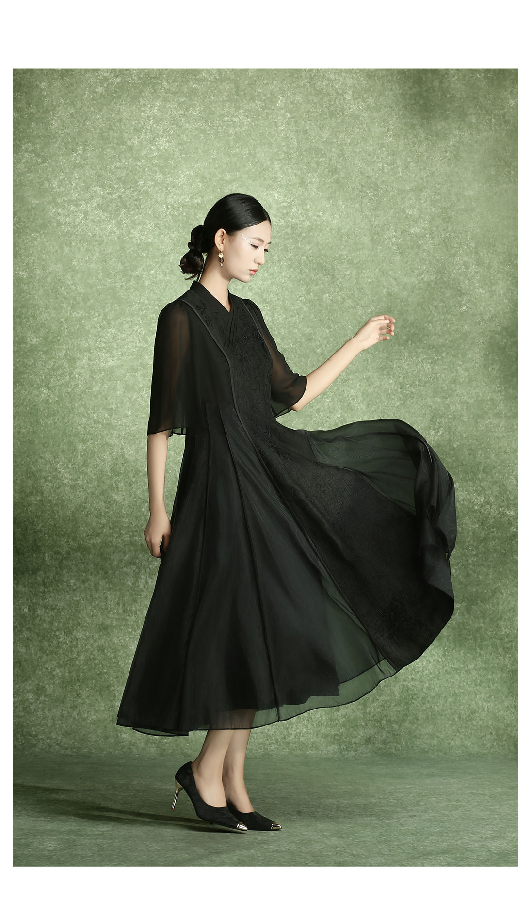 吉祥衣家中式国风高定真丝气质显瘦修身女装百尺楼高水接天连衣裙