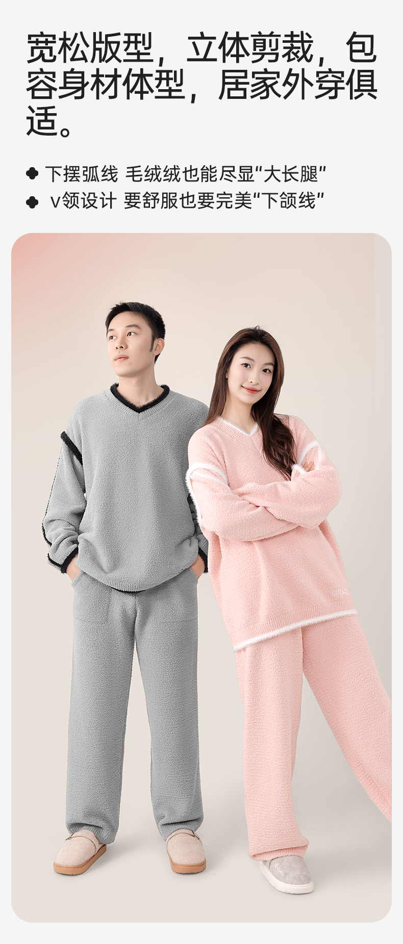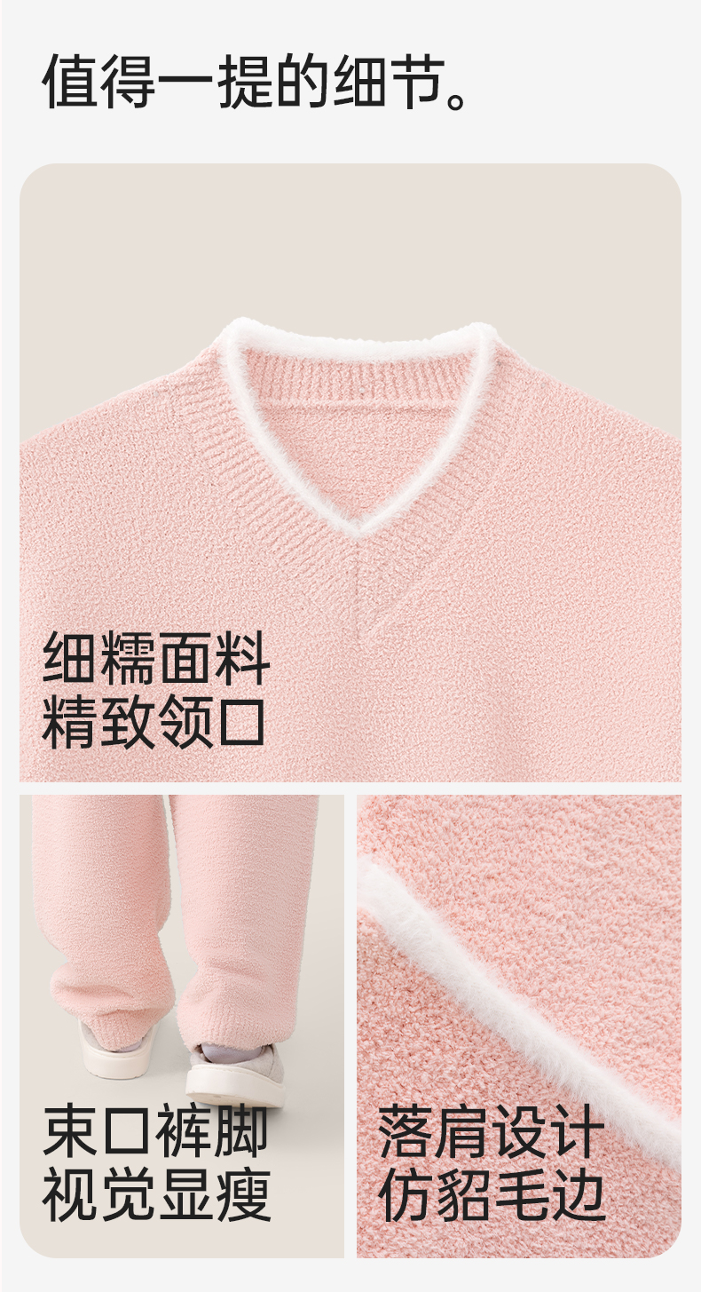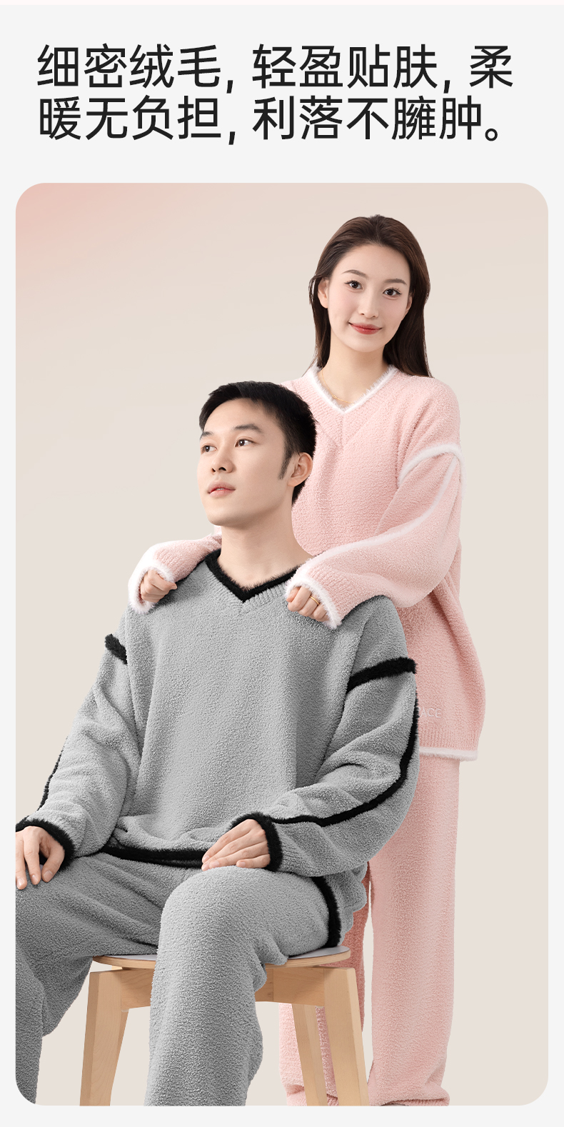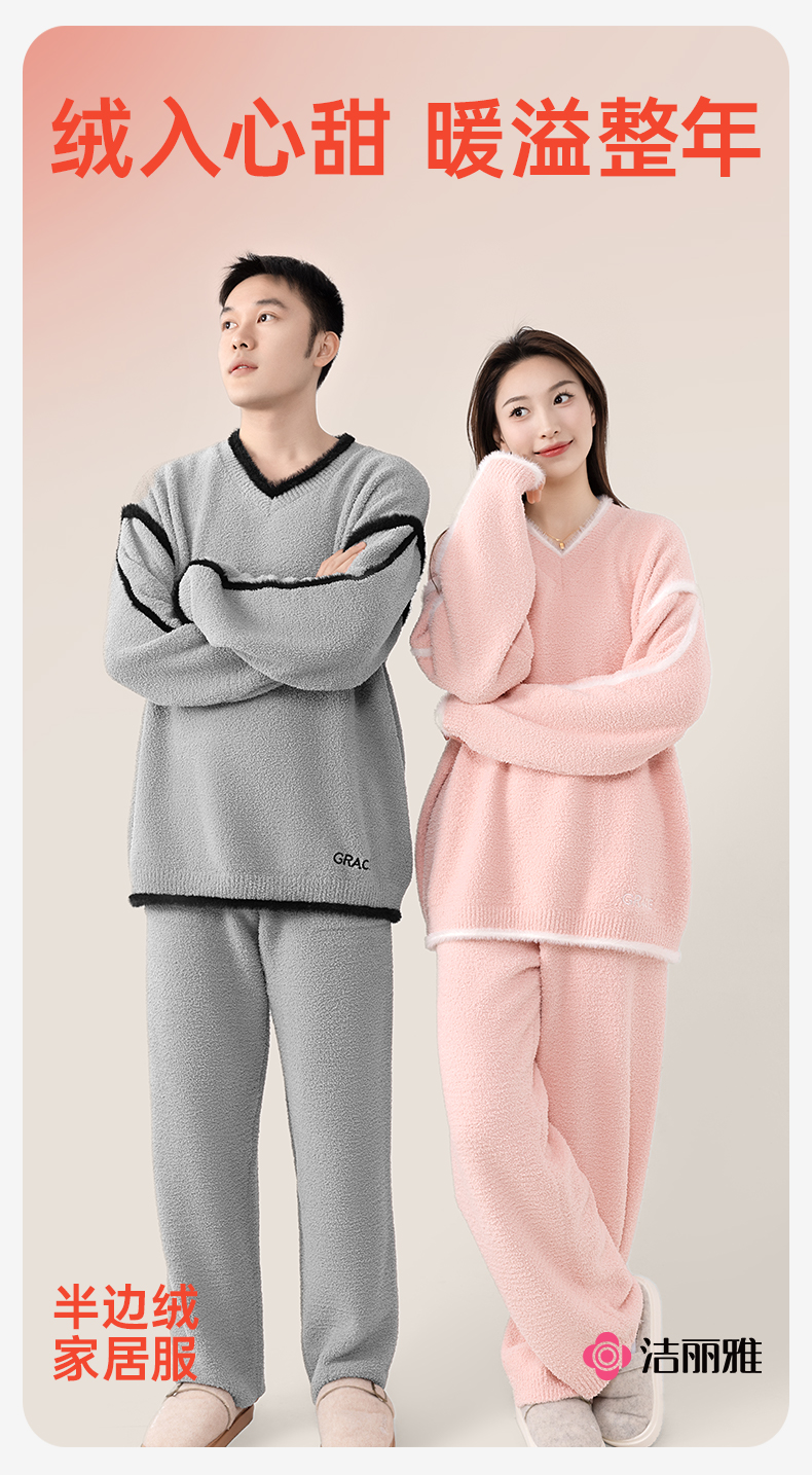 洁丽雅家居服套装睡衣女款秋冬季2024新款珊瑚绒冬天加绒