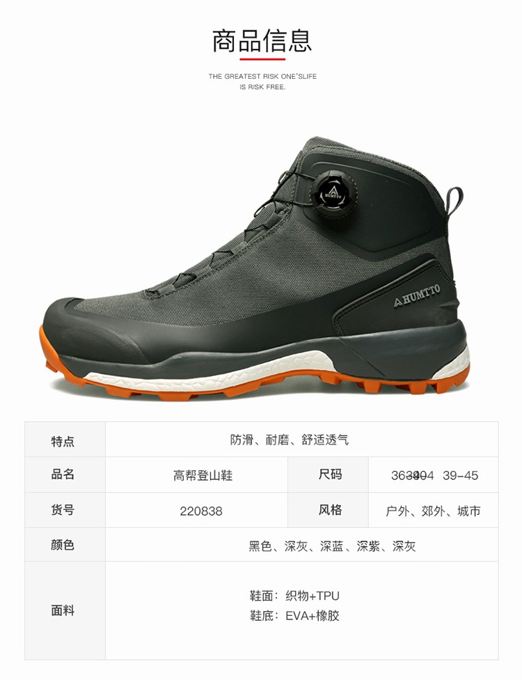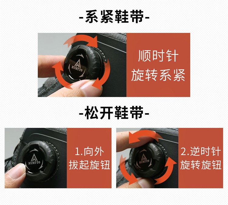 悍途(HUMTTO)户外登山鞋秋冬防滑耐磨舒适透气鞋带旋钮式设计快速穿脱户外爬山鞋220838AB