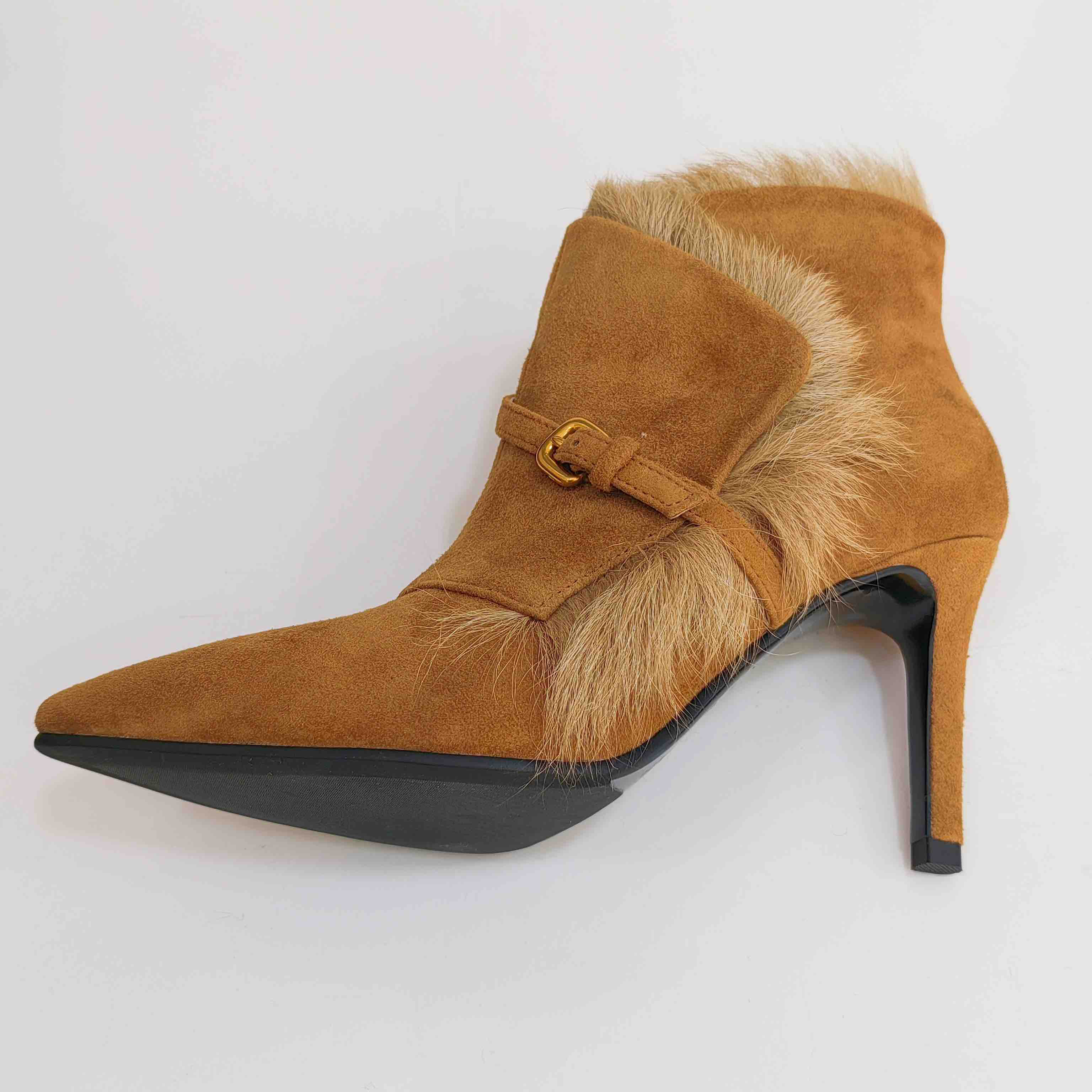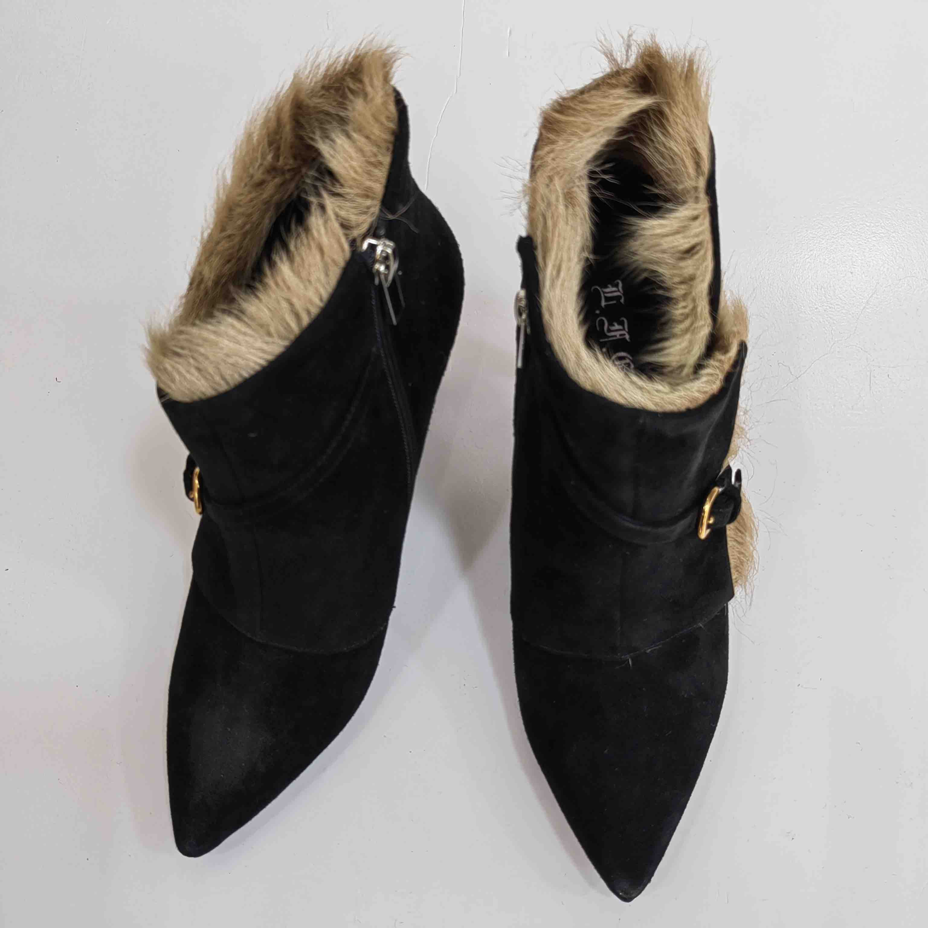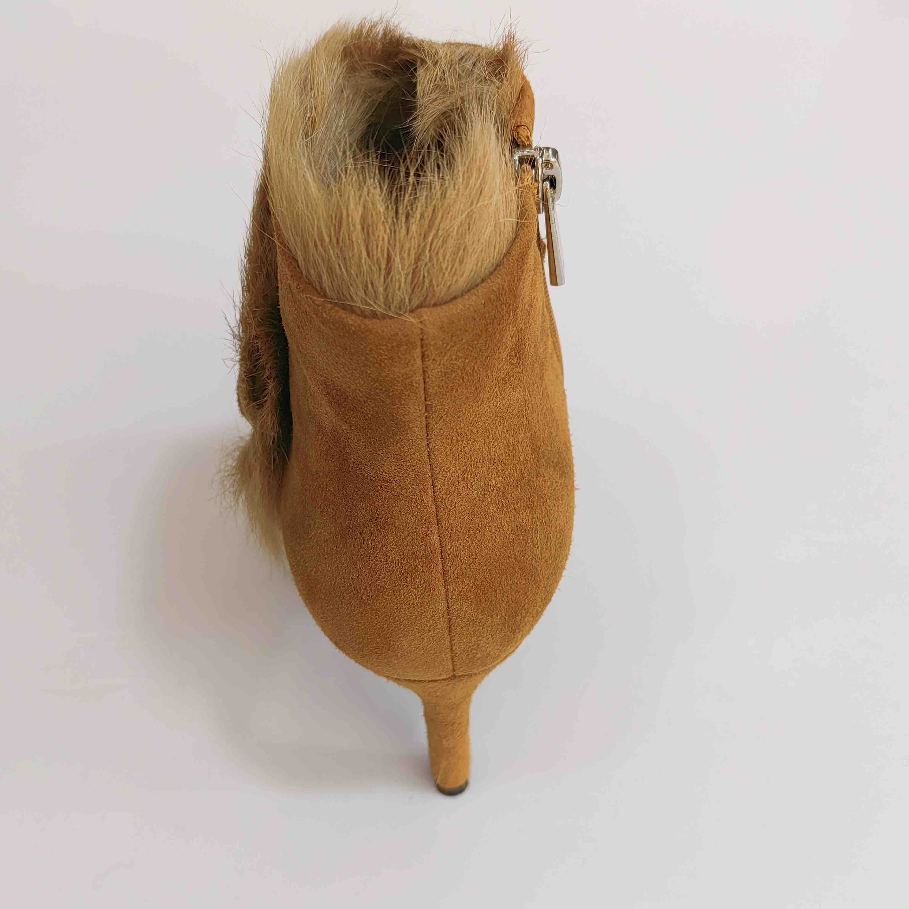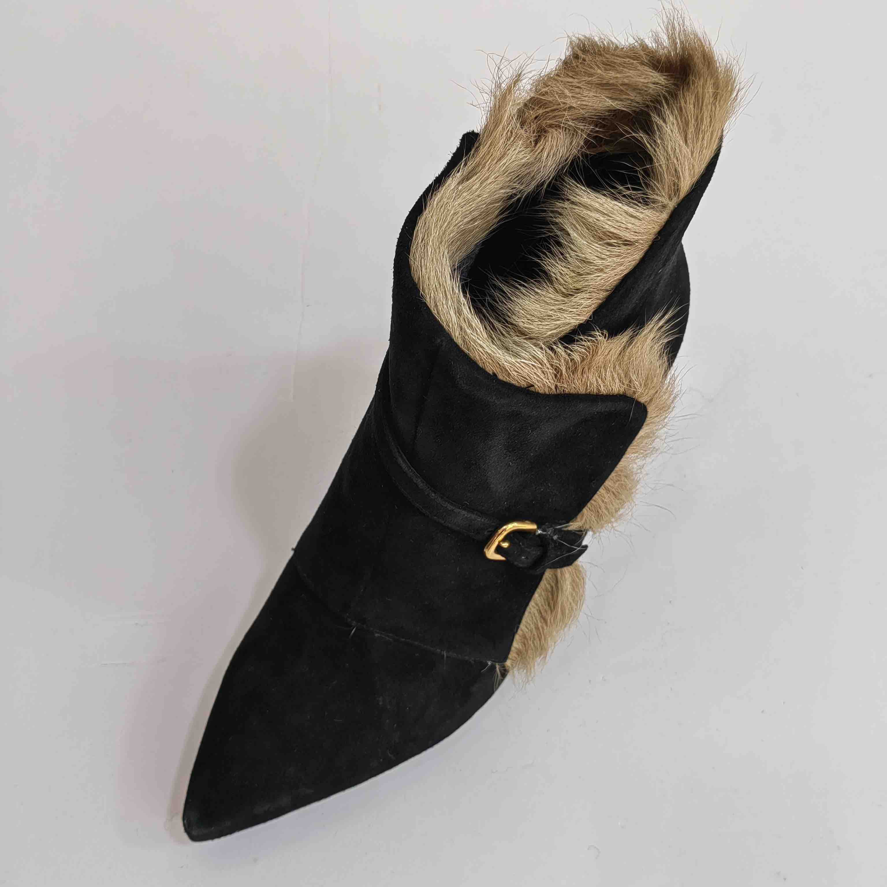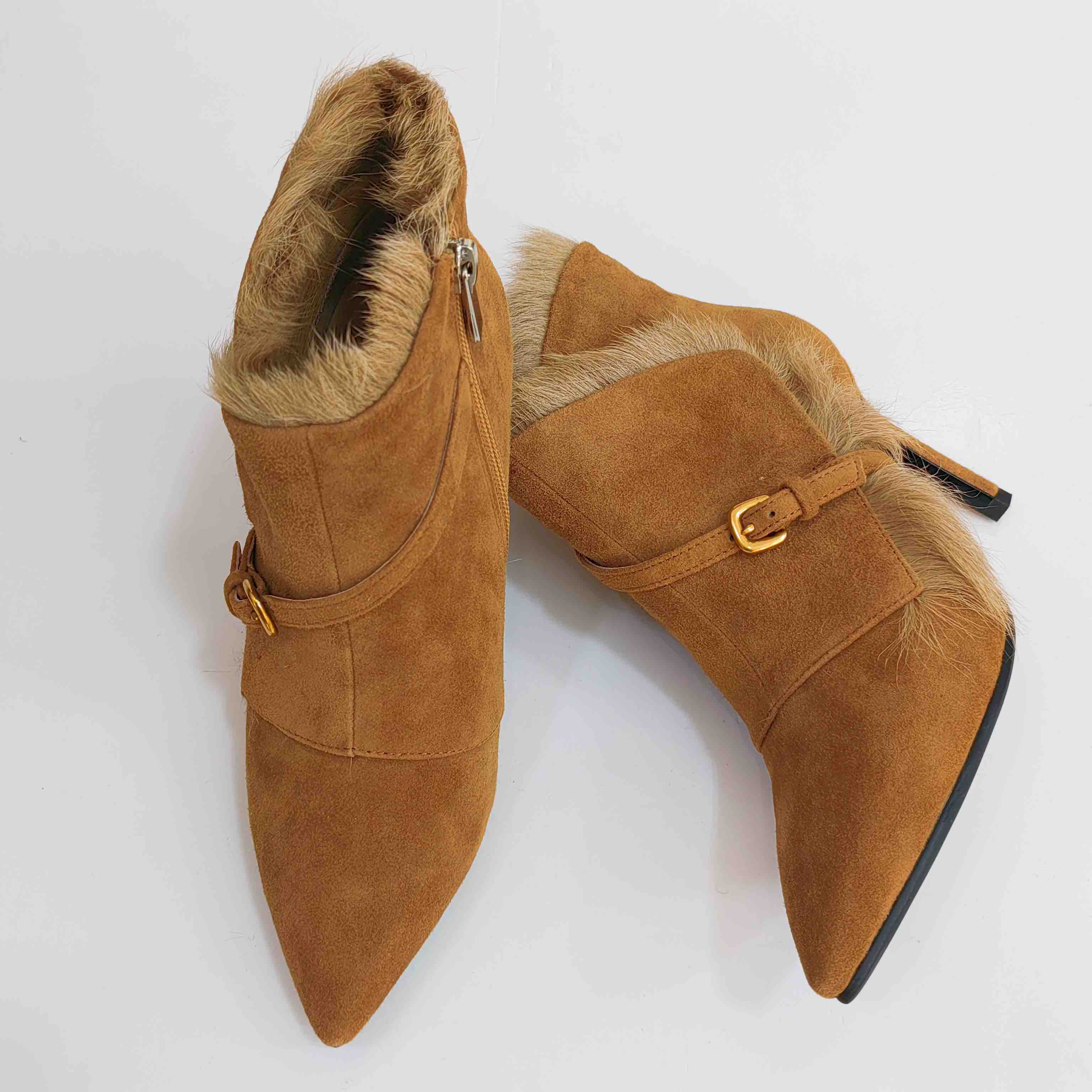 LFGJ 5805 真皮绒面高跟短靴细跟尖头毛毛靴子时尚