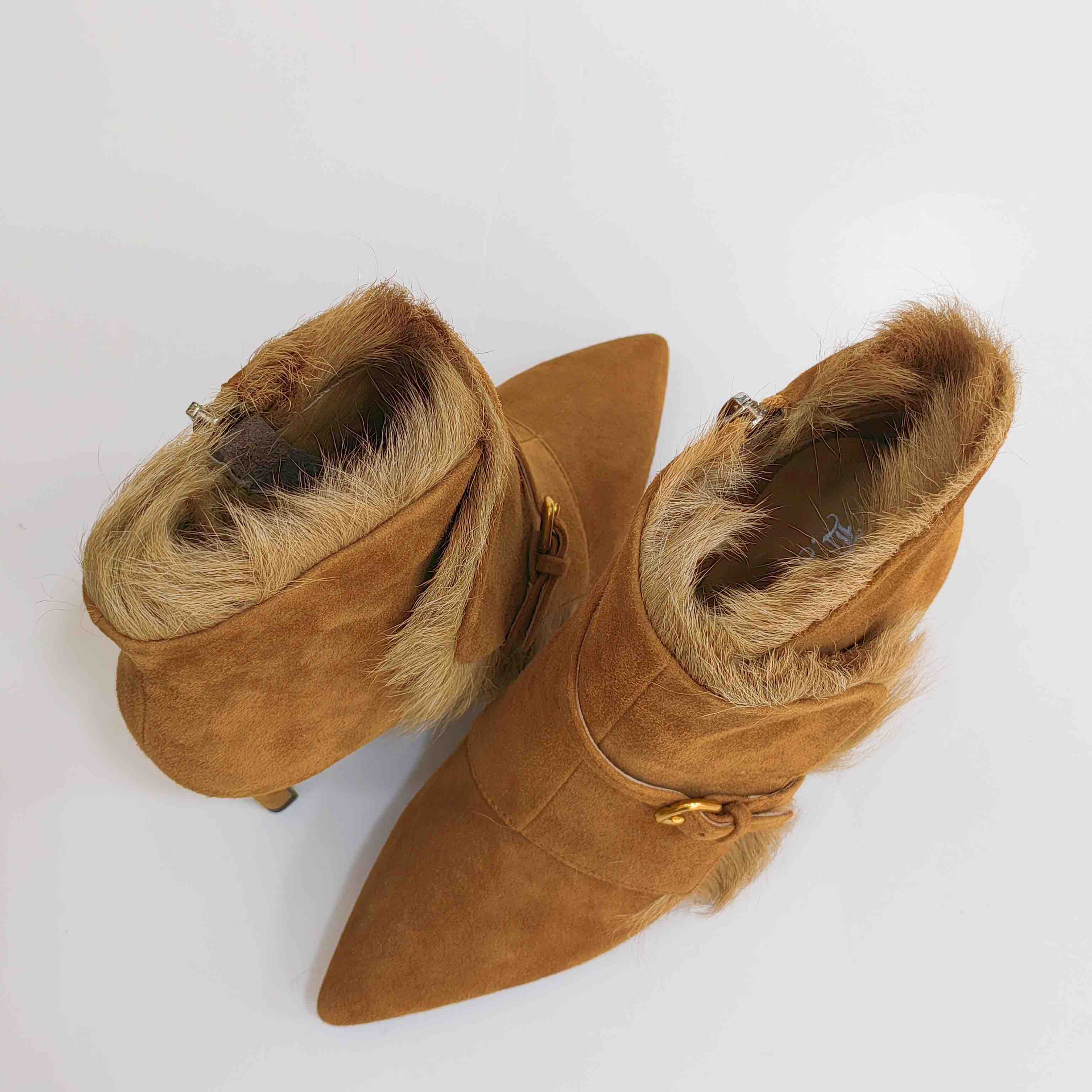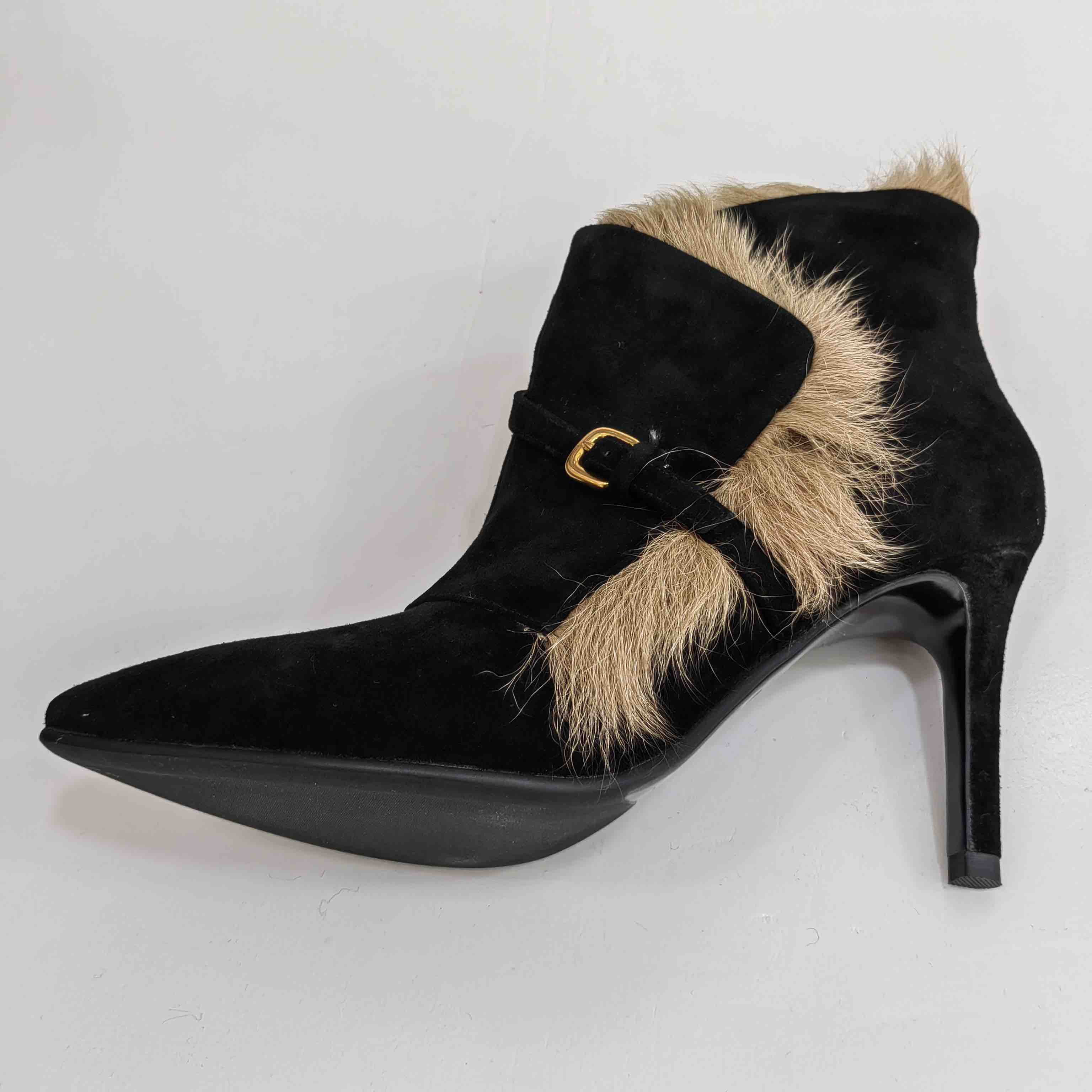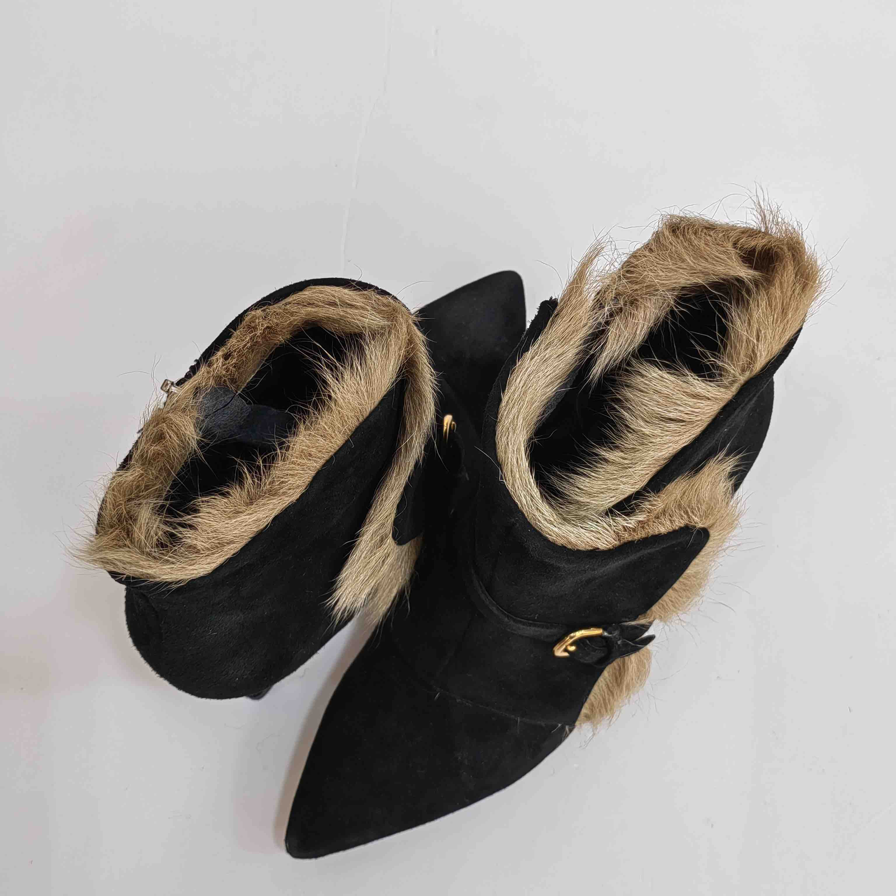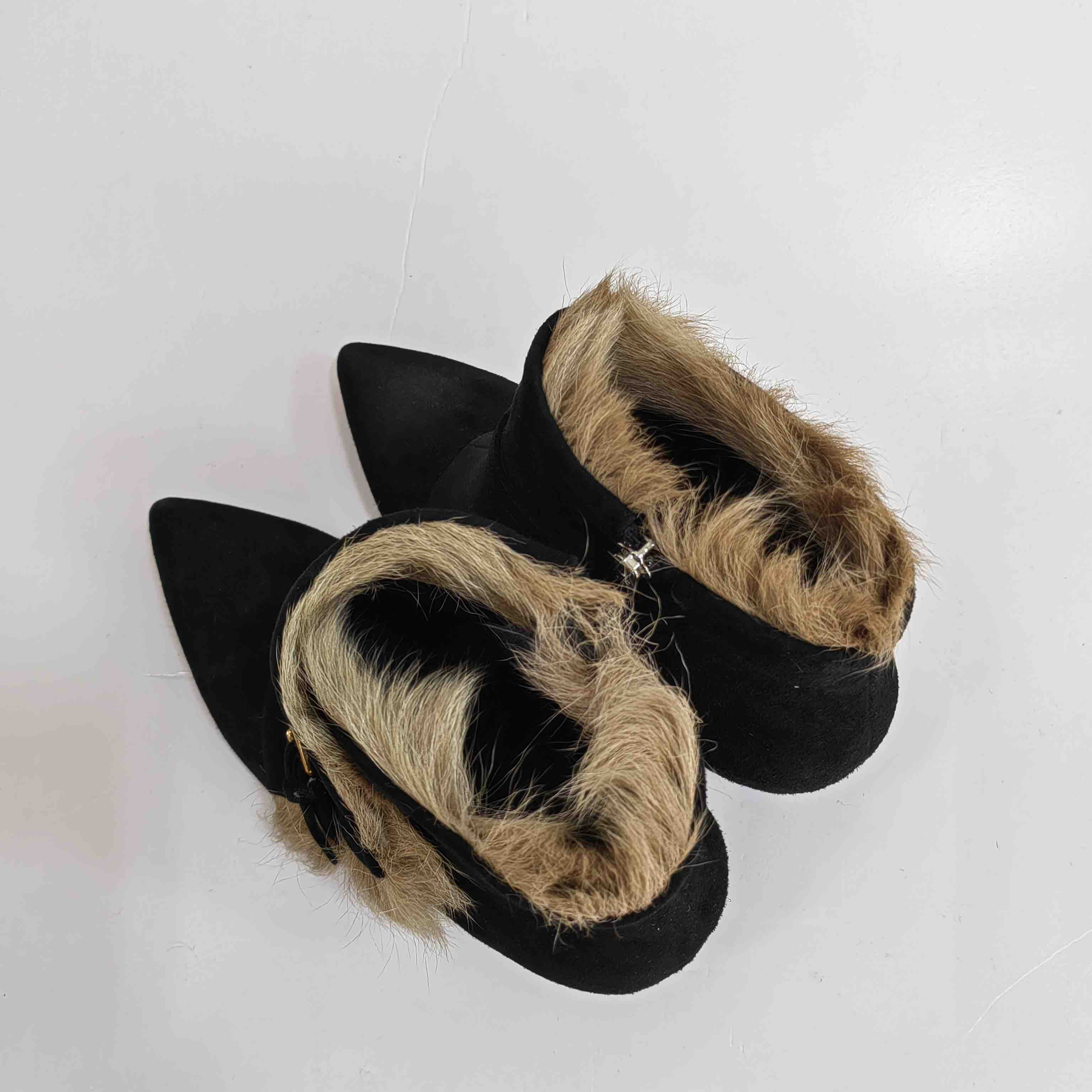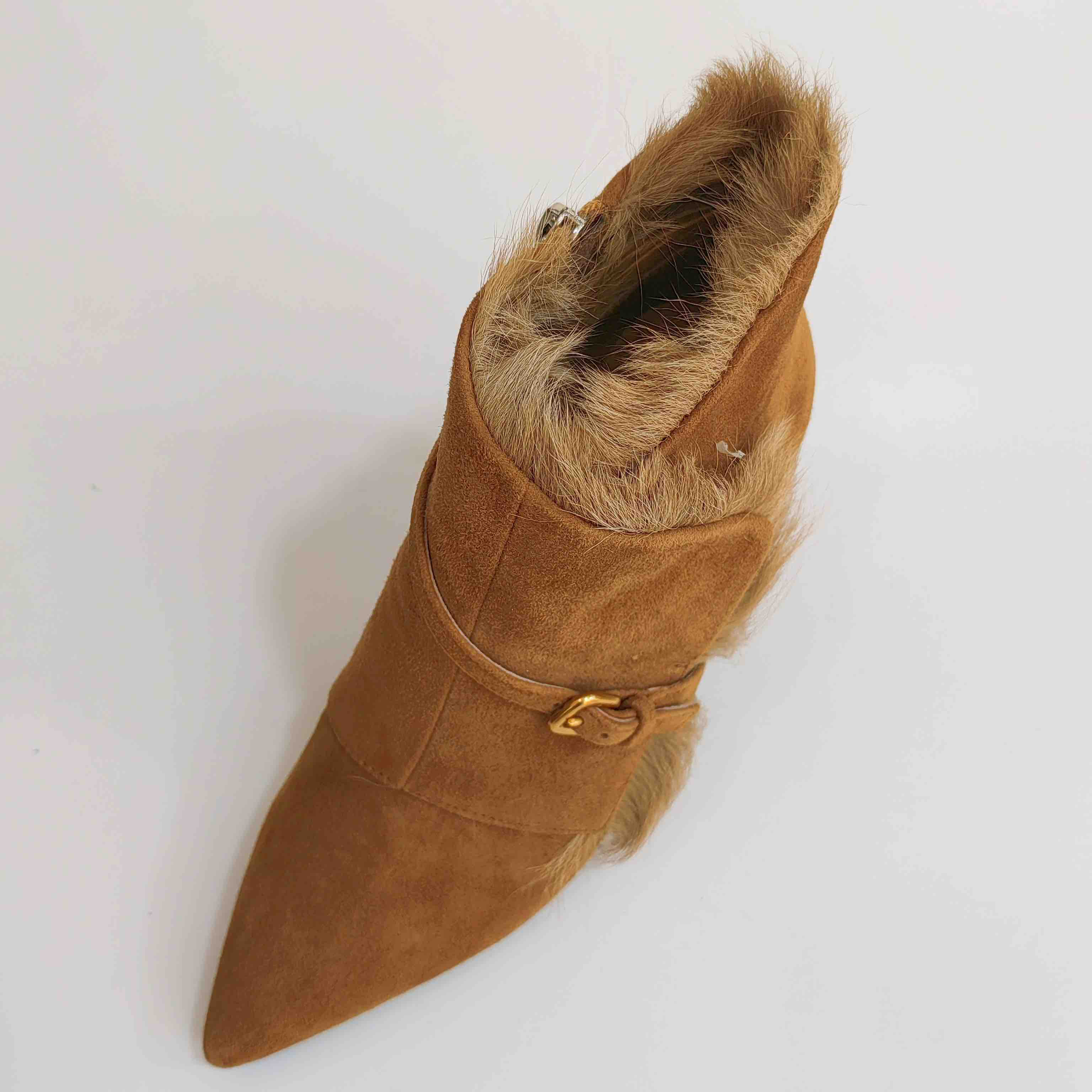 LFGJ 5805 真皮绒面高跟短靴细跟尖头毛毛靴子时尚