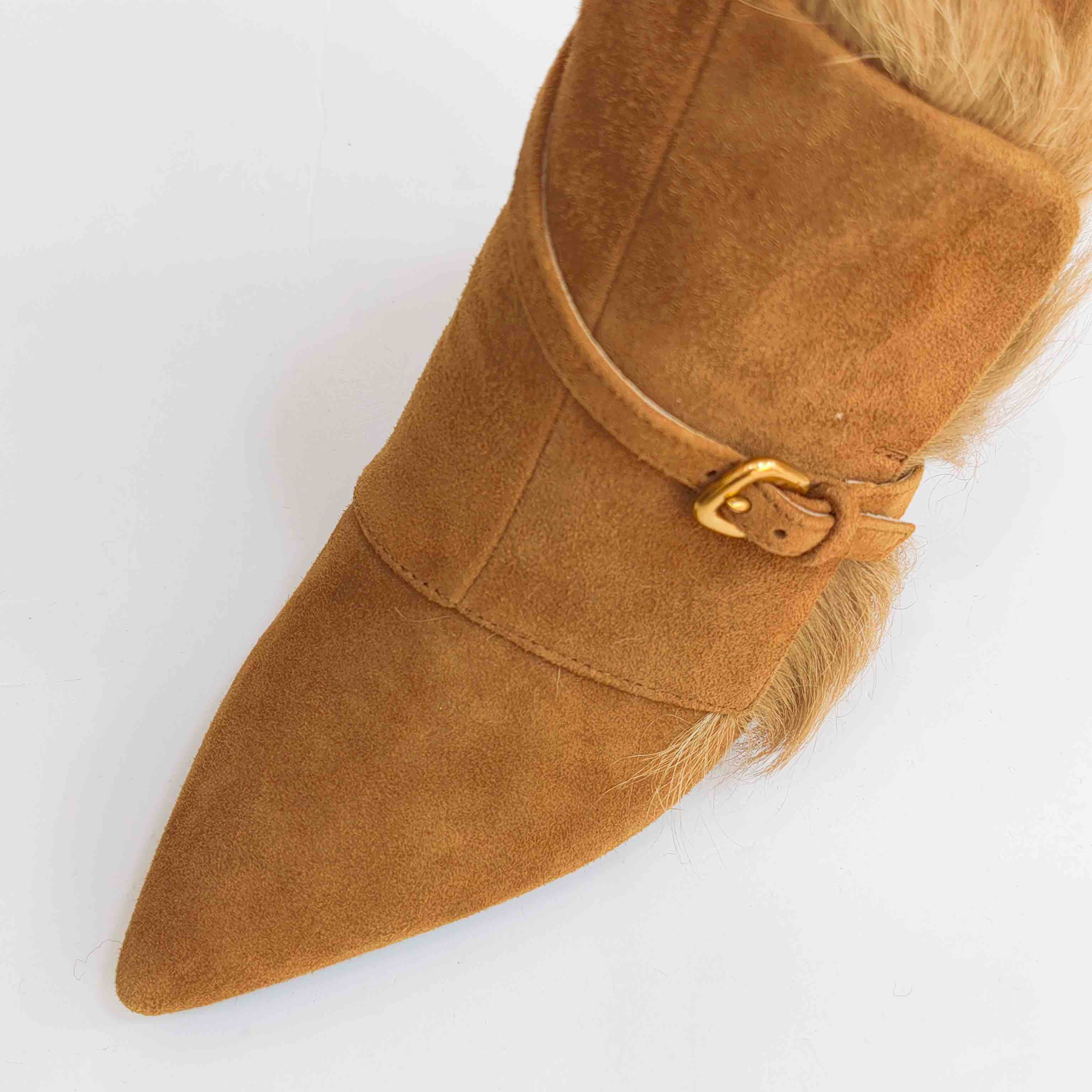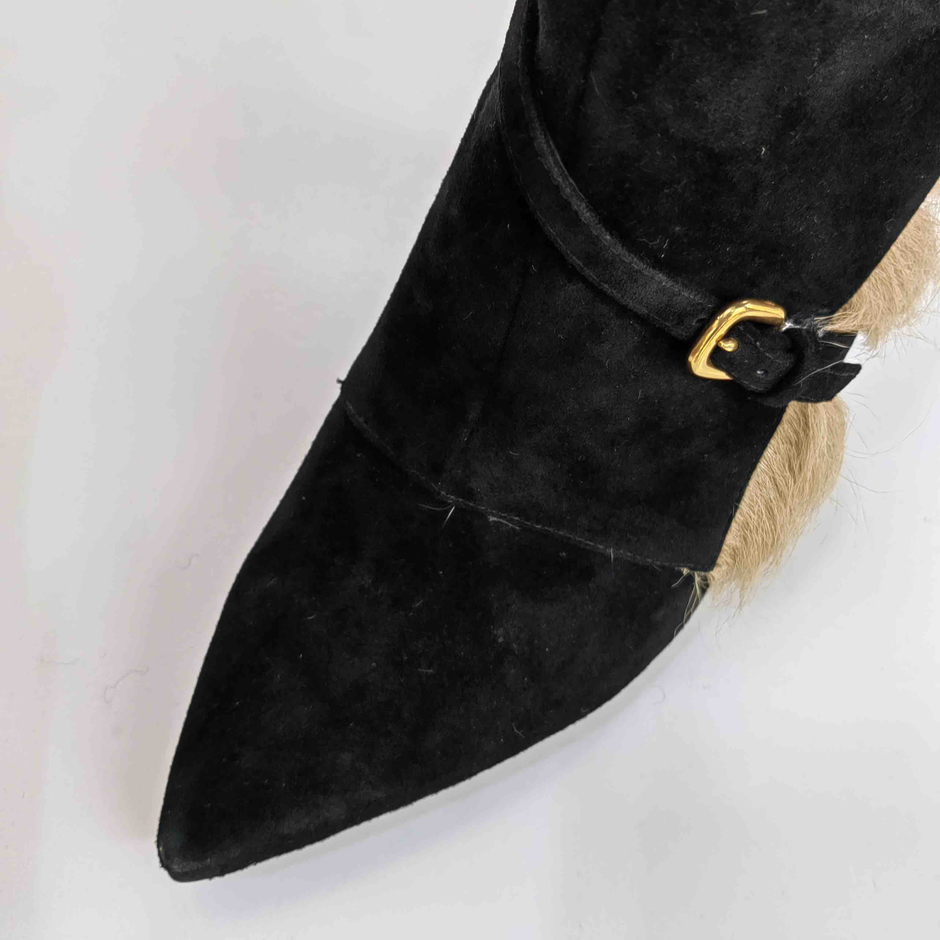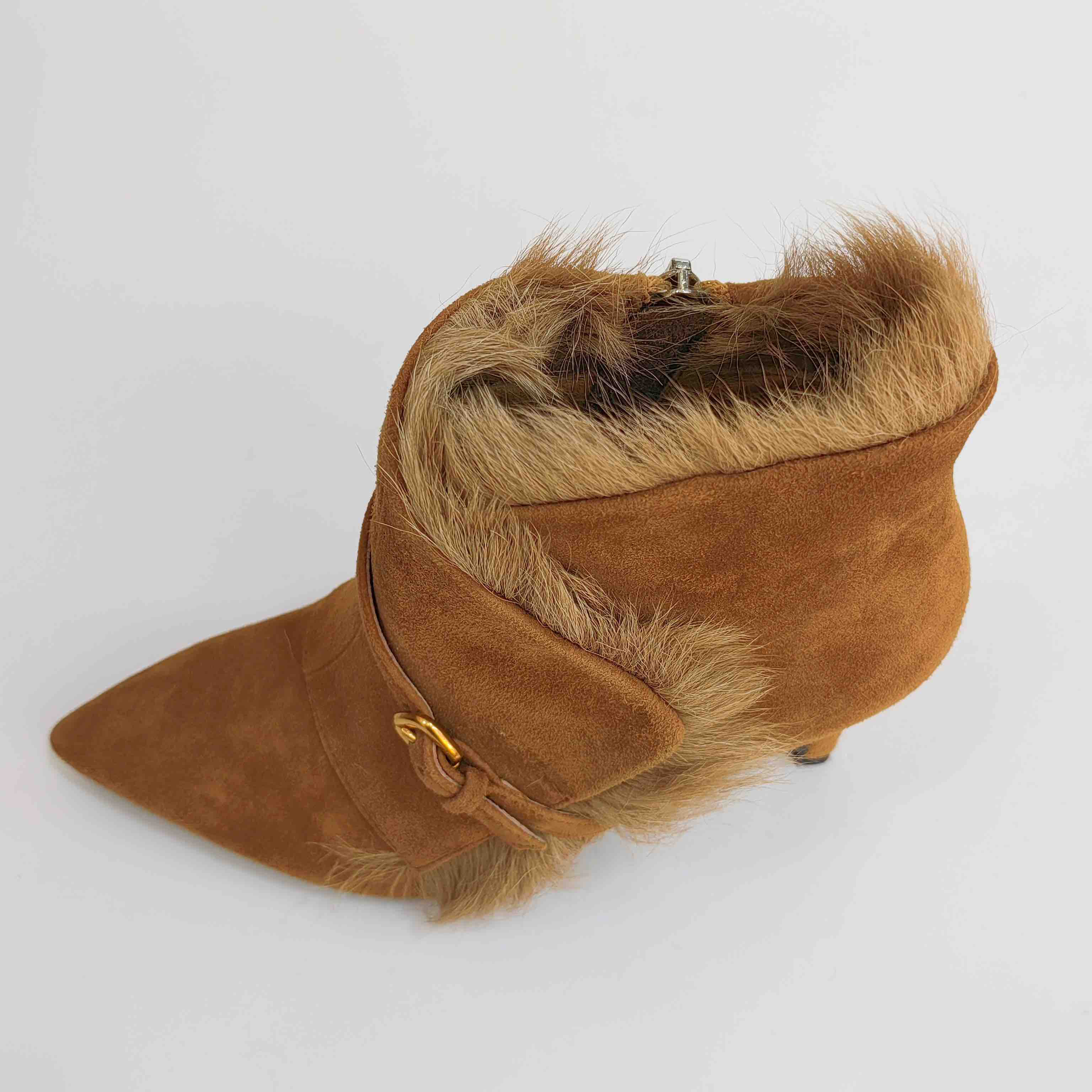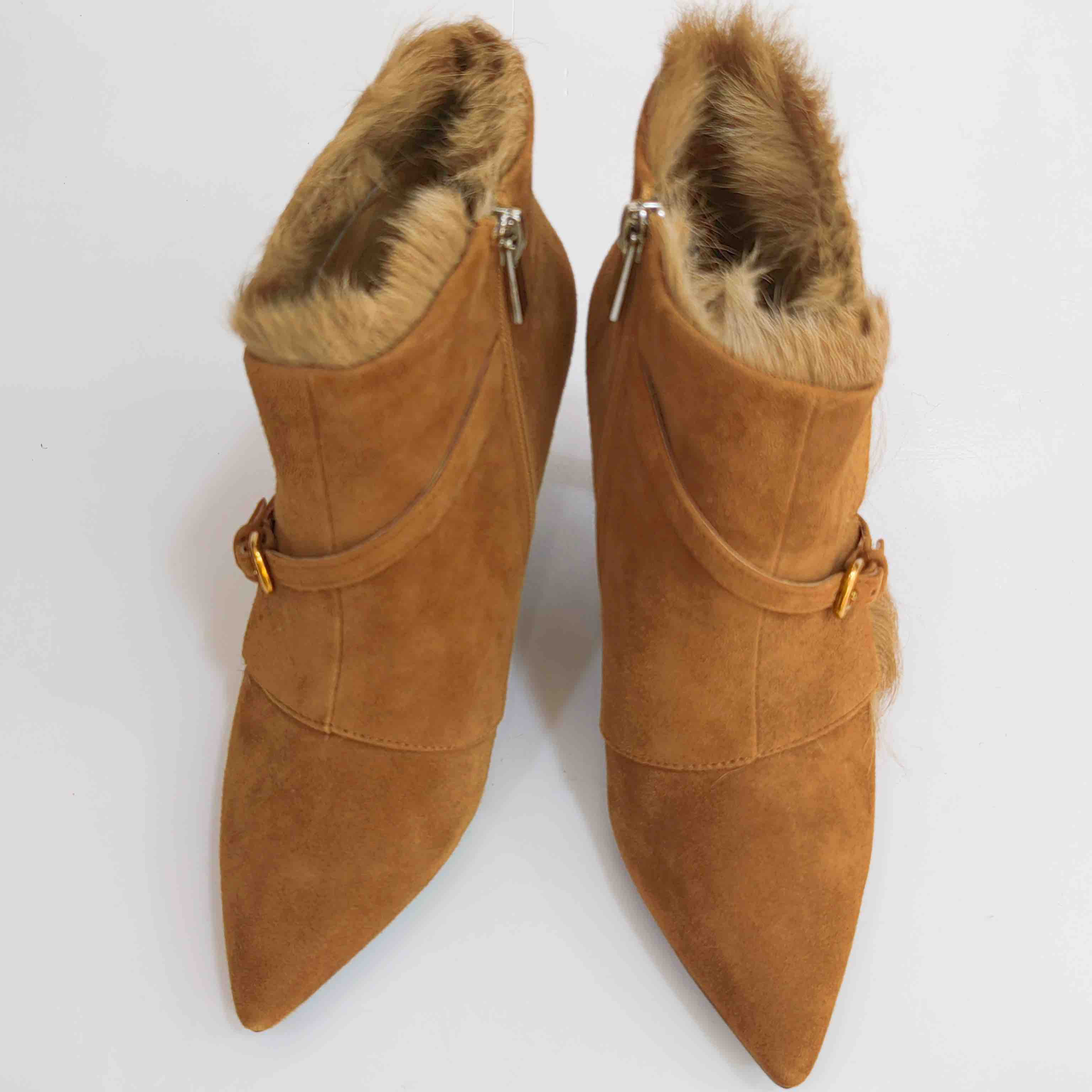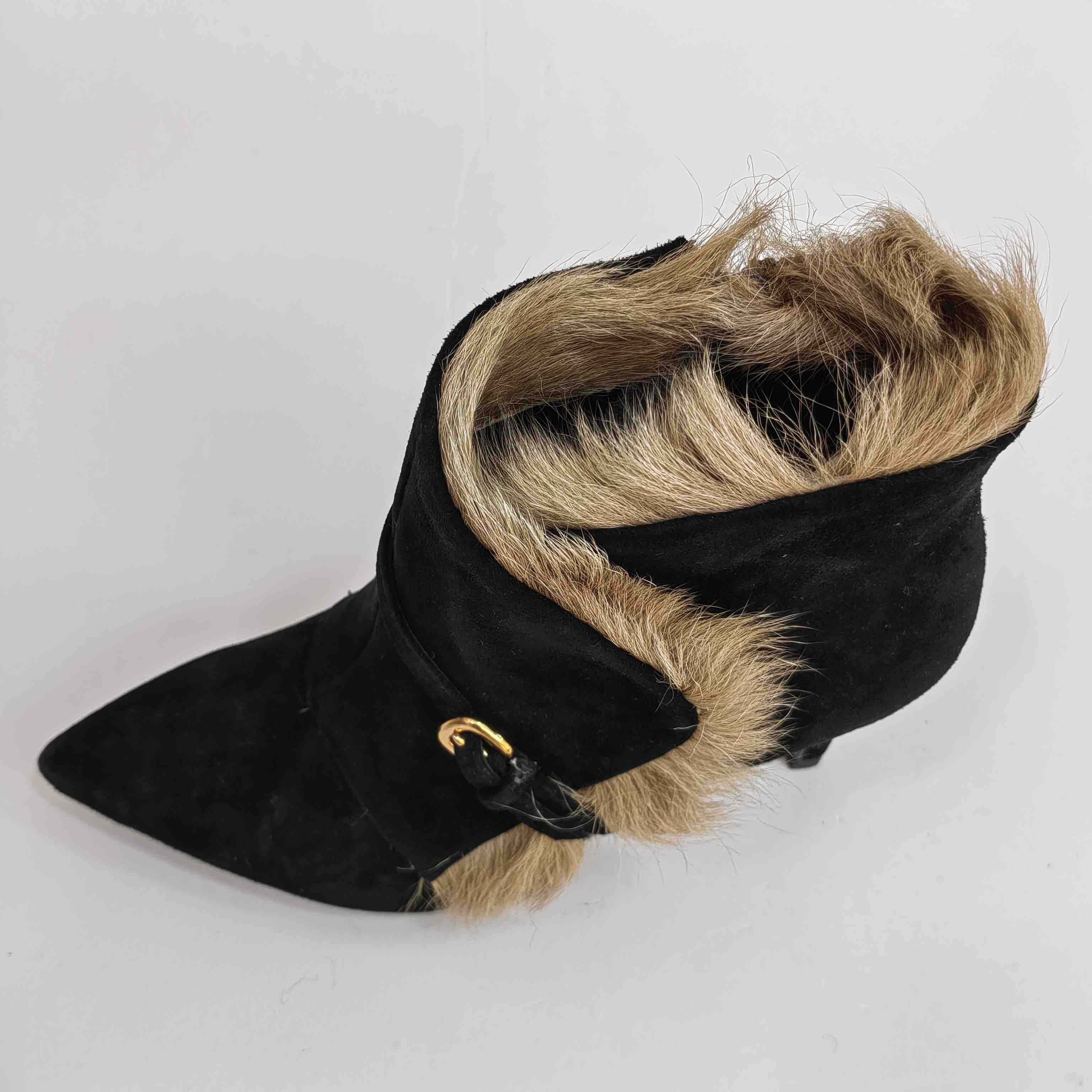 LFGJ 5805 真皮绒面高跟短靴细跟尖头毛毛靴子时尚