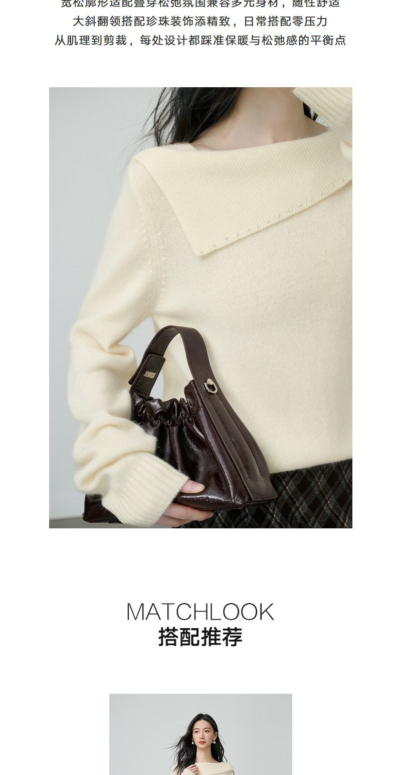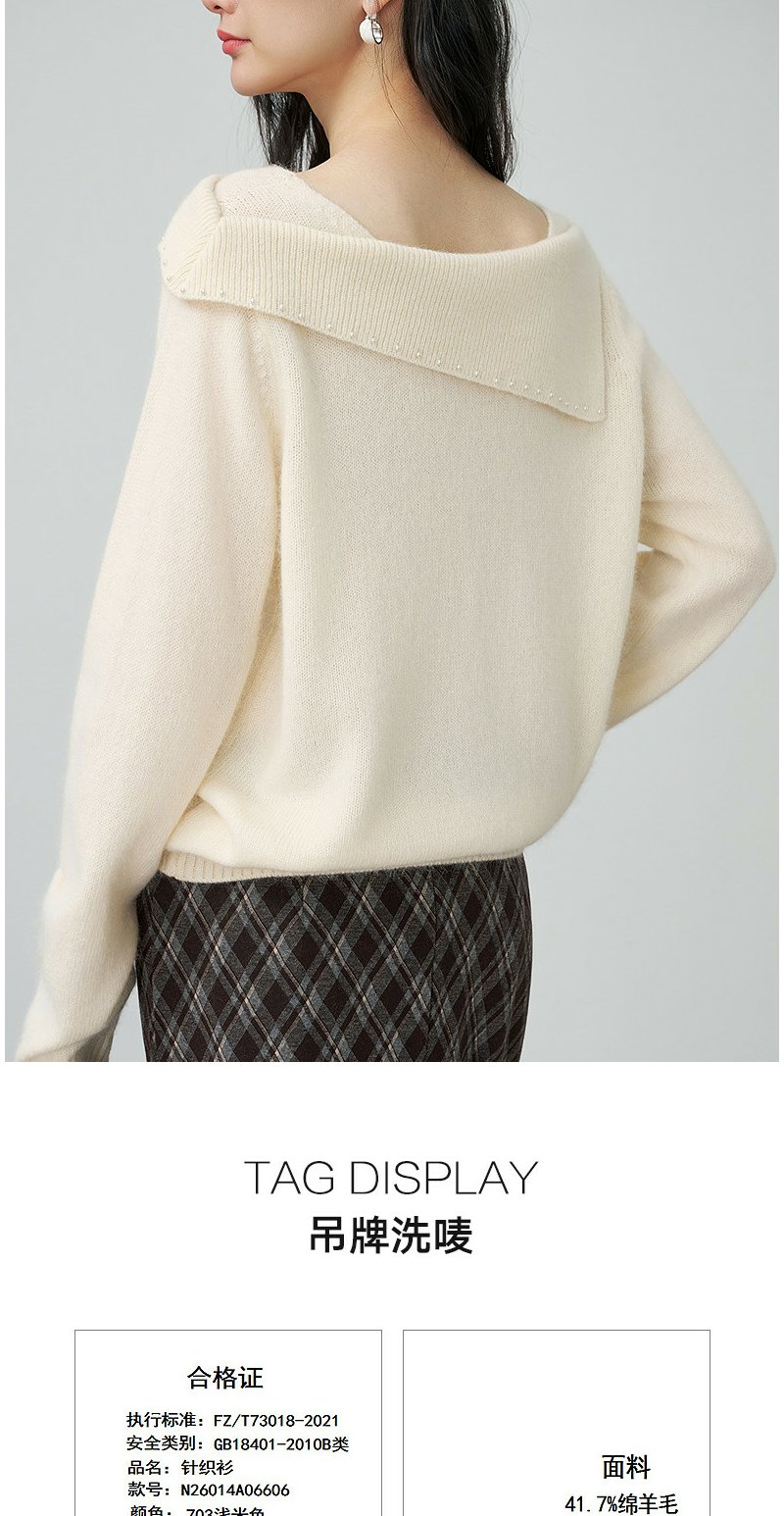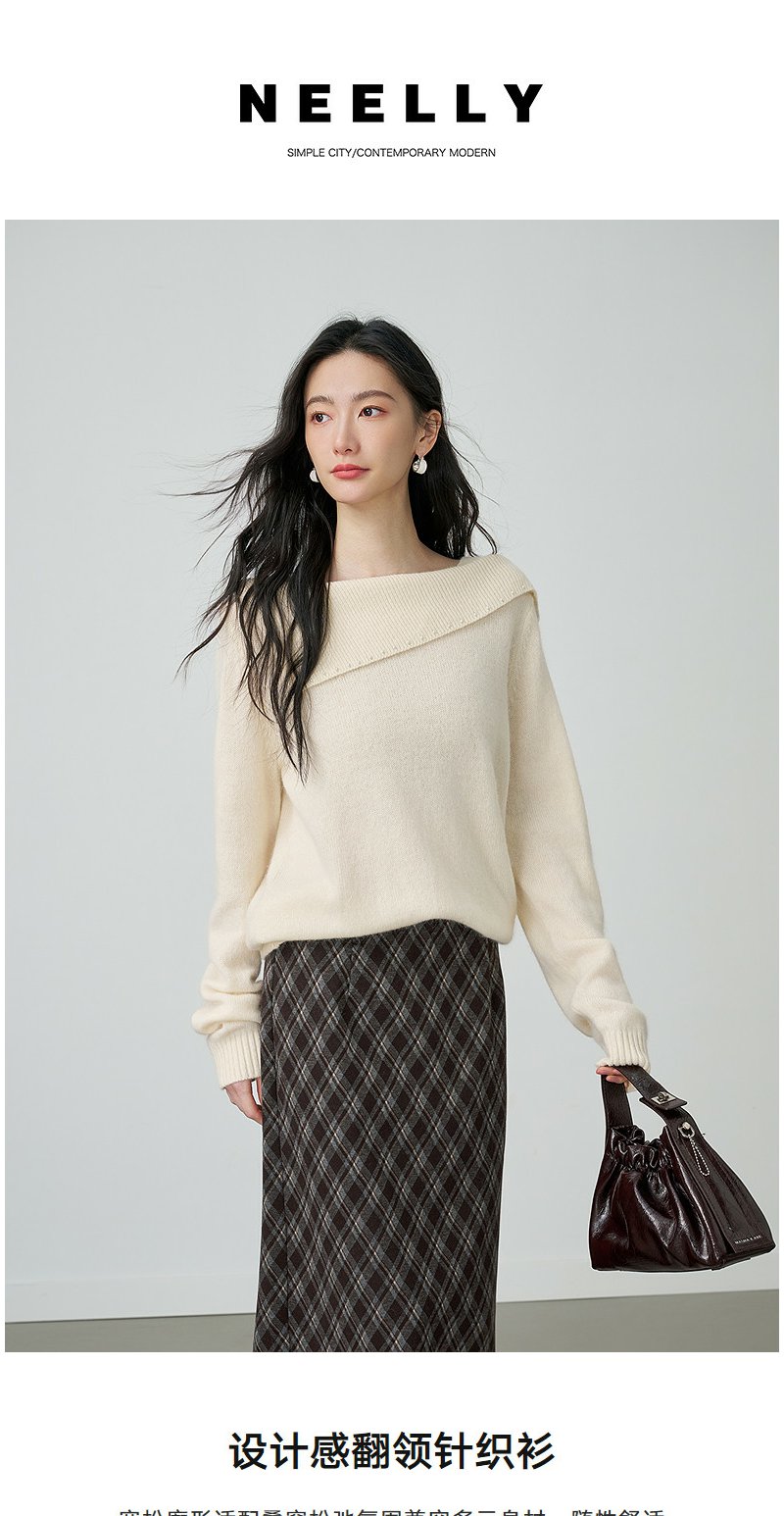 NEELLY纳俪商场同款春季新款设计感翻领针织衫女软糯显白亲肤上衣N26014A06606