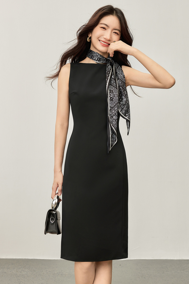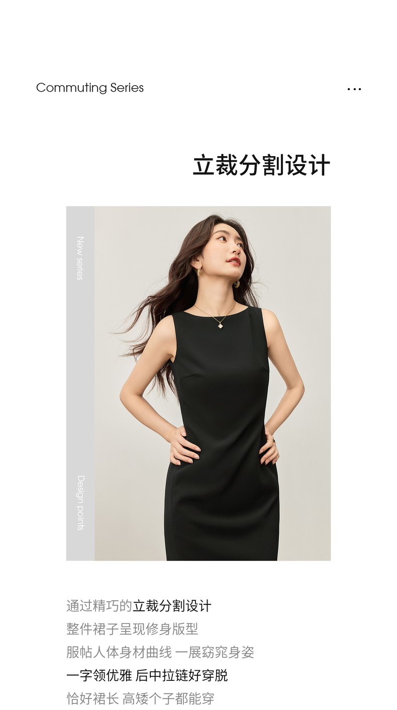【内购】【立裁分割】气质通勤一字领修身无袖背心小黑裙连衣裙-153LB8803