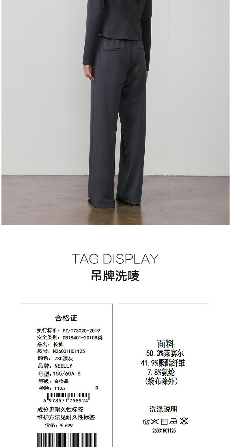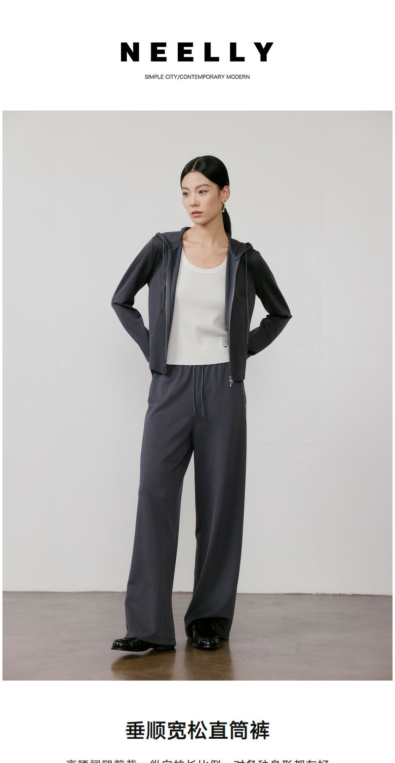 NEELLY纳俪商场同款春季新款时尚垂顺宽松直筒裤女随性休闲长裤N26031H01125