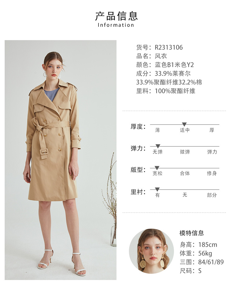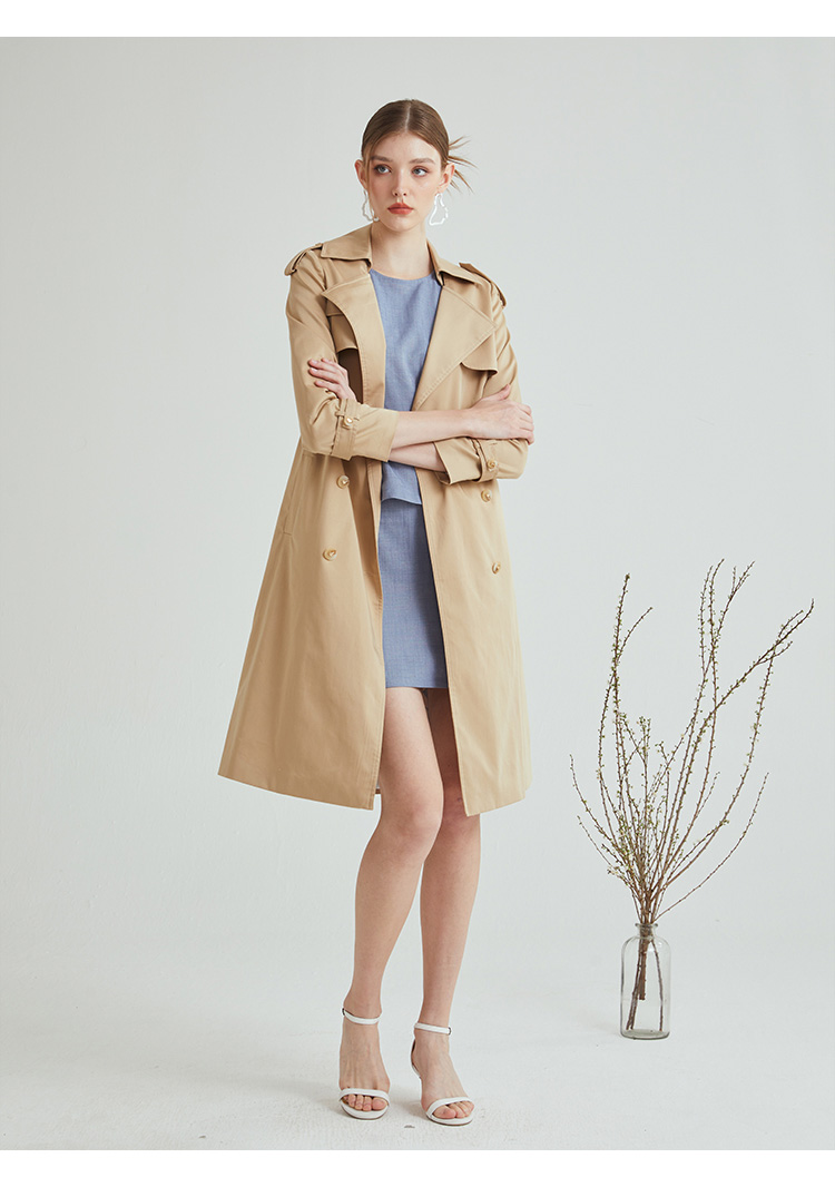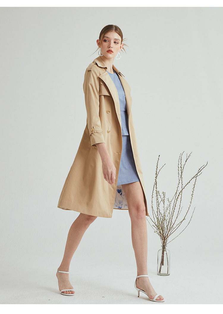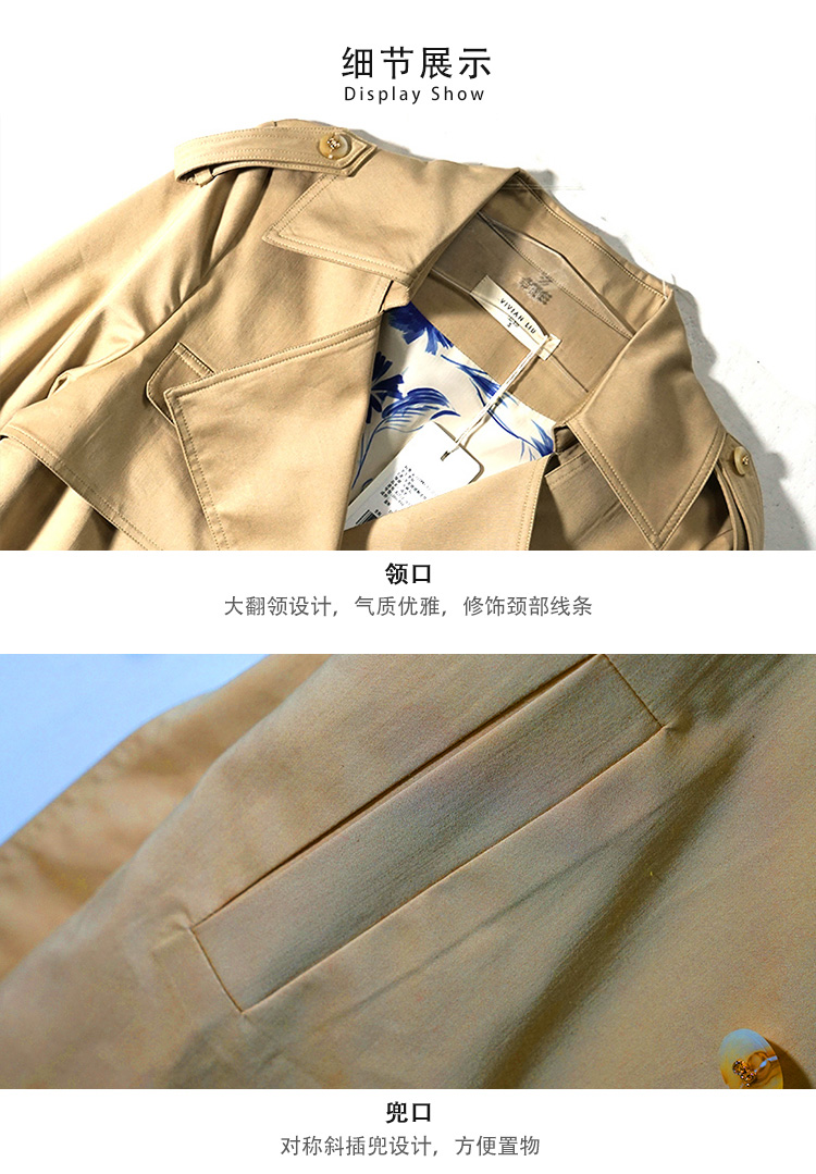 VIVIAN LIU R2313106春女装新款翻领宽松经典气质高级感长款风衣