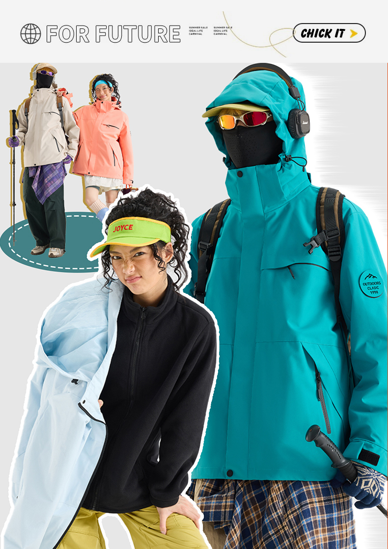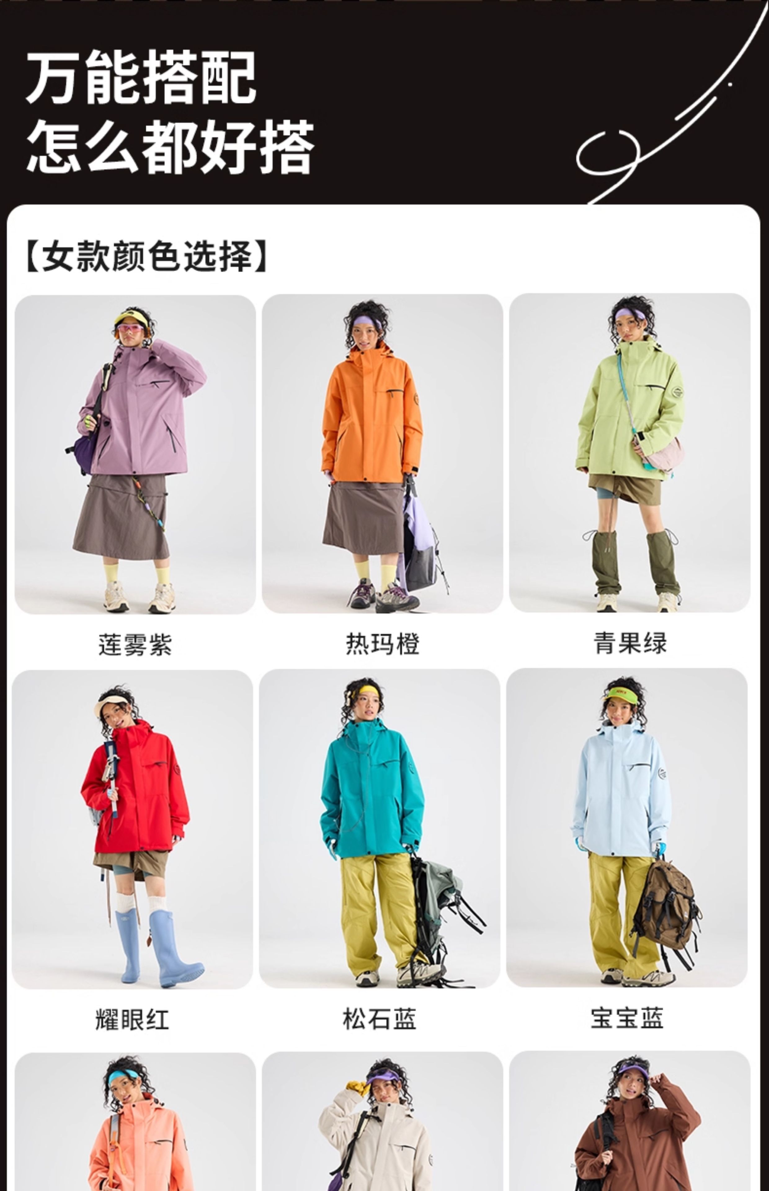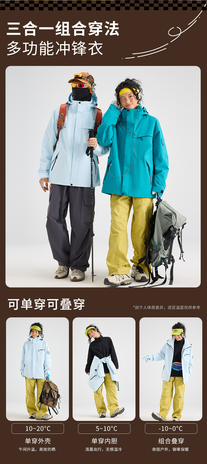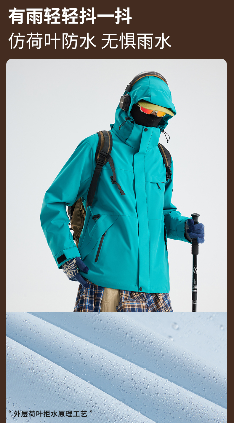 LUCKY DEER/幸运鹿情侣款山系保暖防泼水透气三合一登山服外套