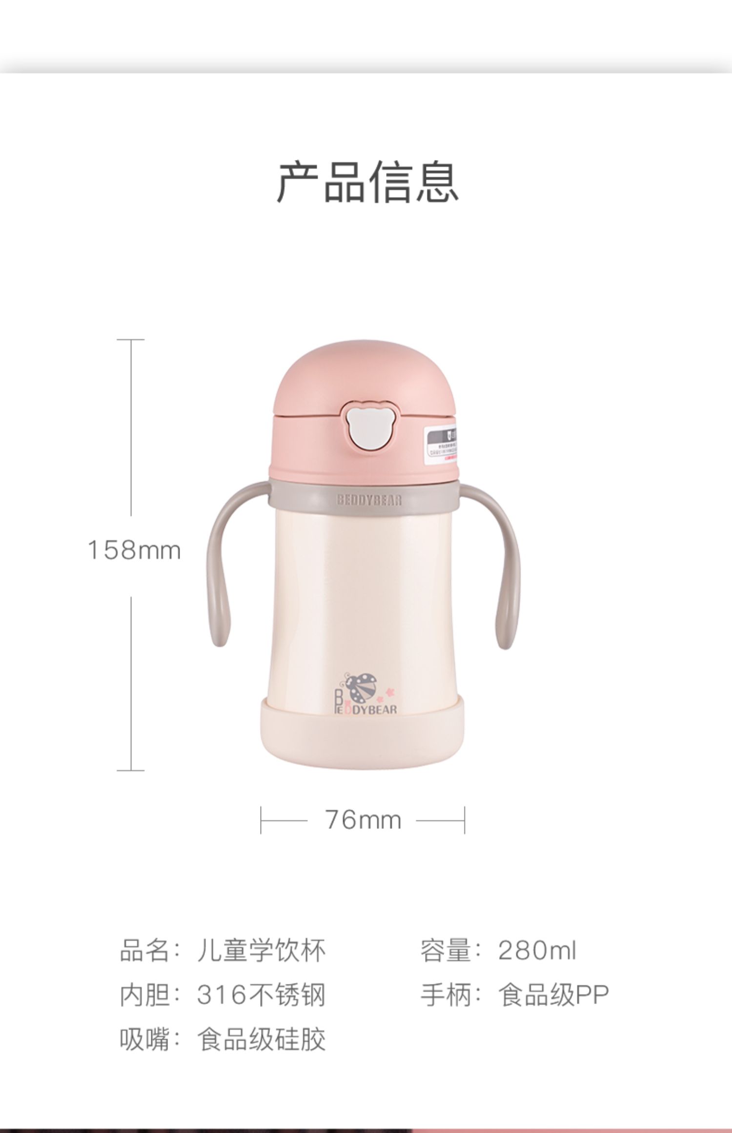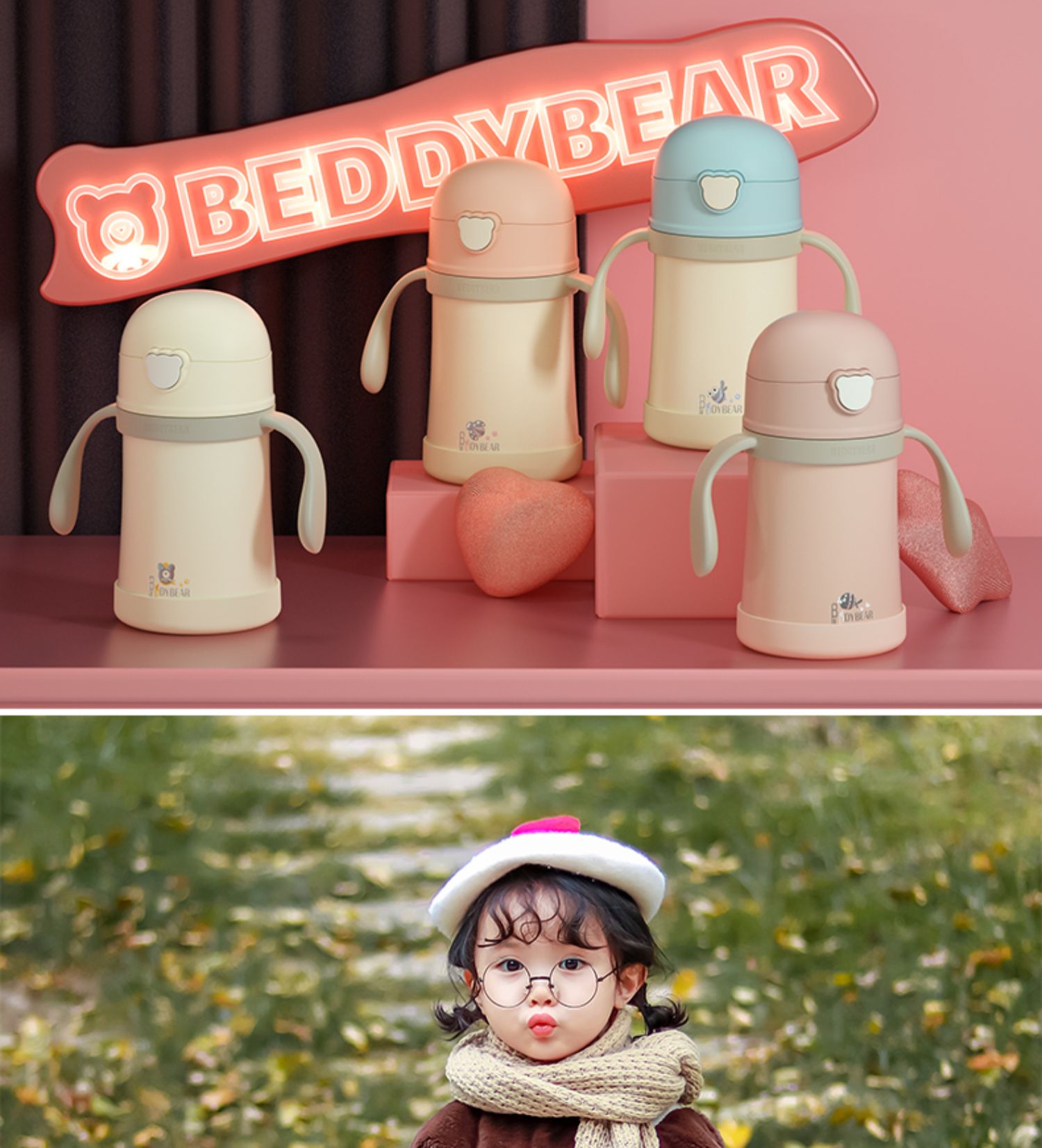 韩国杯具熊BEDDYBEAR萌宠儿童吸管保温杯BJX11