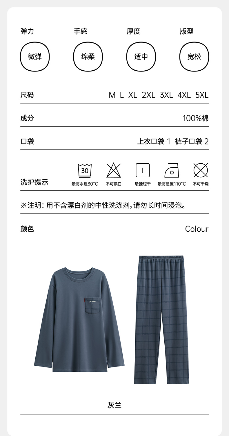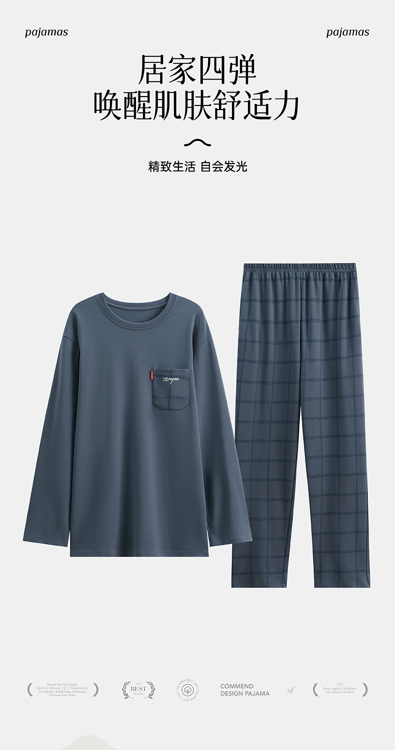 芬腾睡衣男士纯棉长袖长裤春秋季秋款全棉男生夏季休闲家居服套装