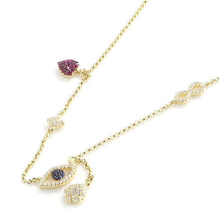 【授权商品】APM MONACO 女士金色925银镶晶钻幸运符项链 AC3514Y