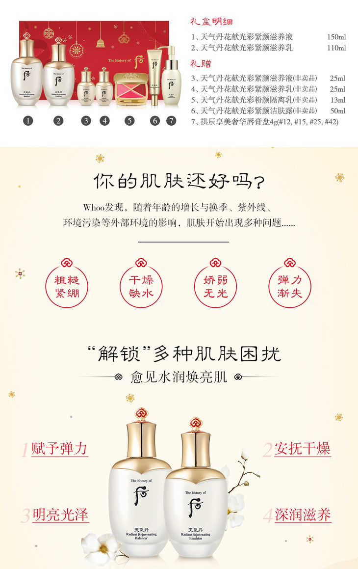 【现货】Whoo后天气丹礼盒 花献光彩紧颜水乳7件套 滋养