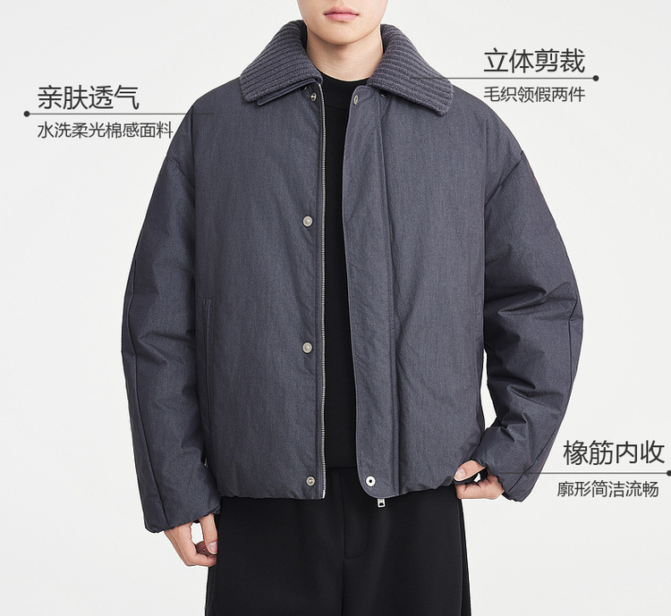 墨麦客男装可脱卸翻领假两件羽绒服男老钱风男士保暖羽绒服88891