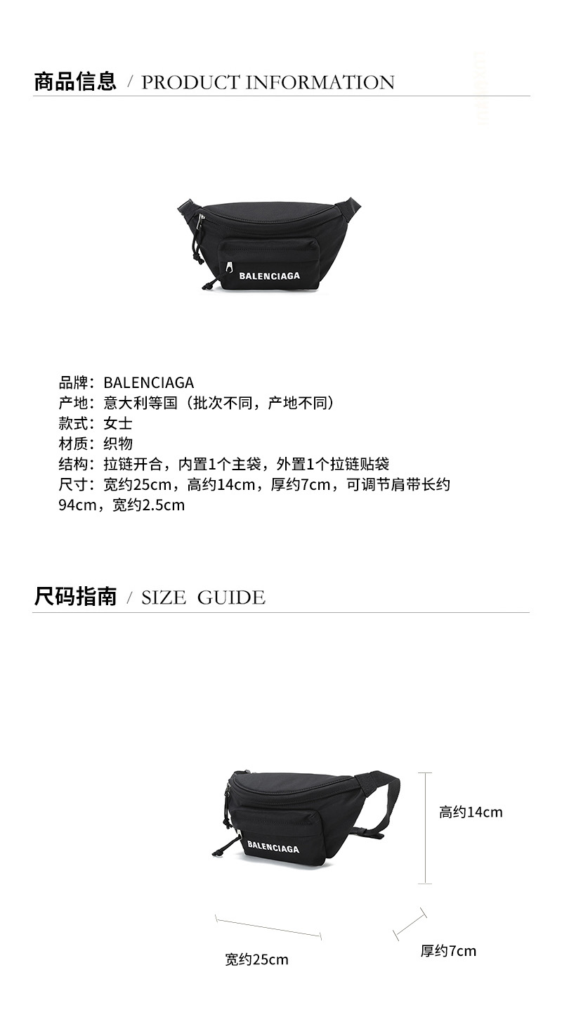 【国内现货】Balenciaga/巴黎世家 2021款 女士S码织物胸包斜挎包腰包 569978 H858X