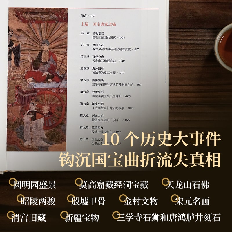 文物,承载长久延绵的文明,是中华民族根魂所寄。上海大学中国海外文物研究中心陈文平教授,历时30余载踏访全球,寻踪觅迹,追索中国文物一个半世纪的流散历史。本书上篇以文物流散的10个重大事件为线索,钩沉国宝曲折流失真相:圆明园文物、敦煌莫高窟、昭陵两骏、殷墟甲骨、清宫宝藏、天龙山石佛、宋元名画……下篇精选108件海外遗珍,上起新石器时代,下至于清,述及敦煌文物、书画、陶瓷、铜器、玉器、漆器、雕塑、甲骨石经等,解读历史背景、制作工艺、色彩细节、造型美感、图案寓意,范围包括数十家海外机构的精品收藏,领略难得一见的中华珍品。文物光华,彪炳世界,一念在兹,万山无阻。寻踪离家的国宝,祈盼国宝回家。