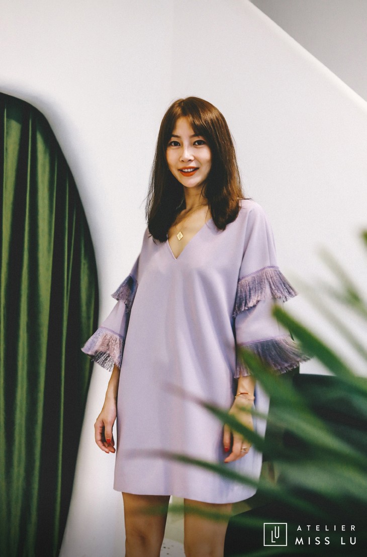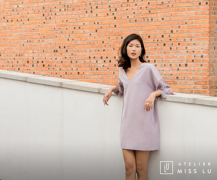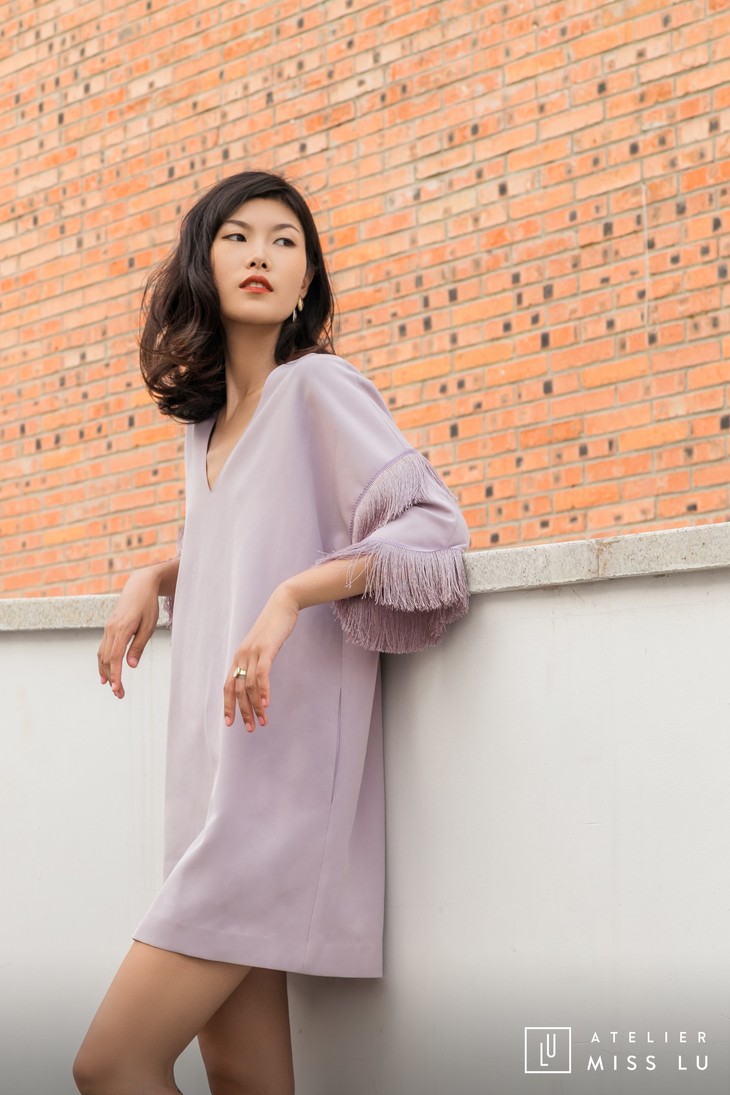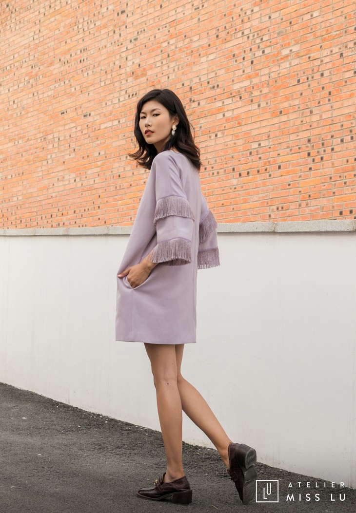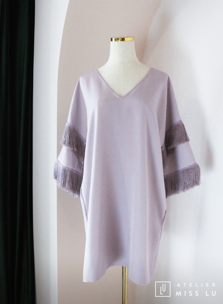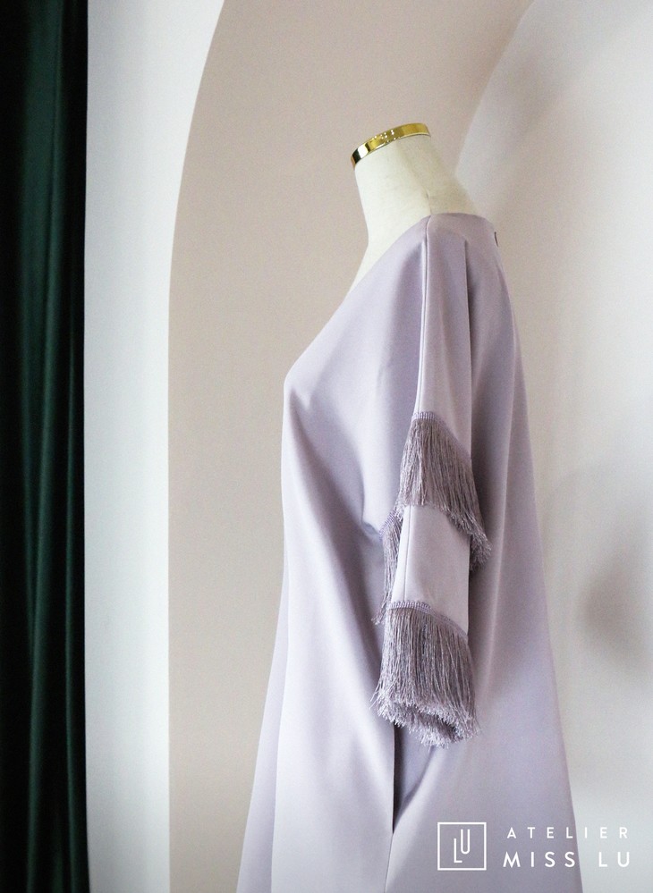 AtelierMissLu / Eileen-香芋紫袖口流苏V领连身裙