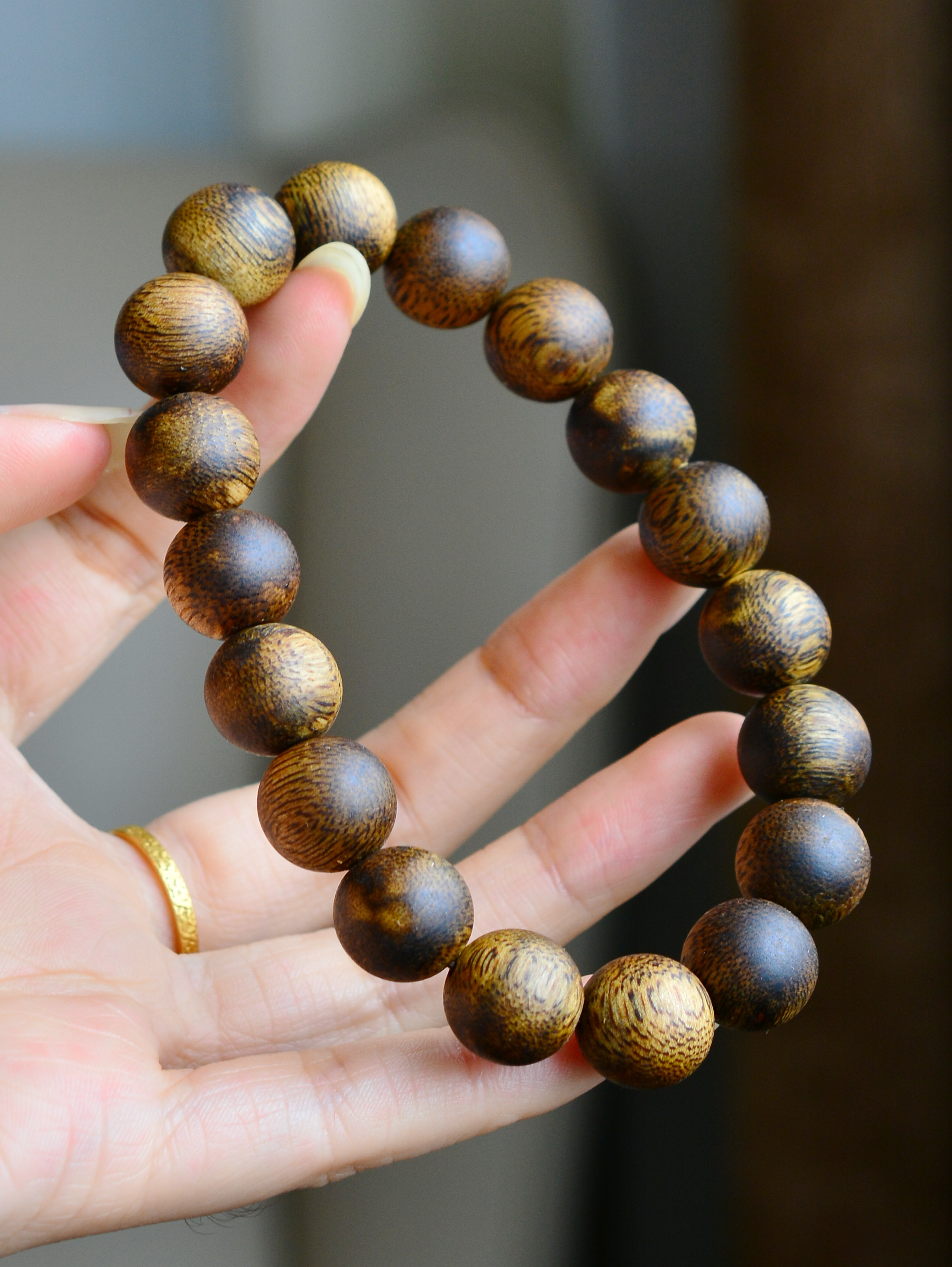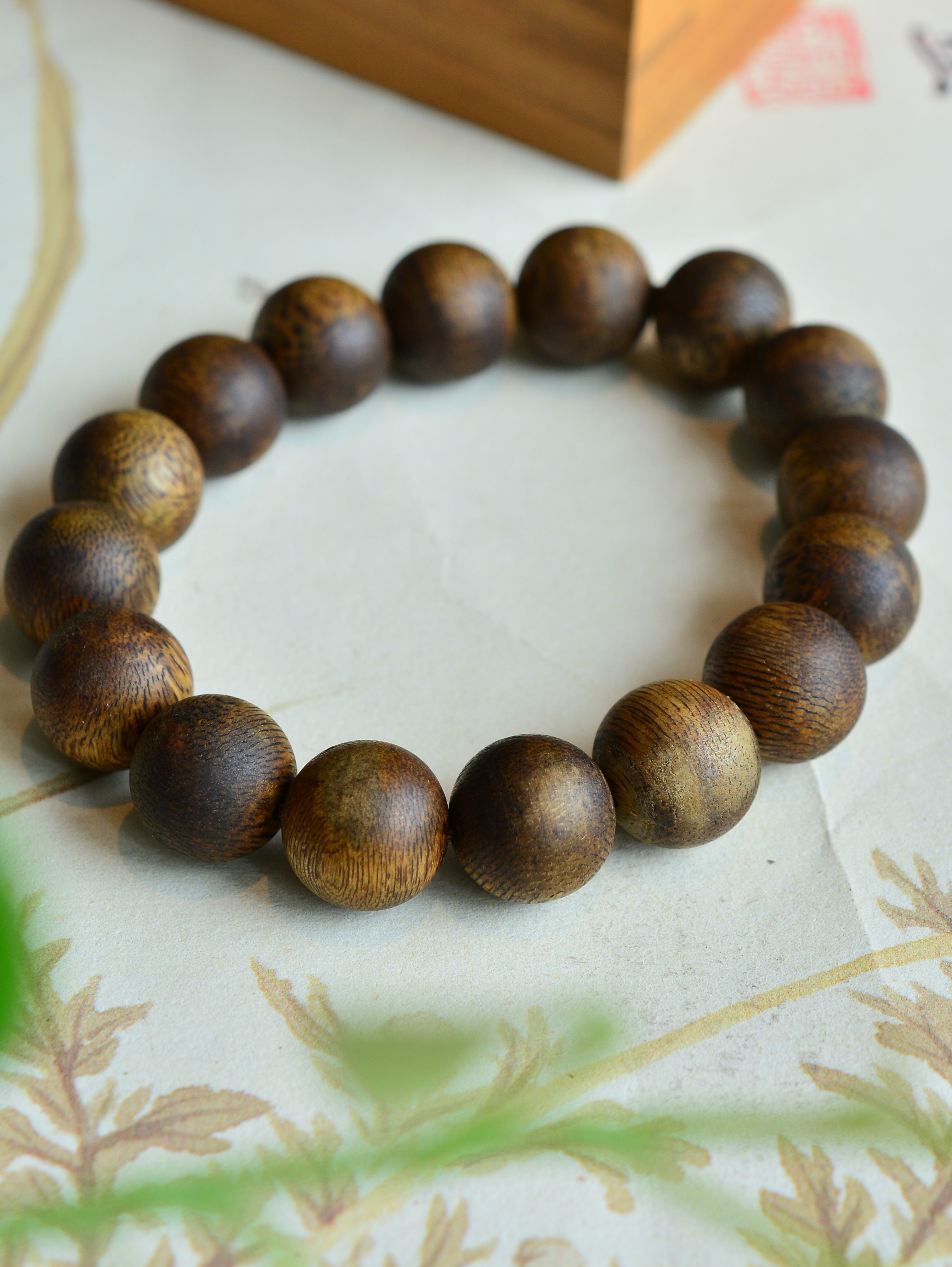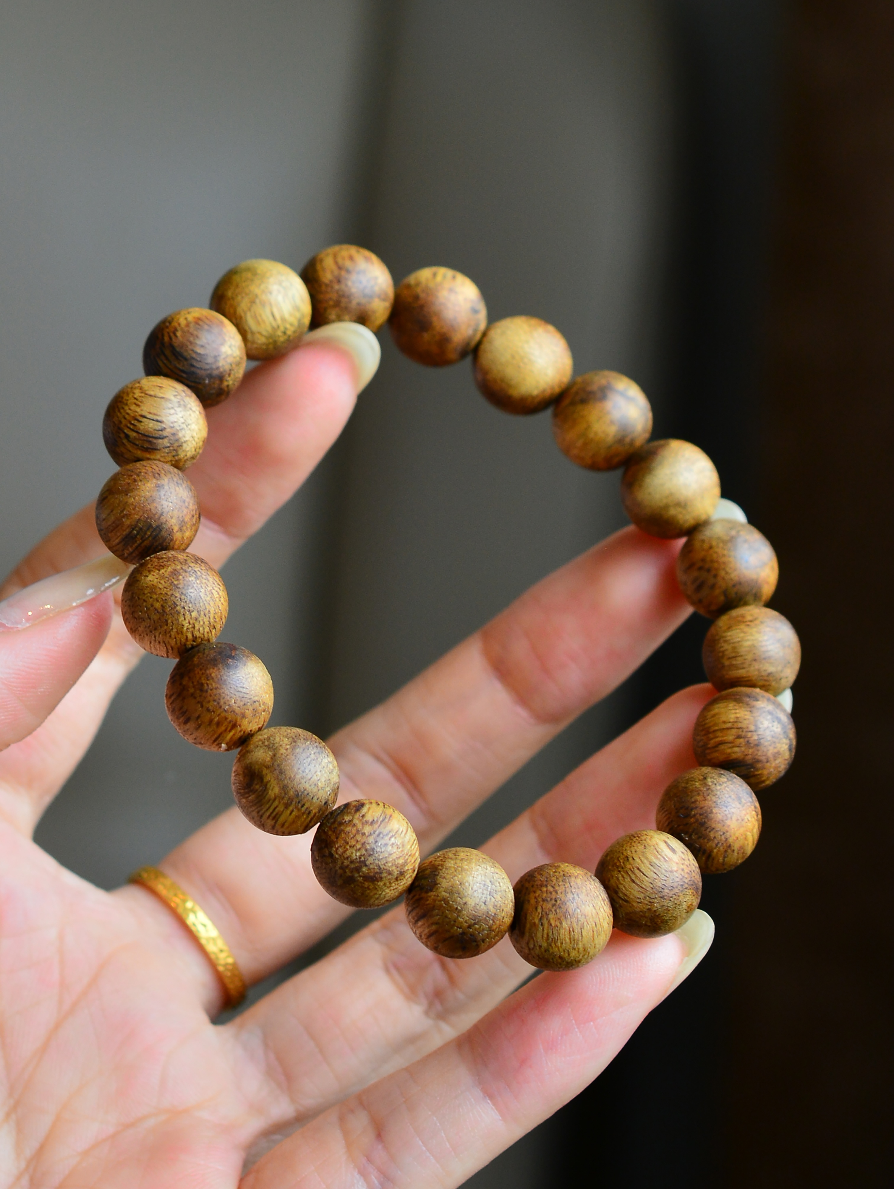 ZL707 【0.8乌身圆叶沉香圆珠单圈手串】