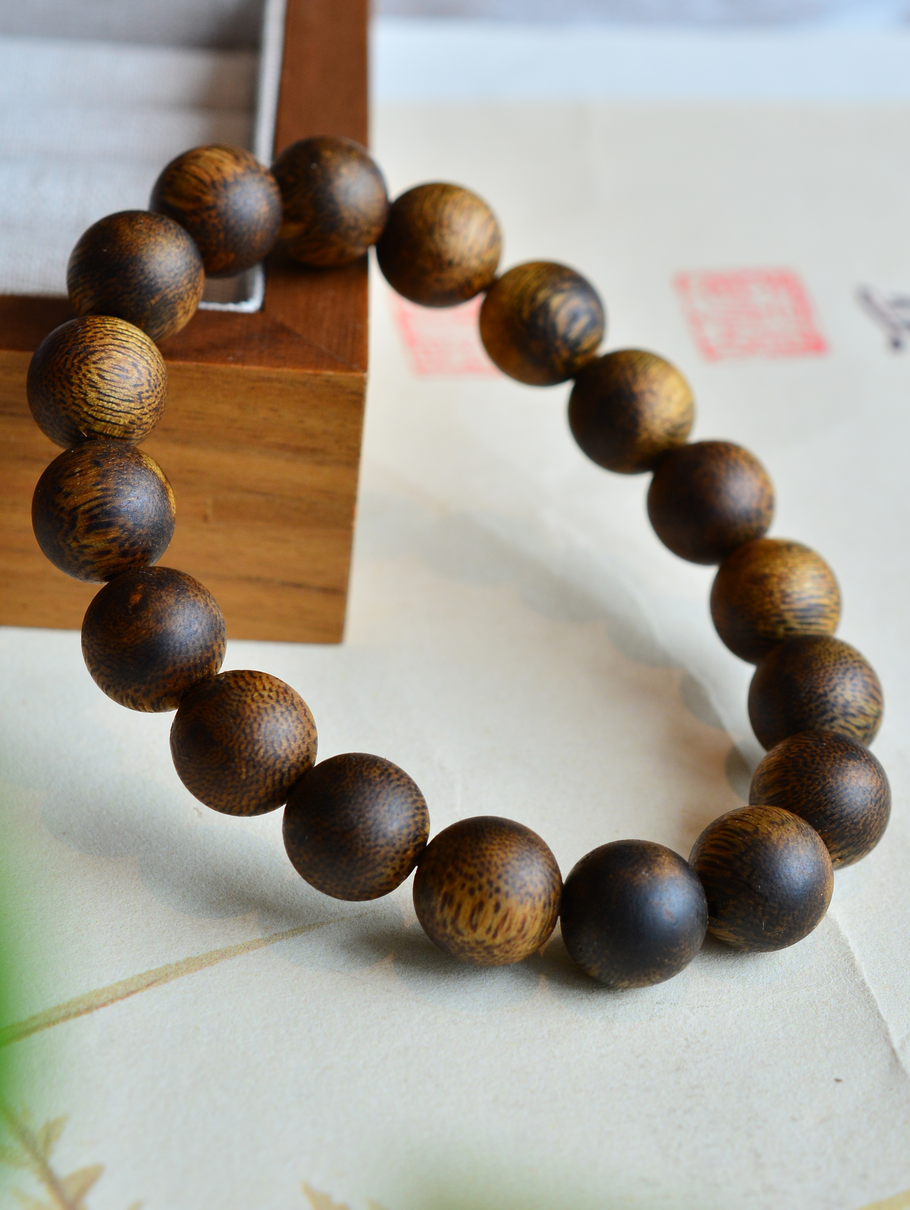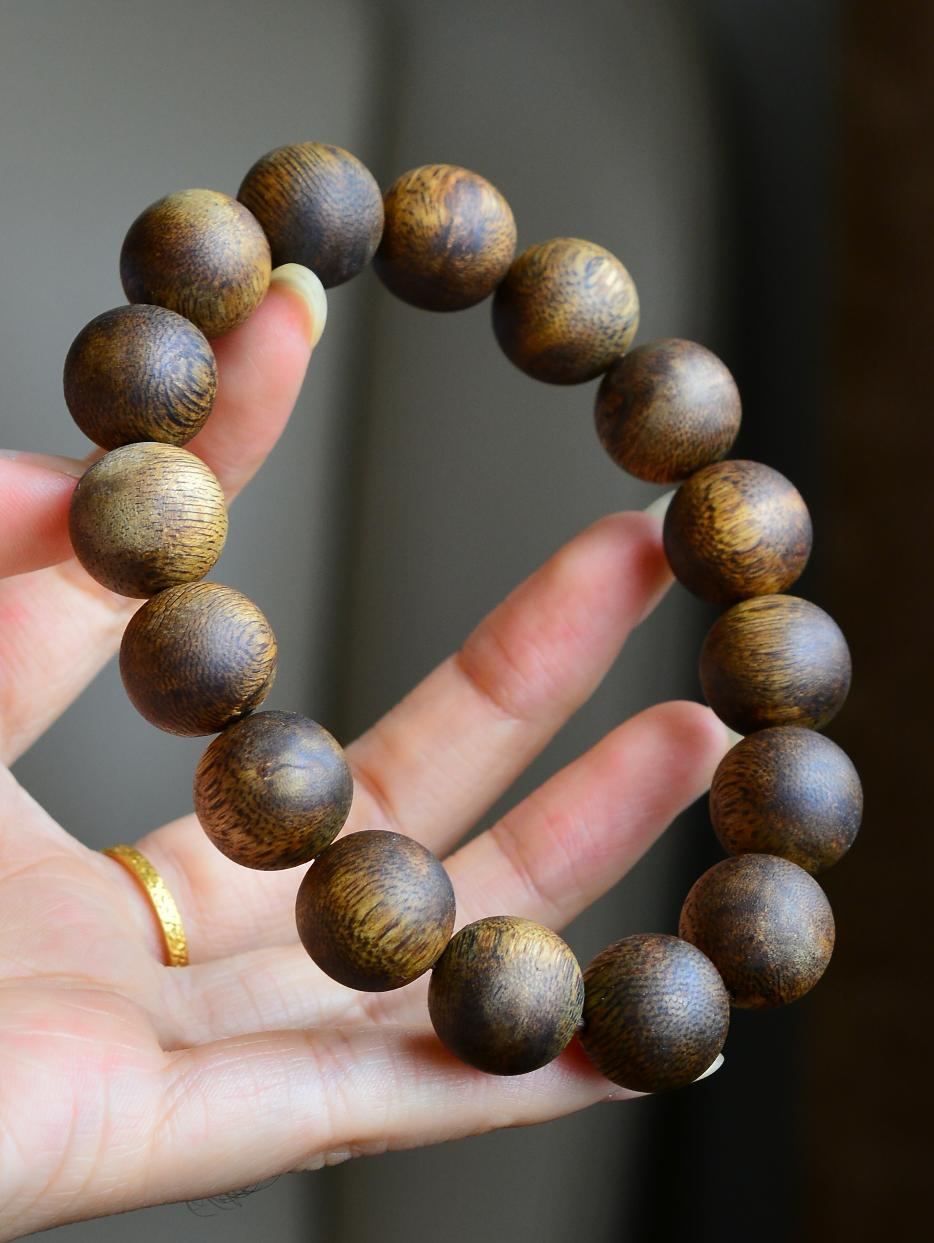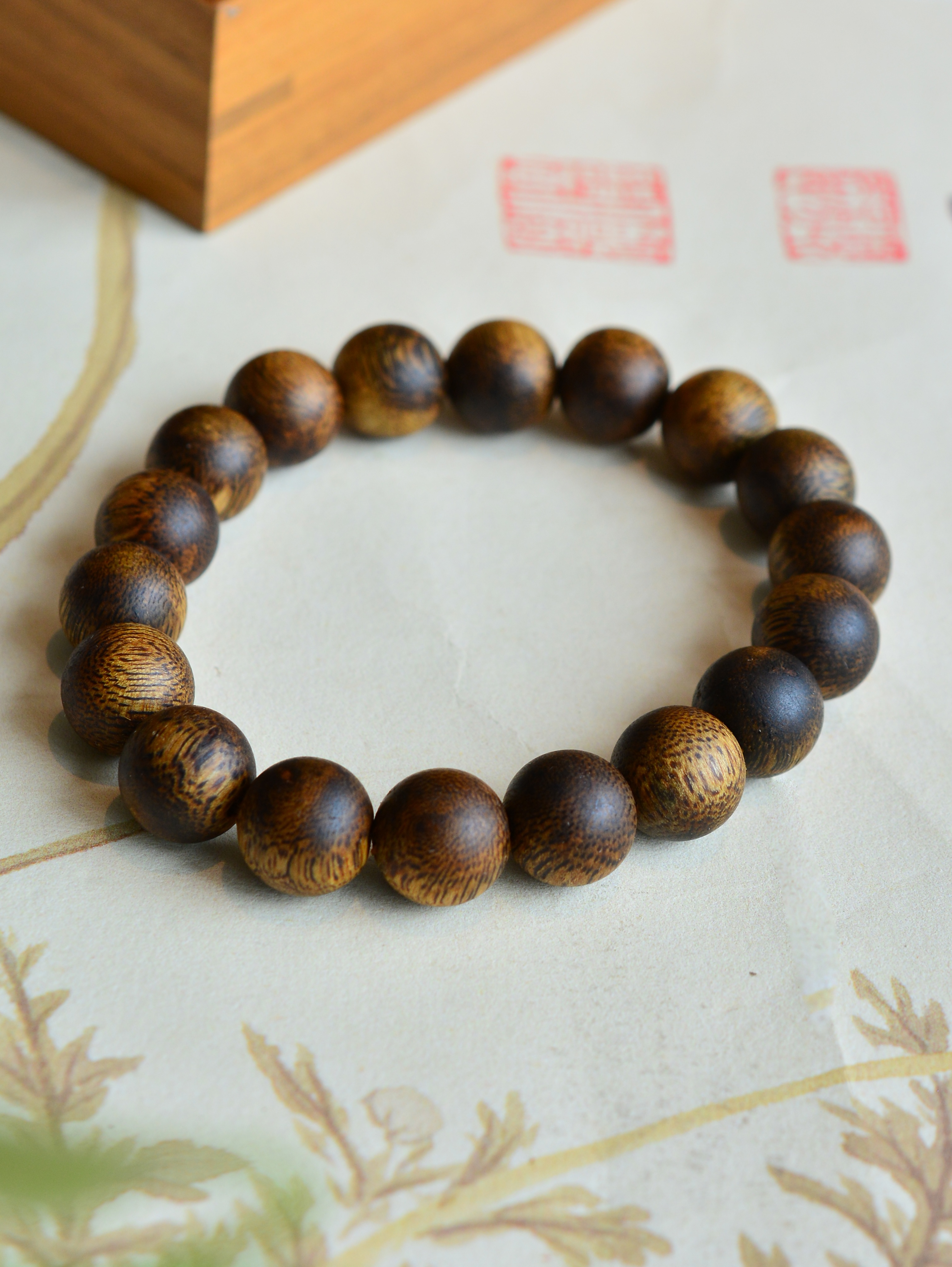 ZL707 【0.8乌身圆叶沉香圆珠单圈手串】