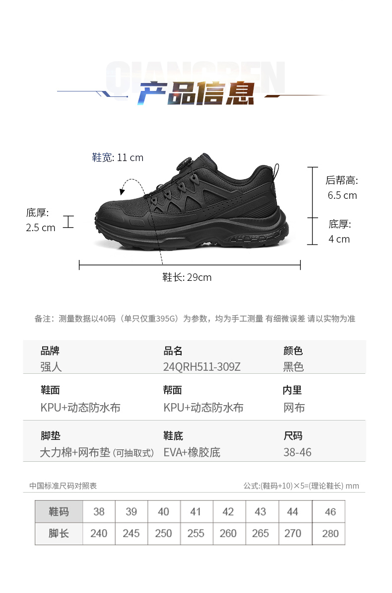 强人3515男鞋战术通勤训练鞋运动休闲自动扣休闲透气登山徒步鞋