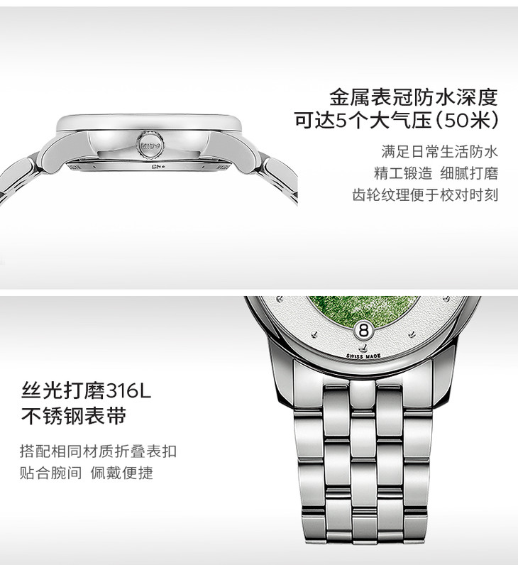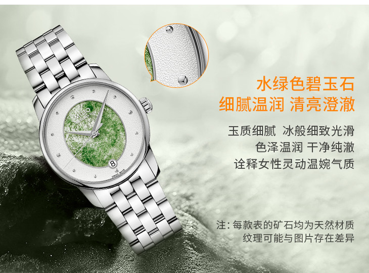 白色表盘树纹粒玉 大三针 日期显示