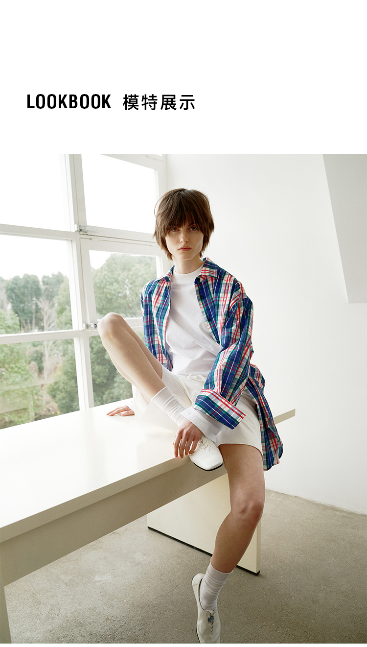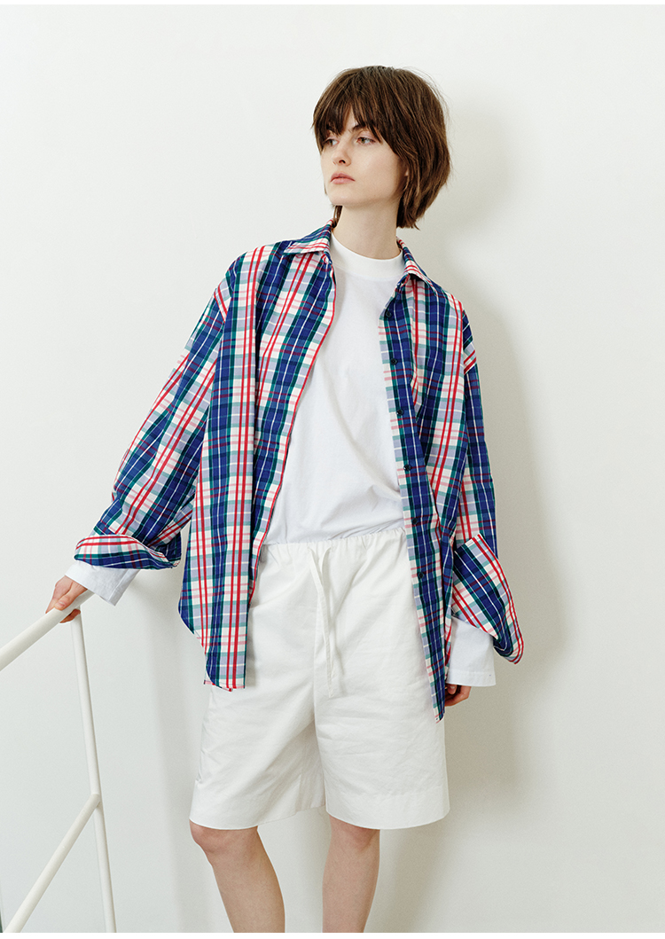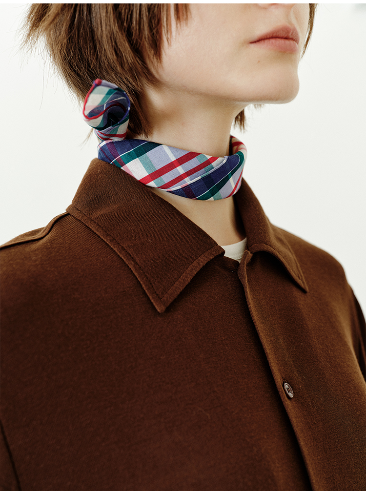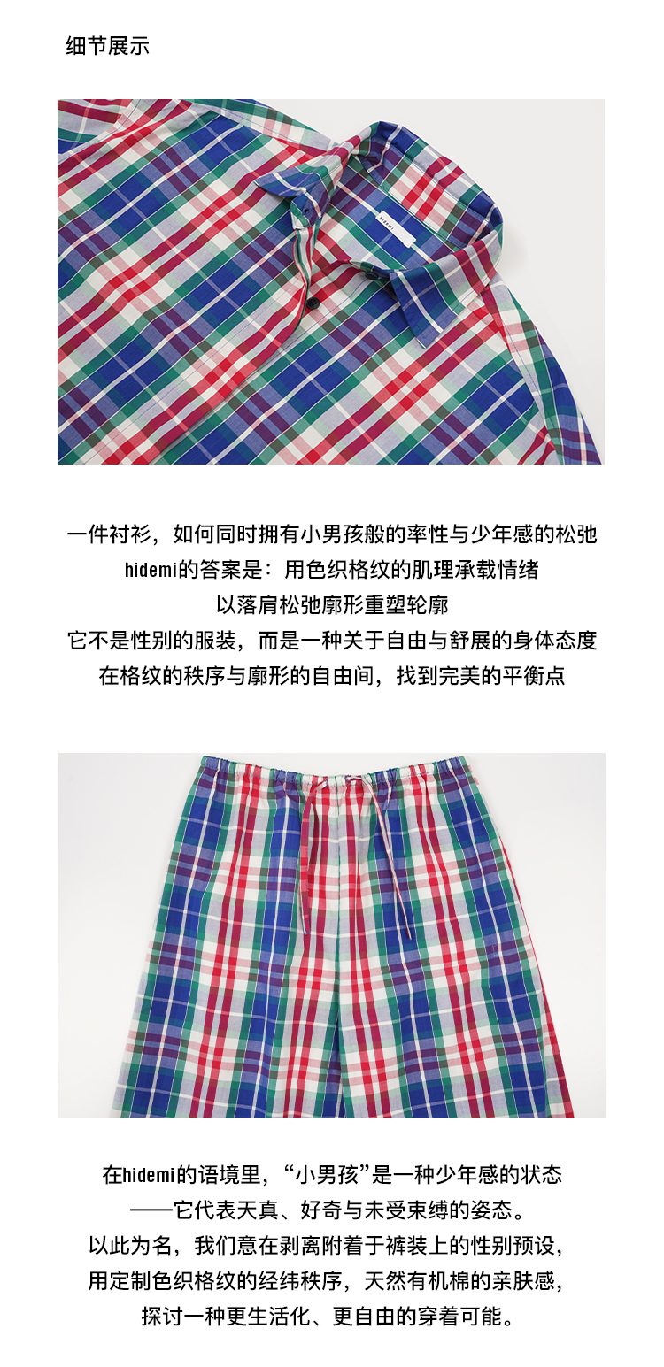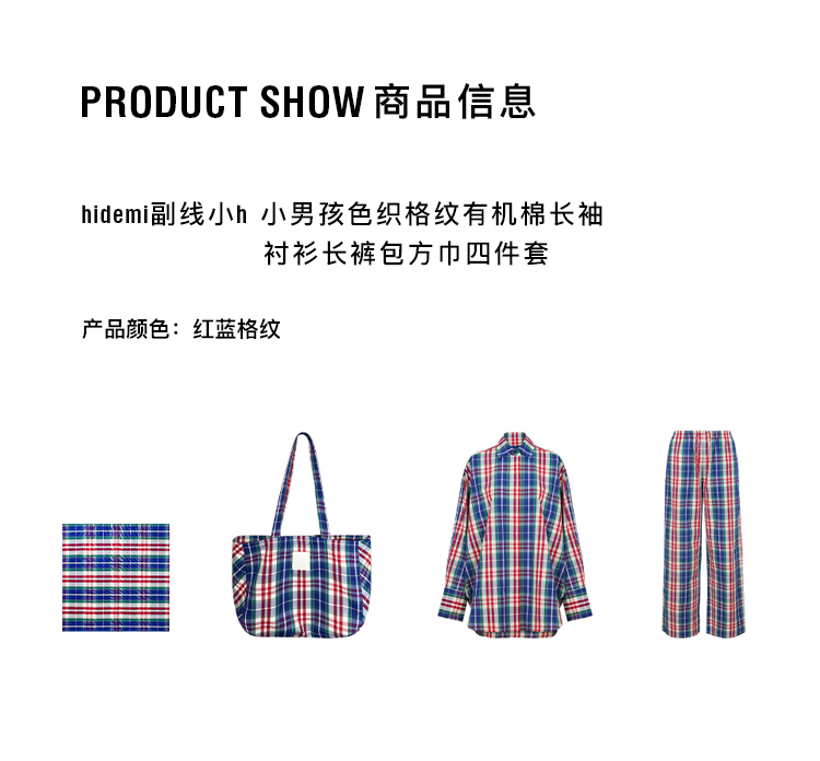 hidemi副线小h 小男孩色织格纹有机棉休闲宽松长袖衬衫外套长裤包方巾四件套