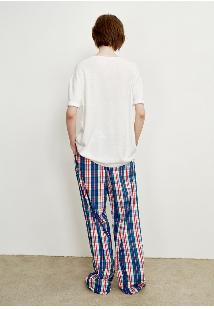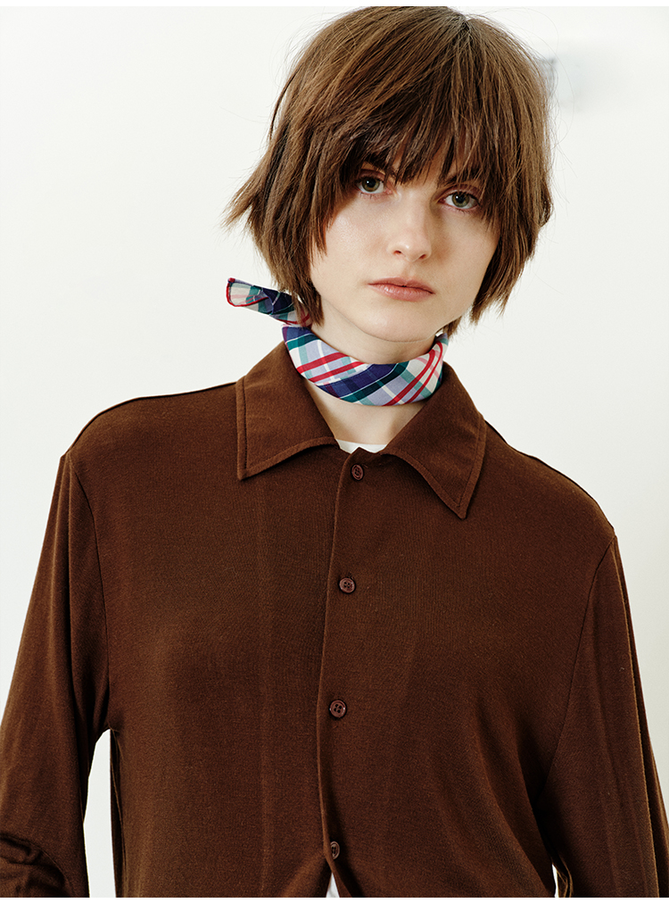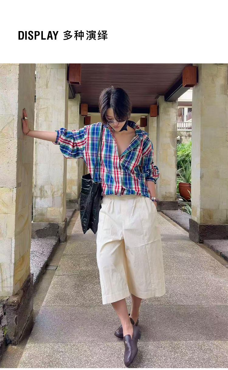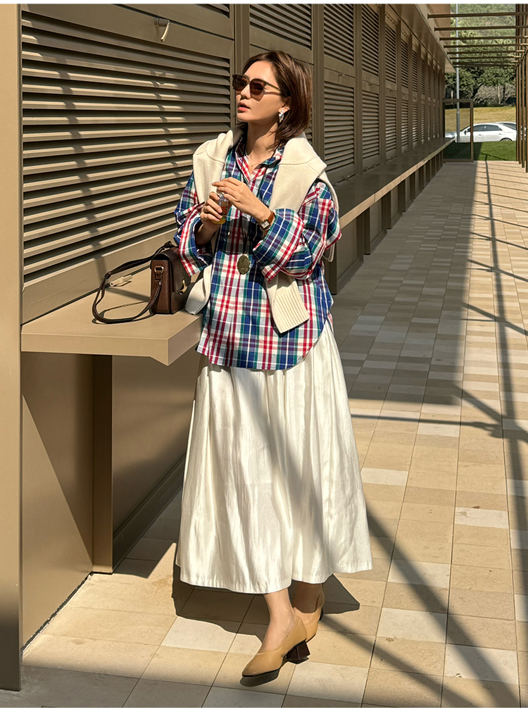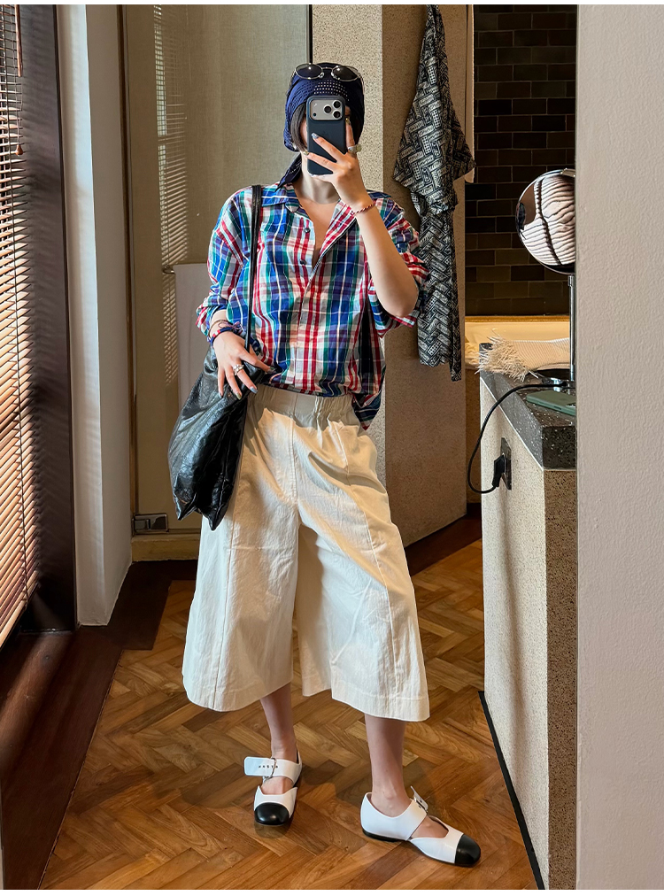 hidemi副线小h 小男孩色织格纹有机棉休闲宽松长袖衬衫外套长裤包方巾四件套