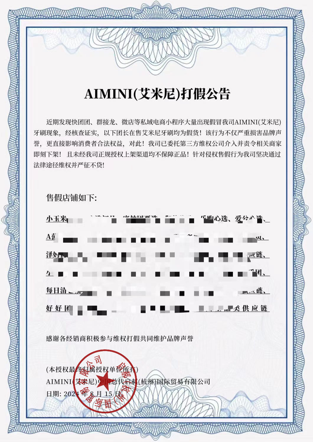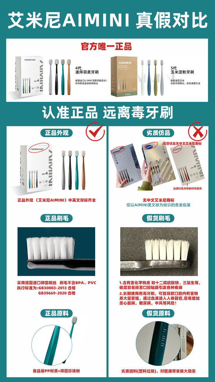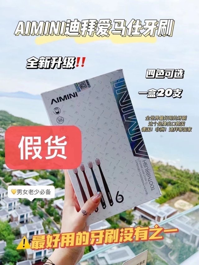 任何无中文标和不同中文商标的均为假货!!且AIMINI艾米尼正品没有6代牙刷。