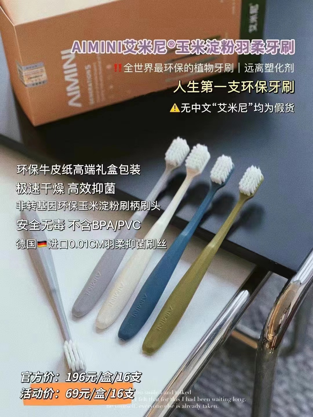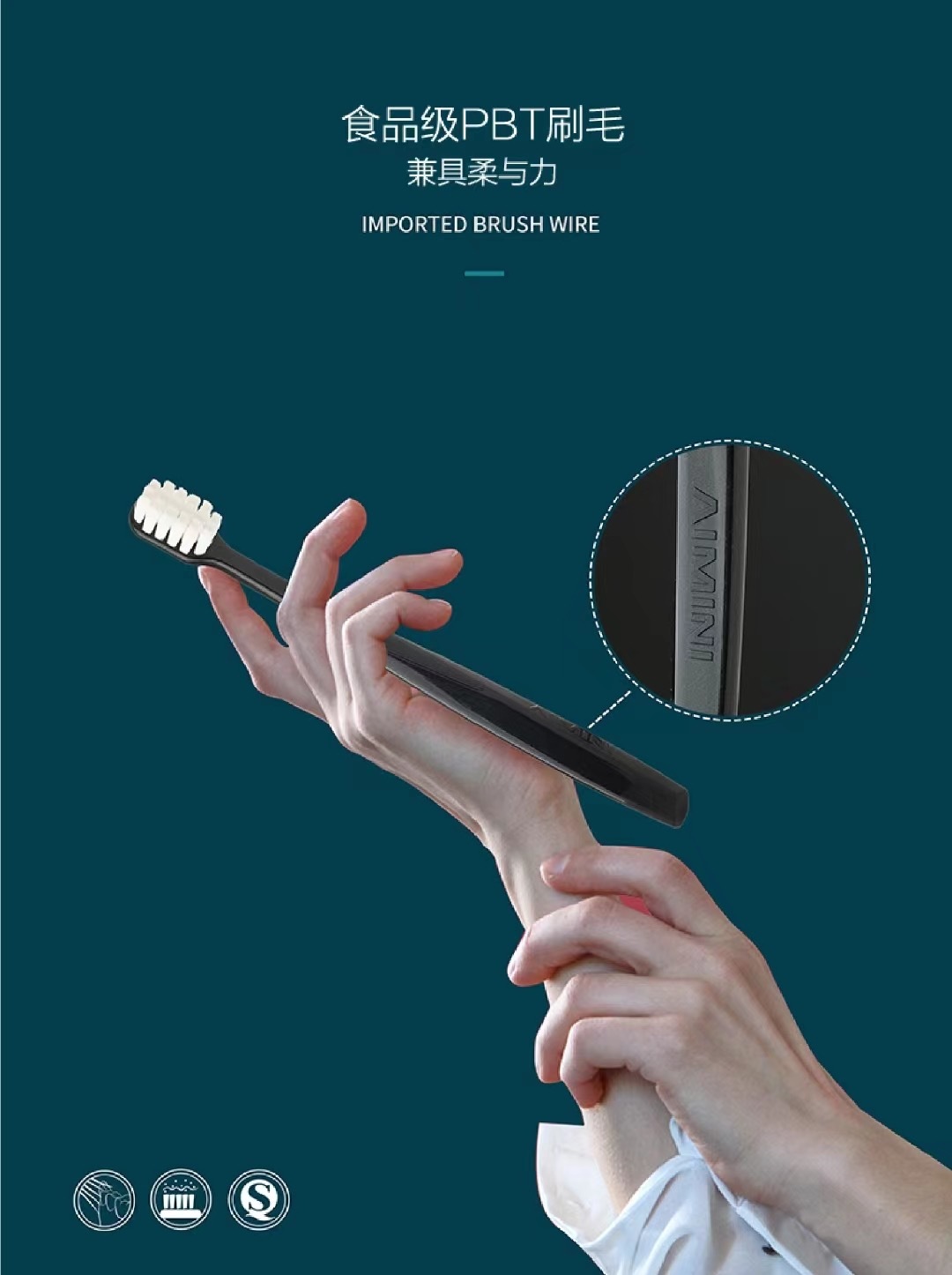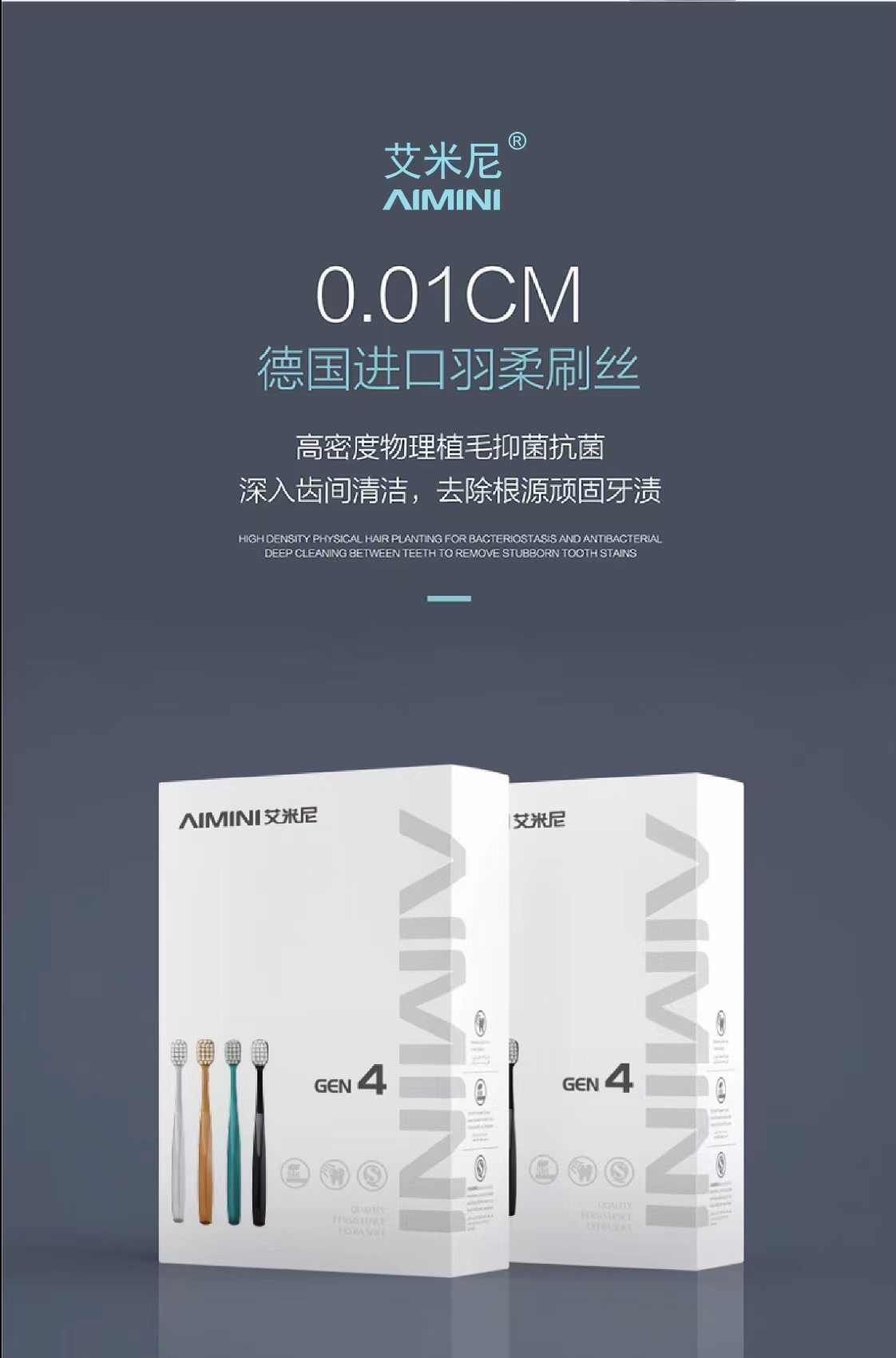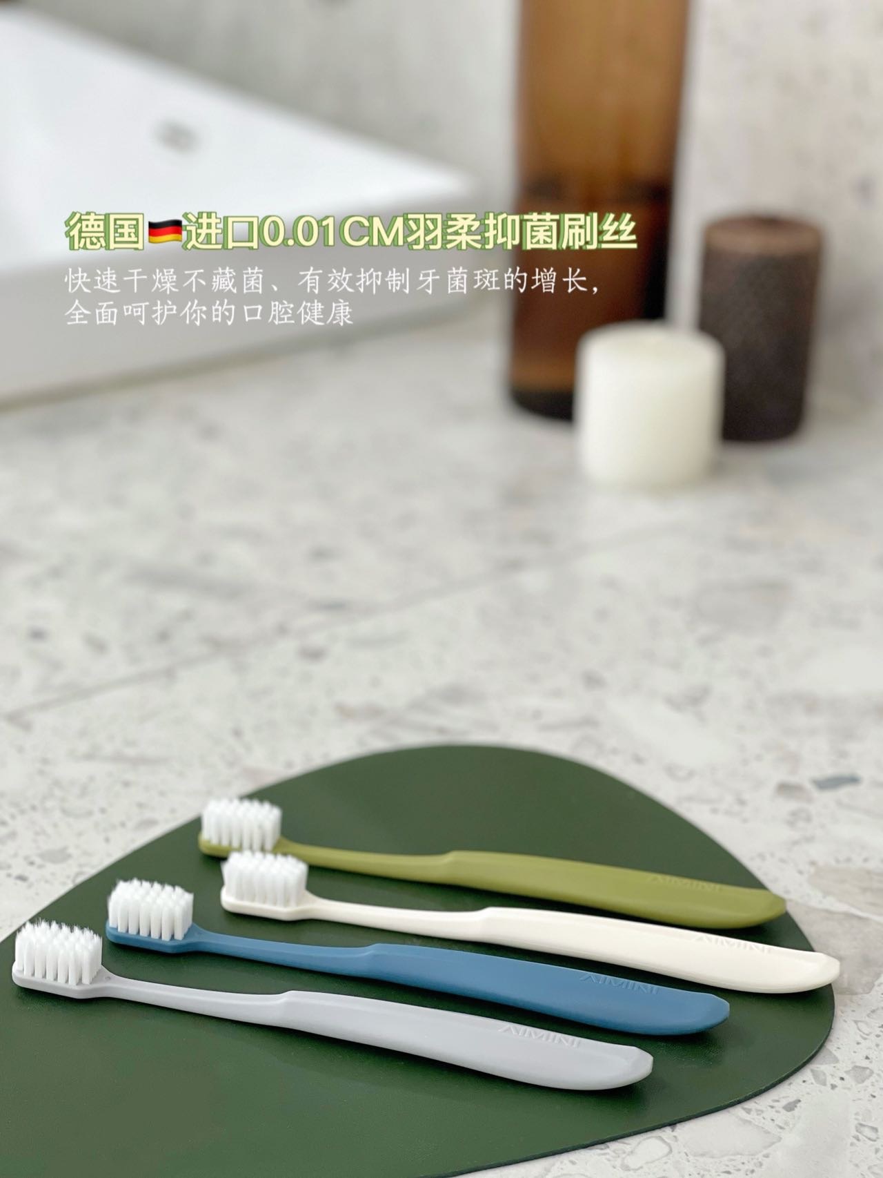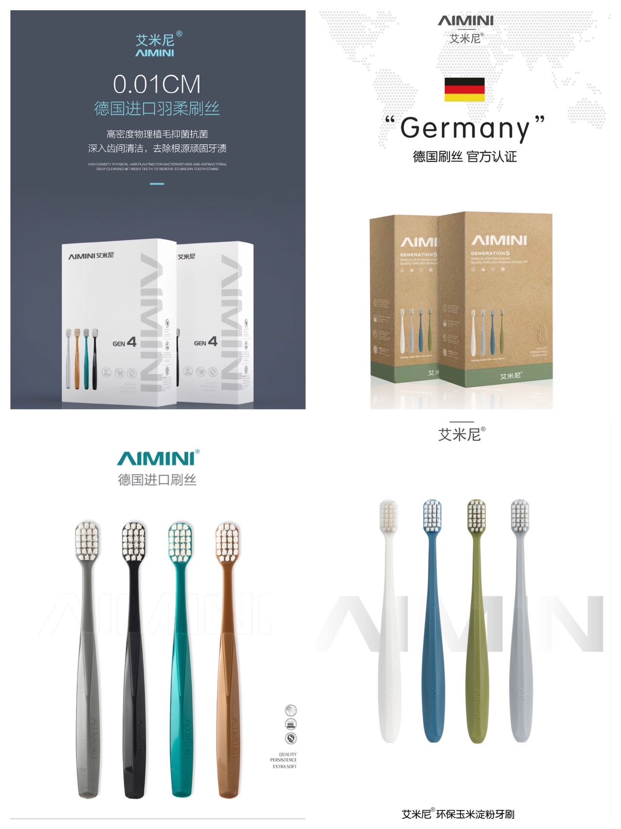 AIMINI艾米尼®羽柔牙刷,采用德国🇩🇪进口的刷毛抑菌率达99%!