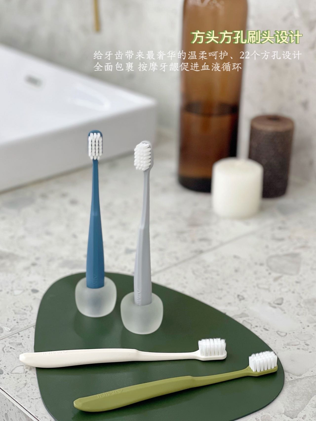 柔软刷毛环保刷柄,温和呵护整个口腔健康