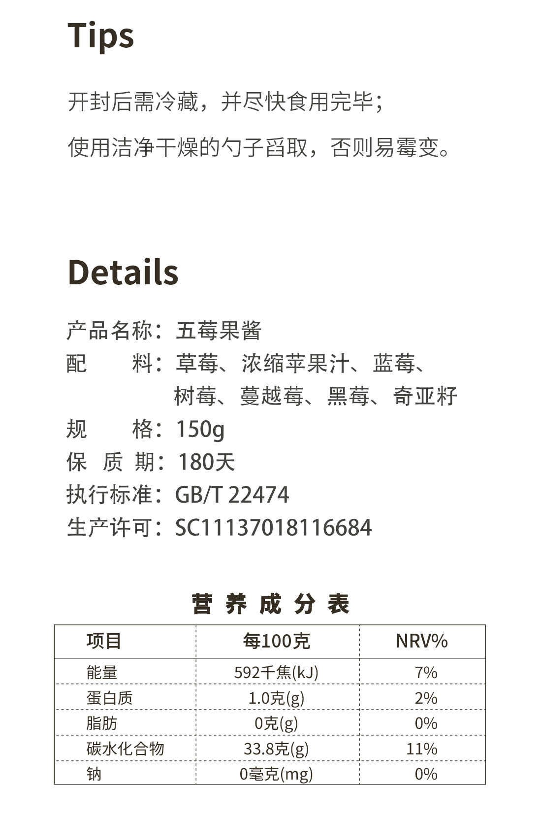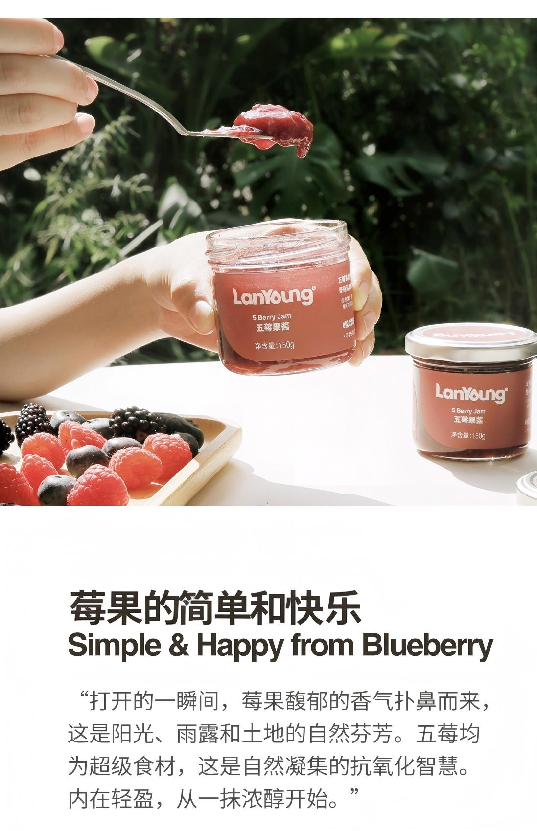 【仰姐早餐】五莓果酱90%果肉 150g纯熬果酱涂抹面包 LanYoung蓝莓果酱