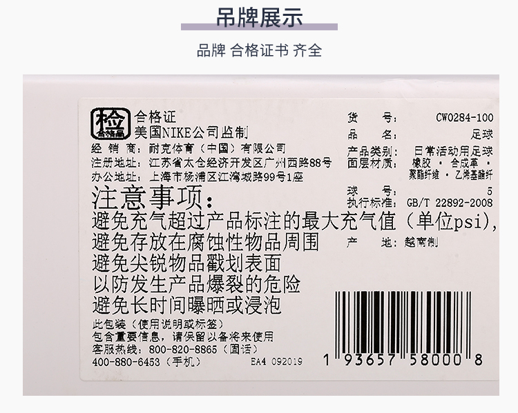 小李子:专柜正品NIKE耐克英超周年纪念限量5号足球CW0284-100