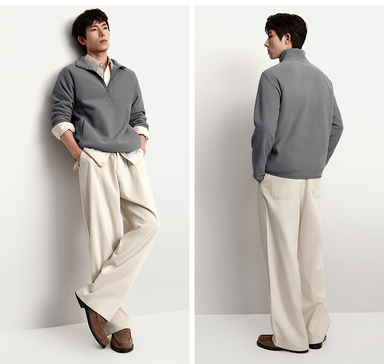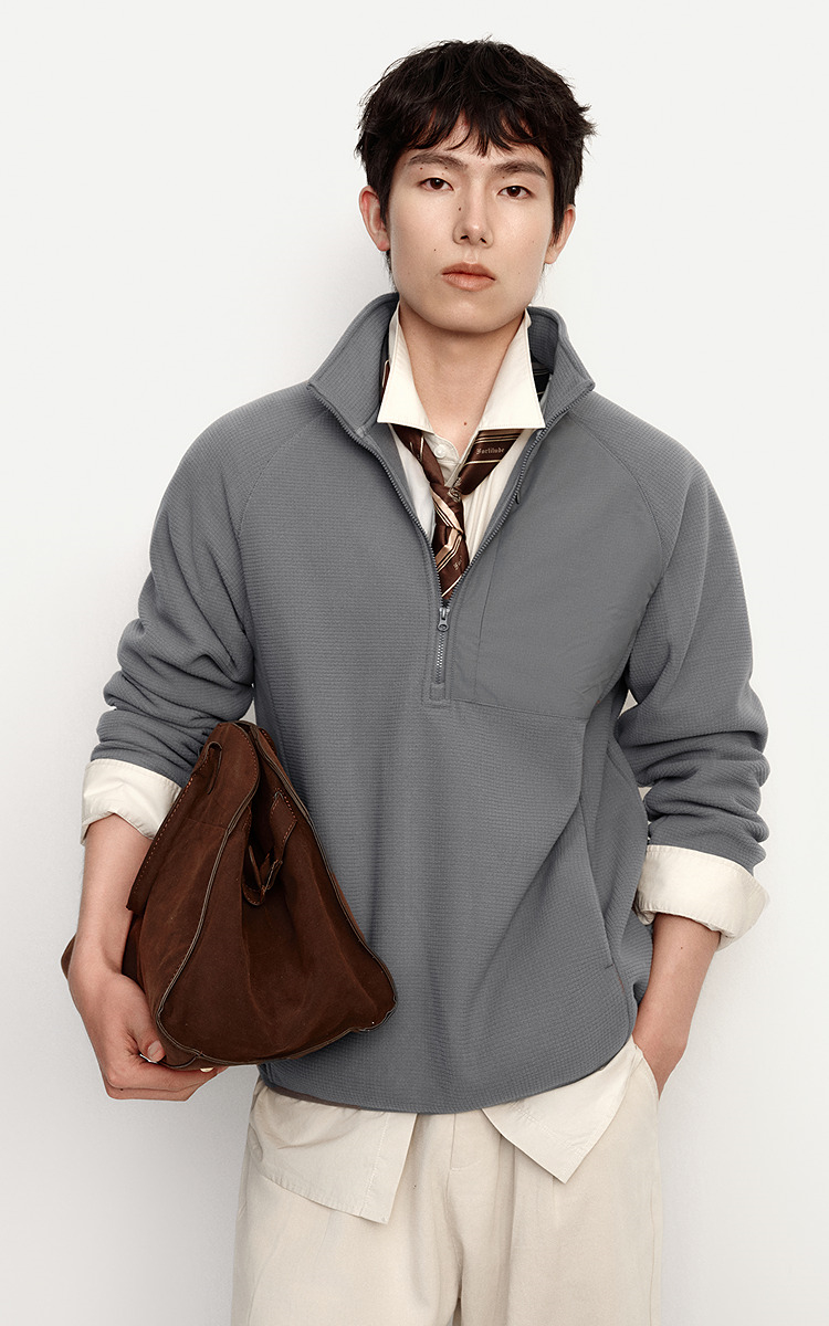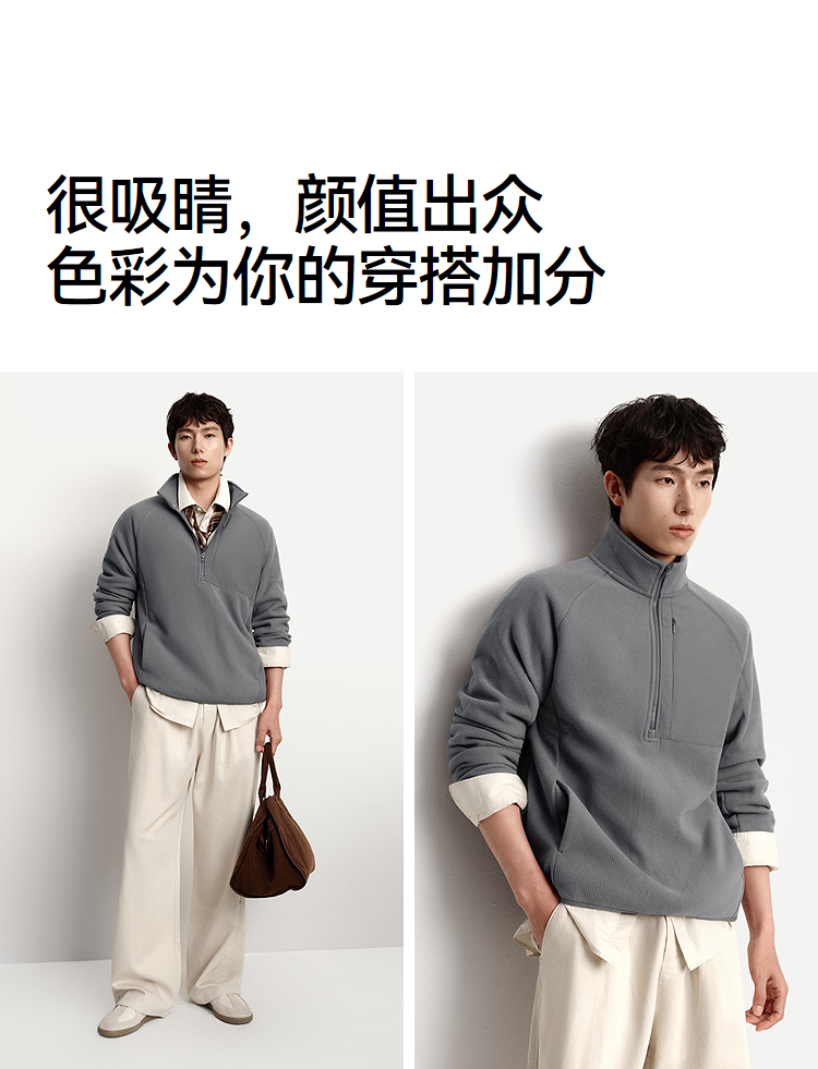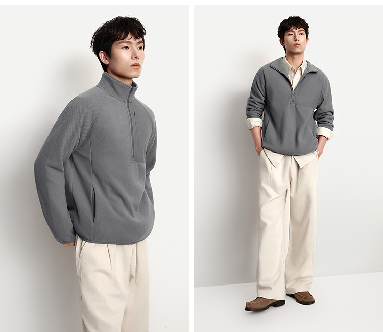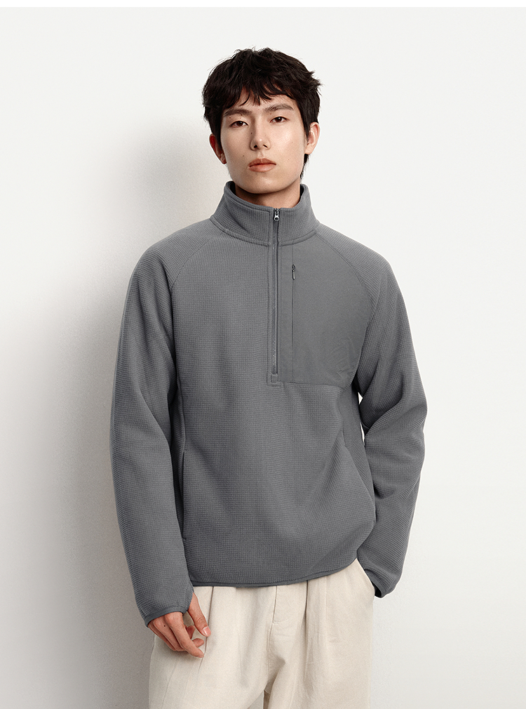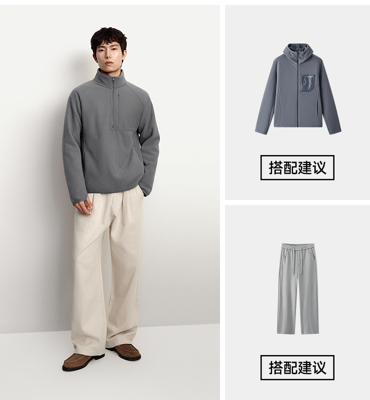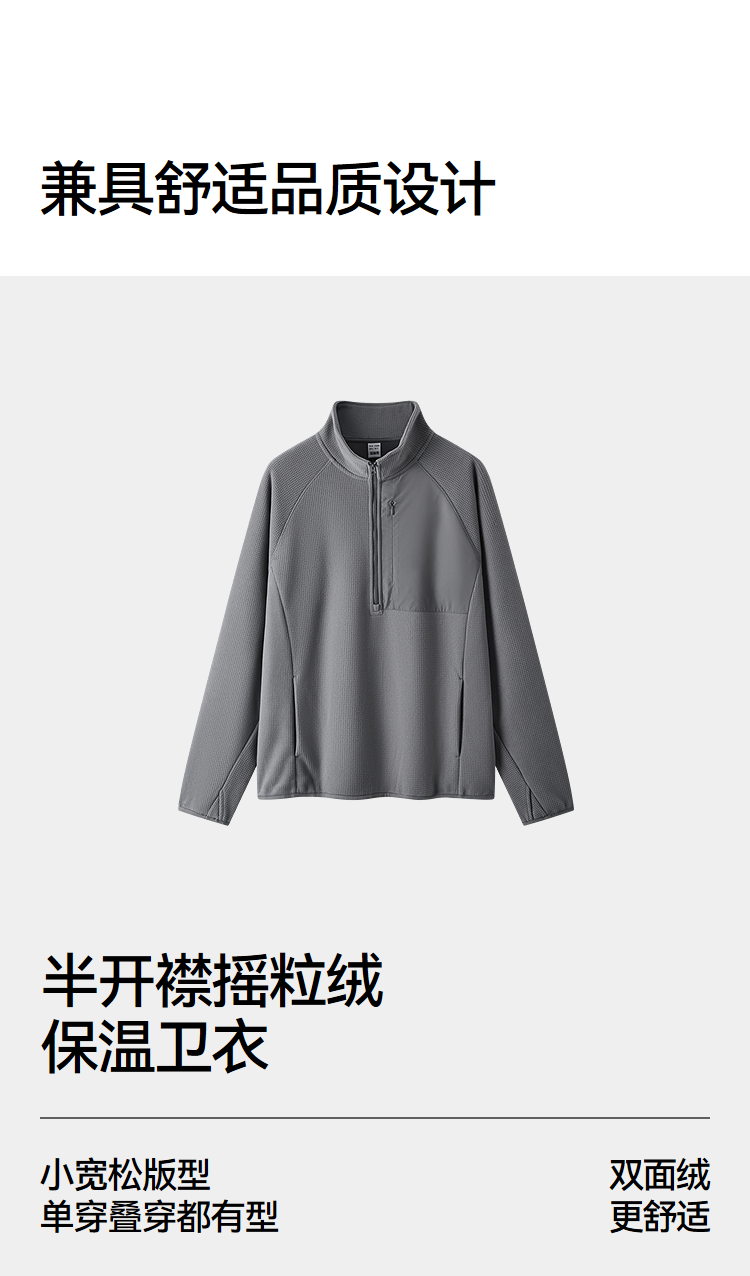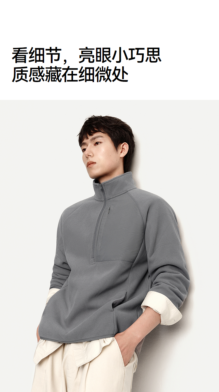 森马卫衣男保温半开襟摇粒绒上衣户外拼接肌理感立领2025冬季新款