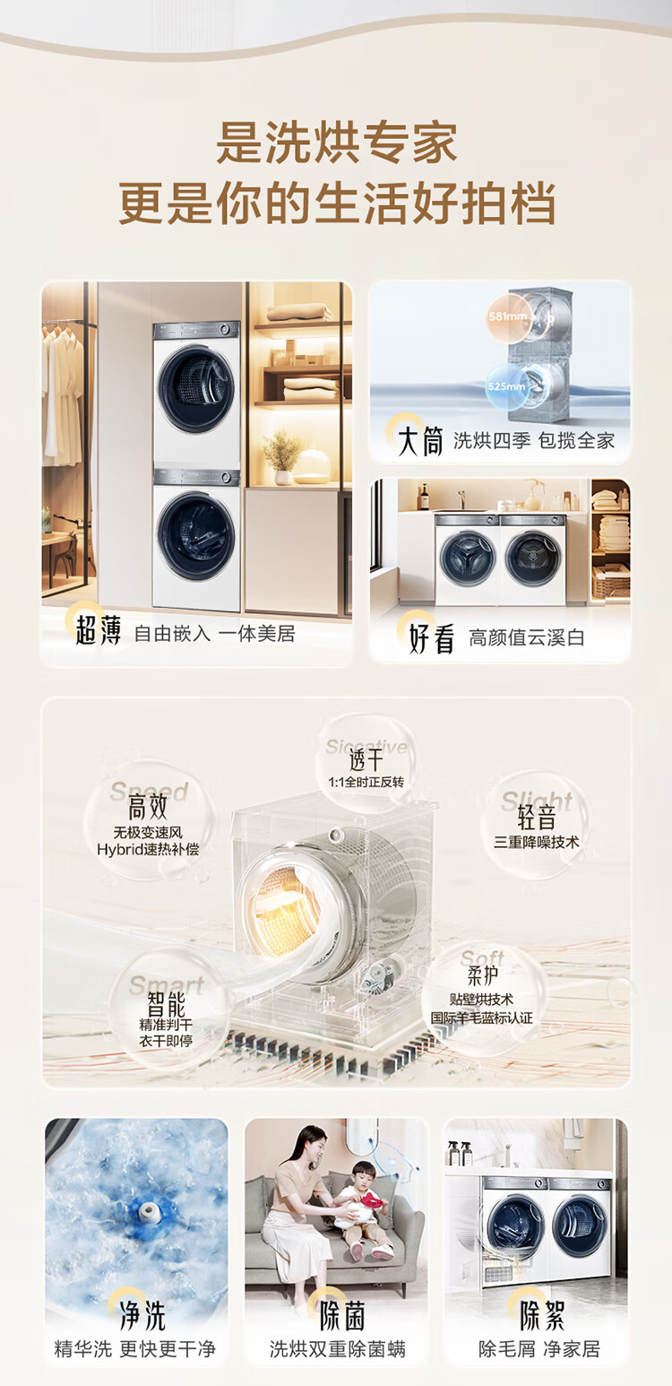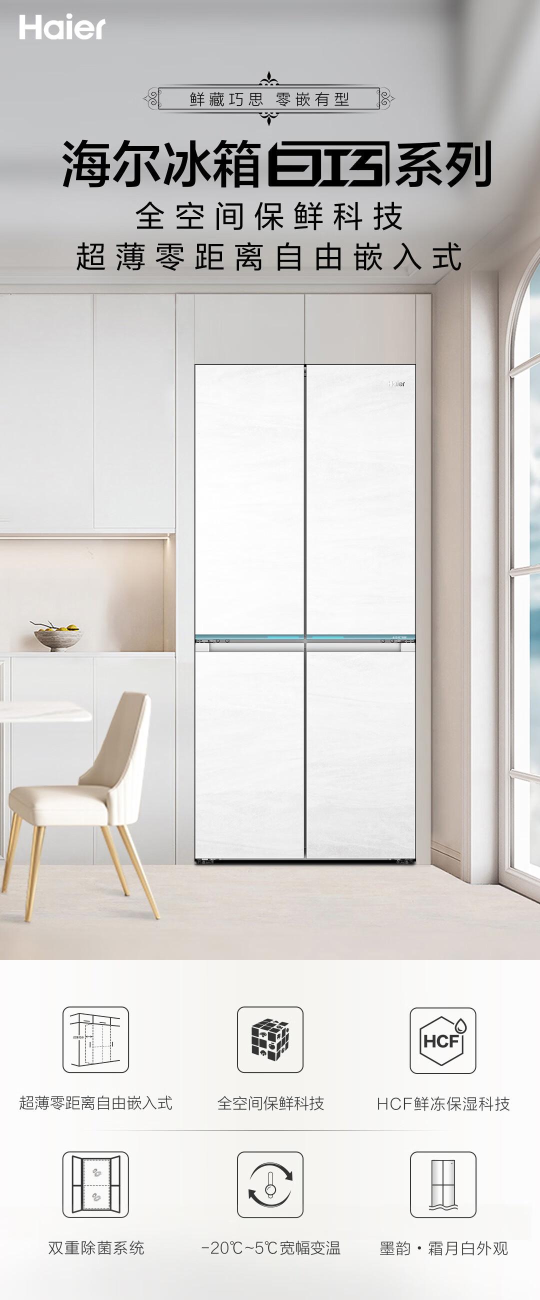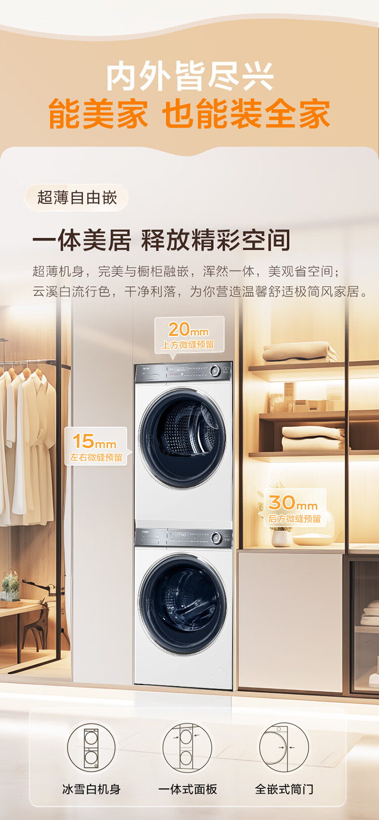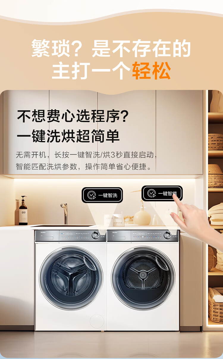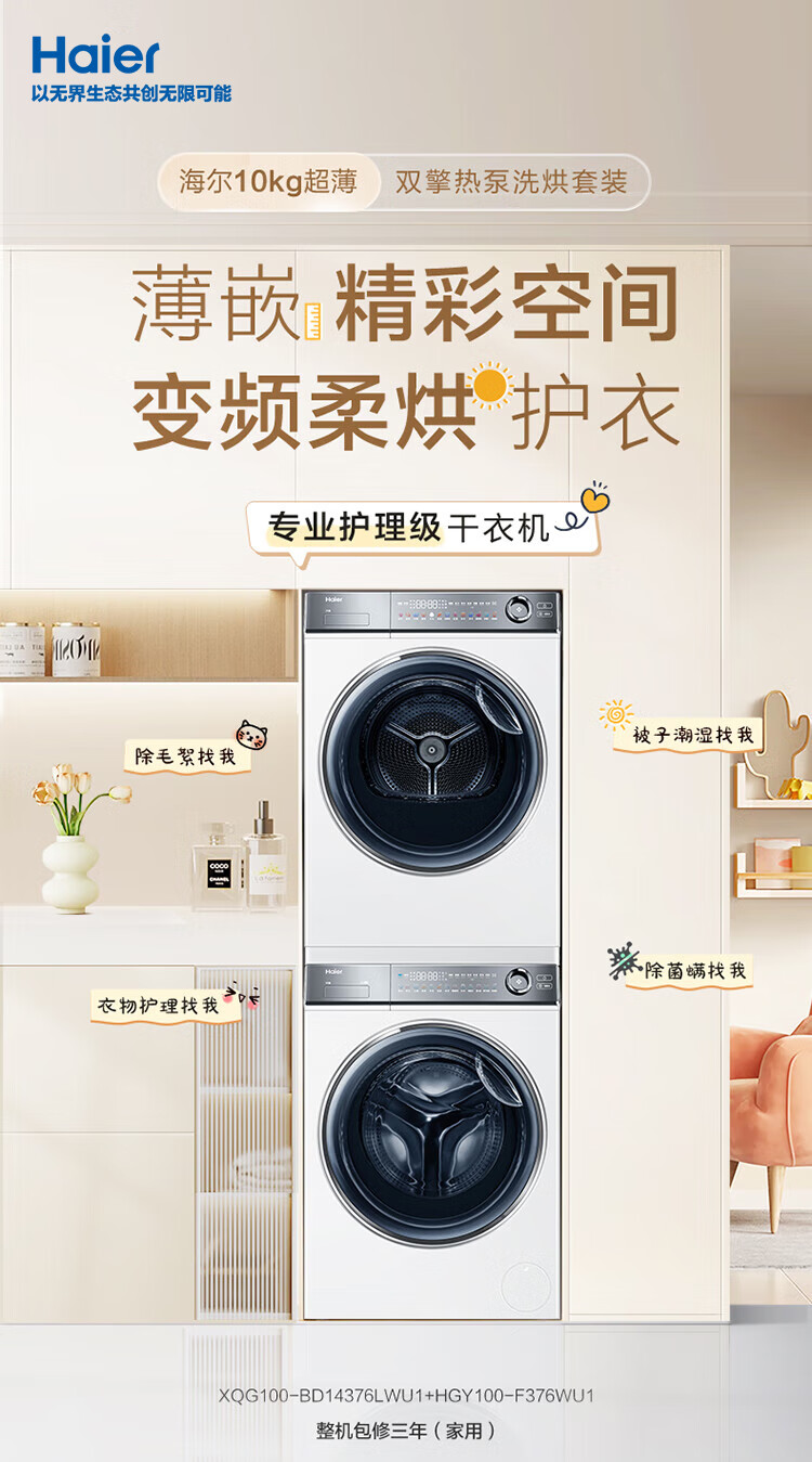 海尔冰洗烘套装云溪白超薄平嵌376W白洗烘套装+白巧系列475L全空间保鲜冰箱376W+475