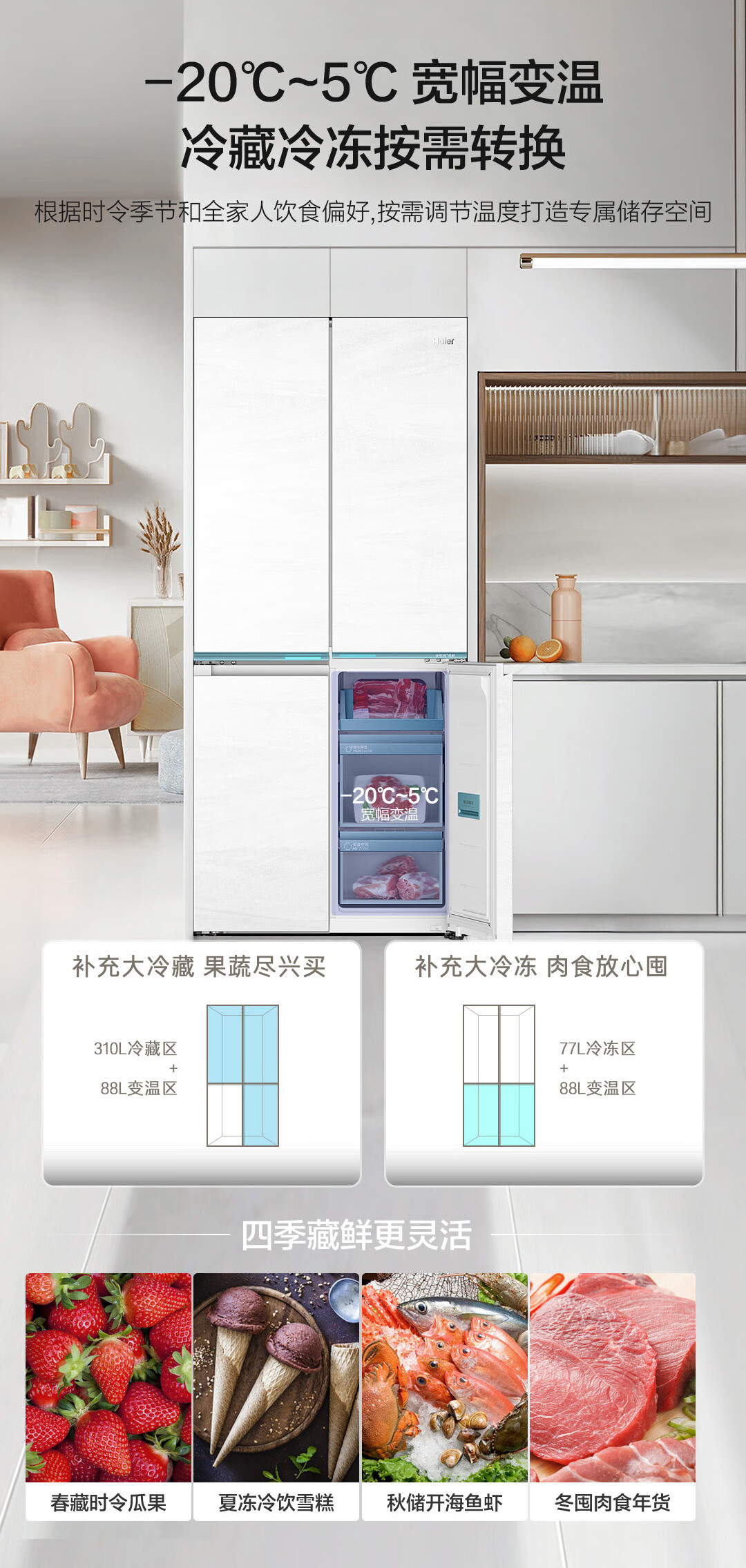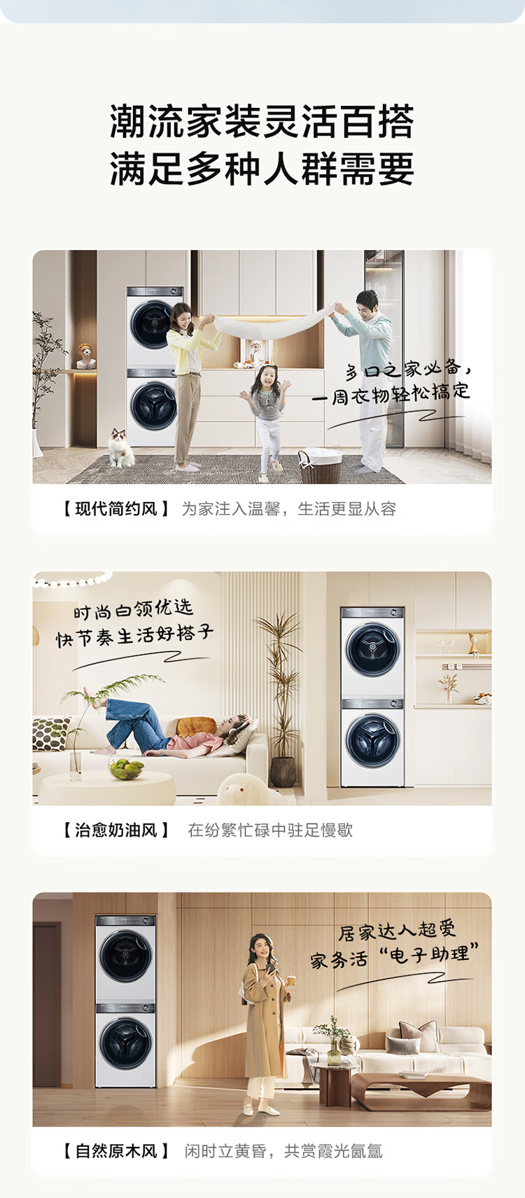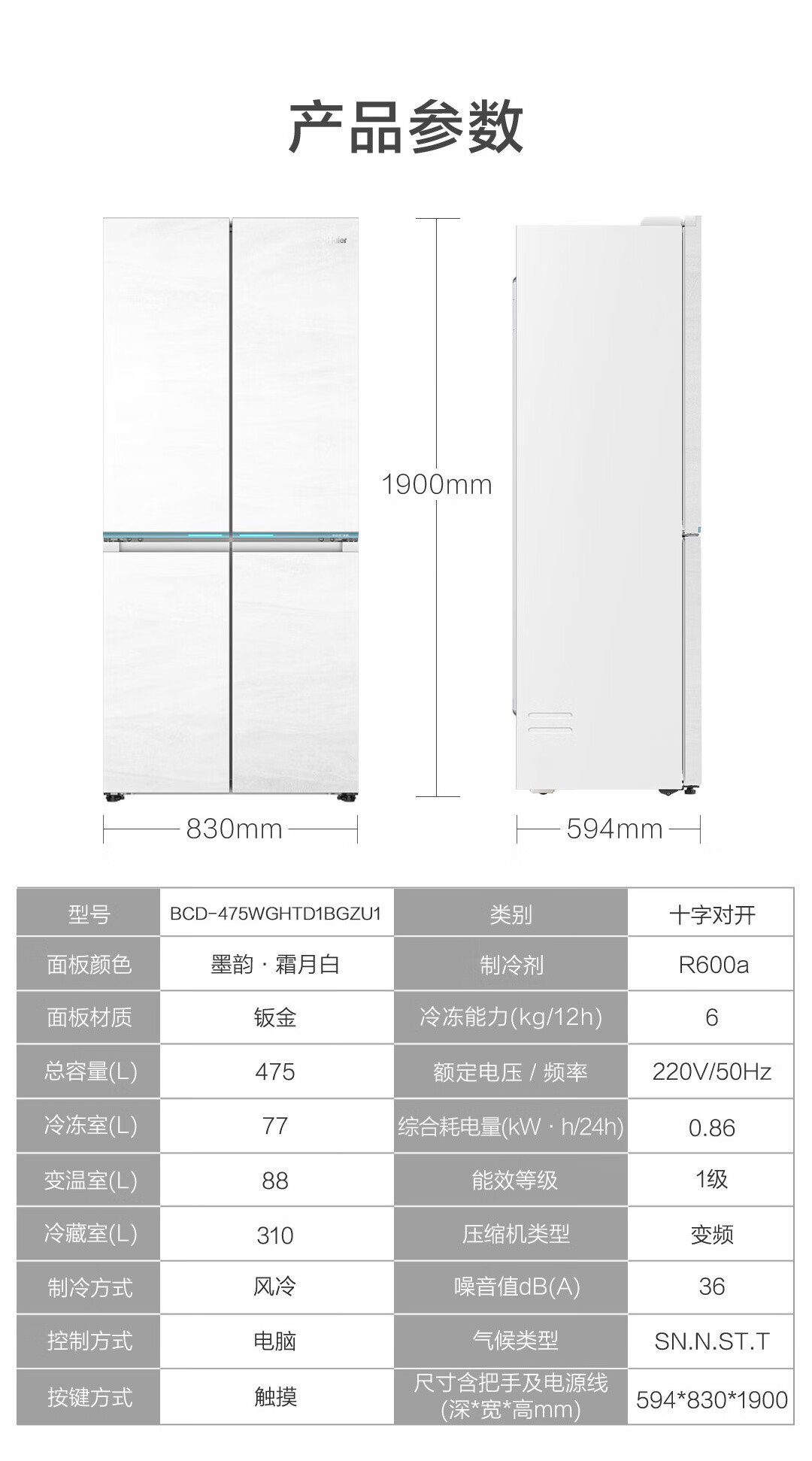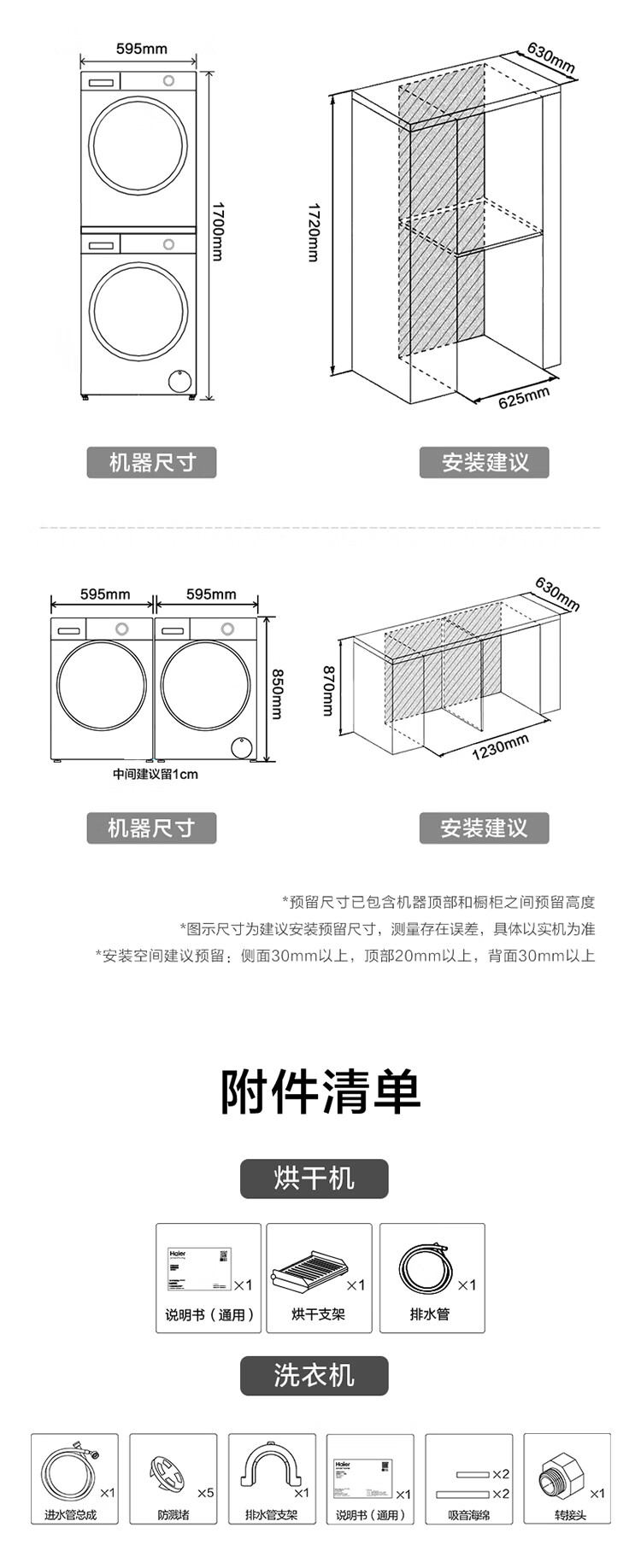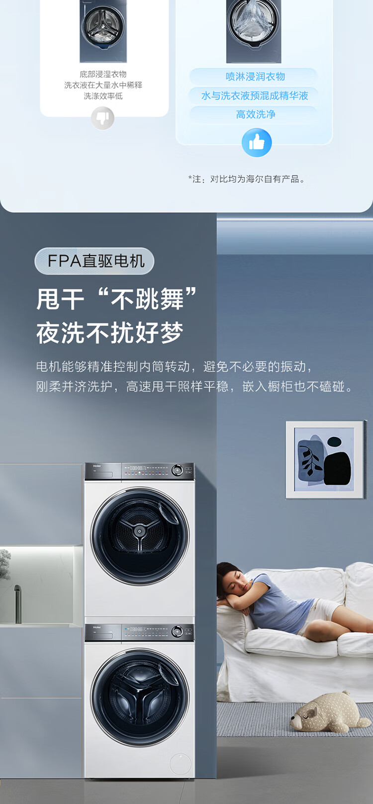 海尔冰洗烘套装云溪白超薄平嵌376W白洗烘套装+白巧系列475L全空间保鲜冰箱376W+475