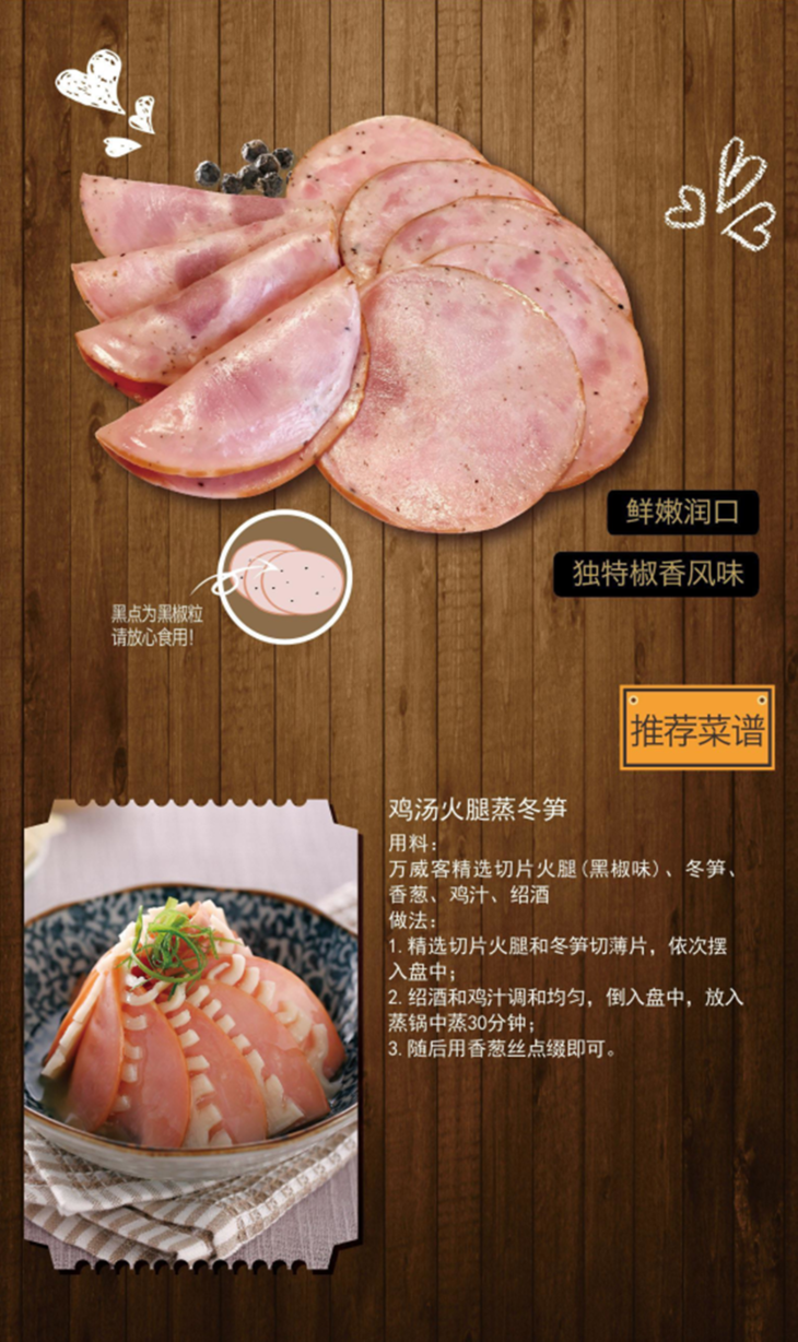 万威客精选切片火腿(黑椒味)50gx3