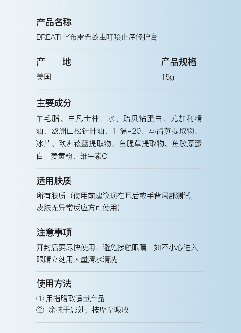 【美国Breathy蚊虫叮咬止痒修复膏】亏本清仓秒杀买一送一!39元到手两瓶!限量前200福利:下单+0.1赠36个驱蚊贴!