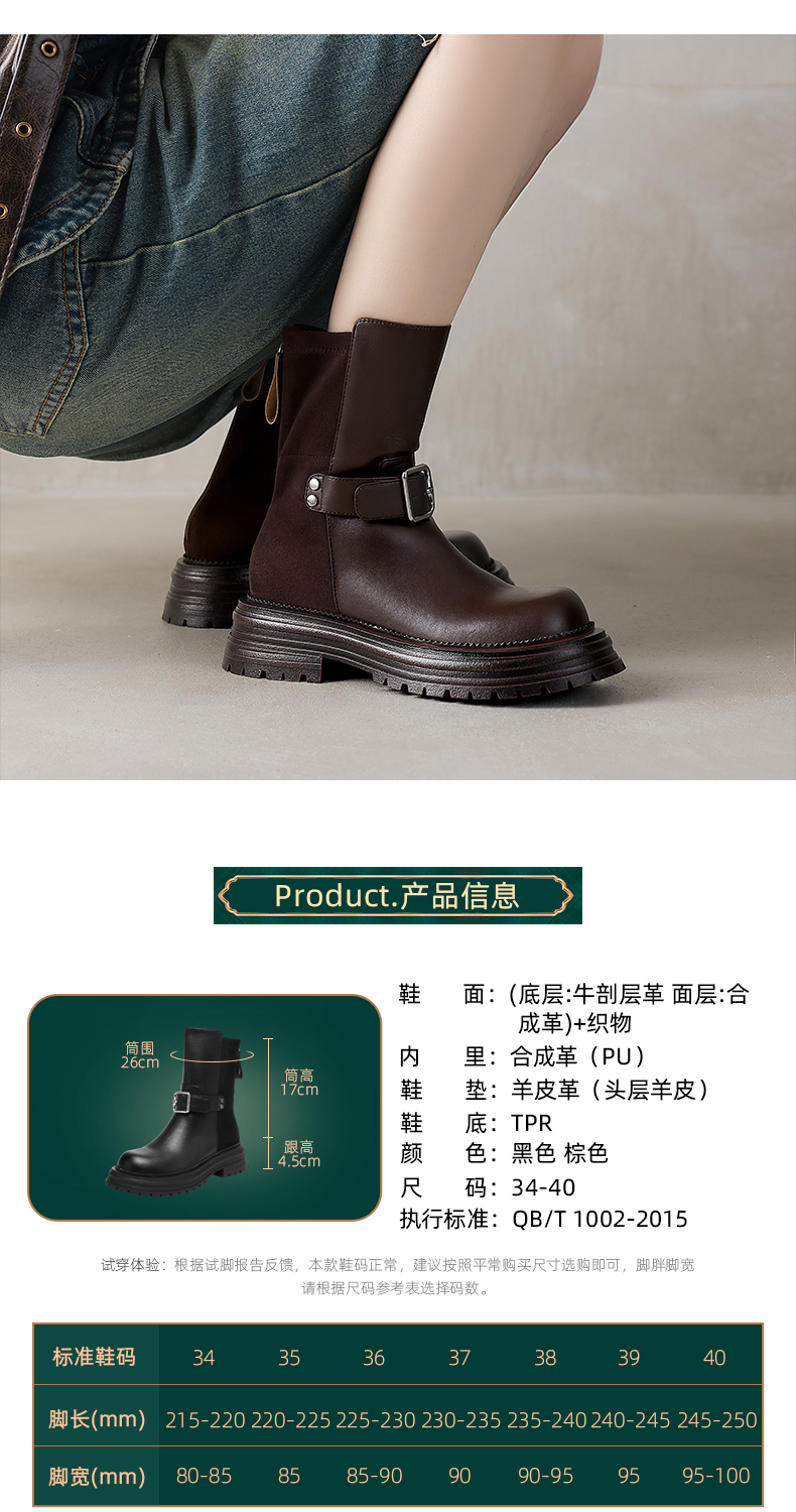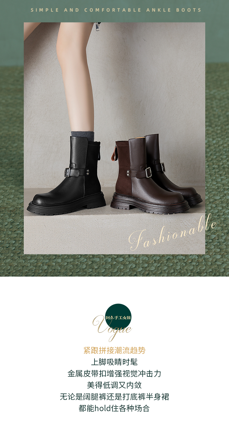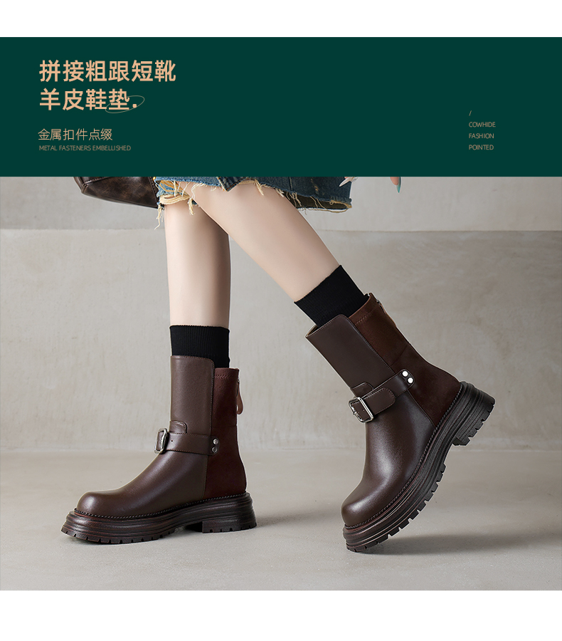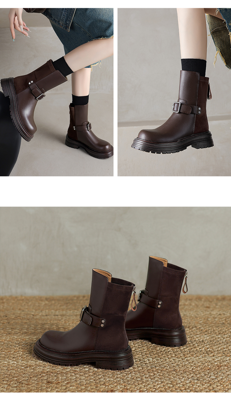 阿么手工女鞋2025新款西部牛仔靴女棕色复古厚底时尚中筒靴4.5CM