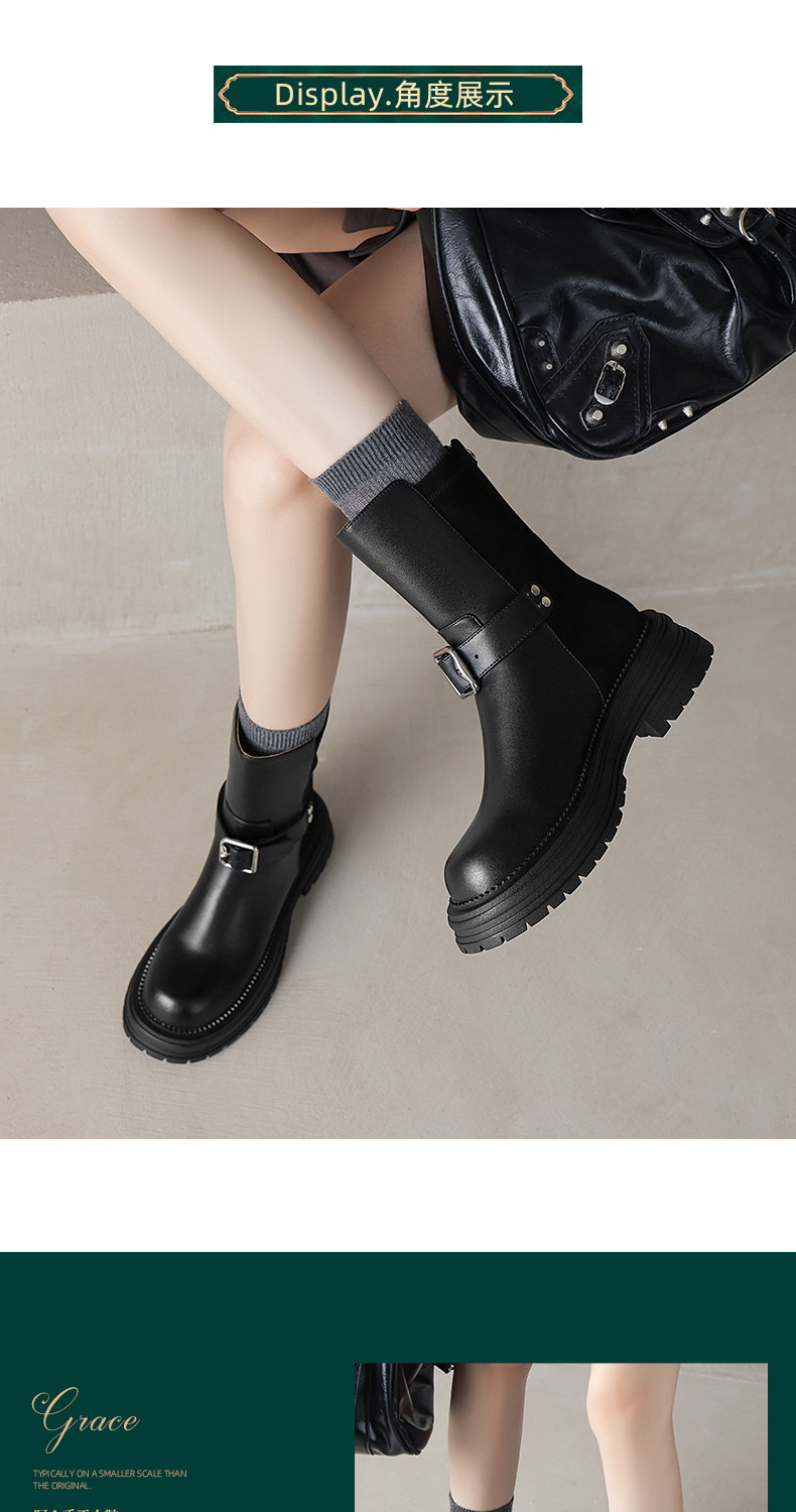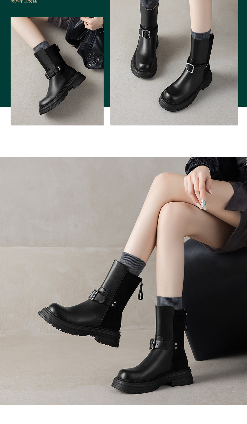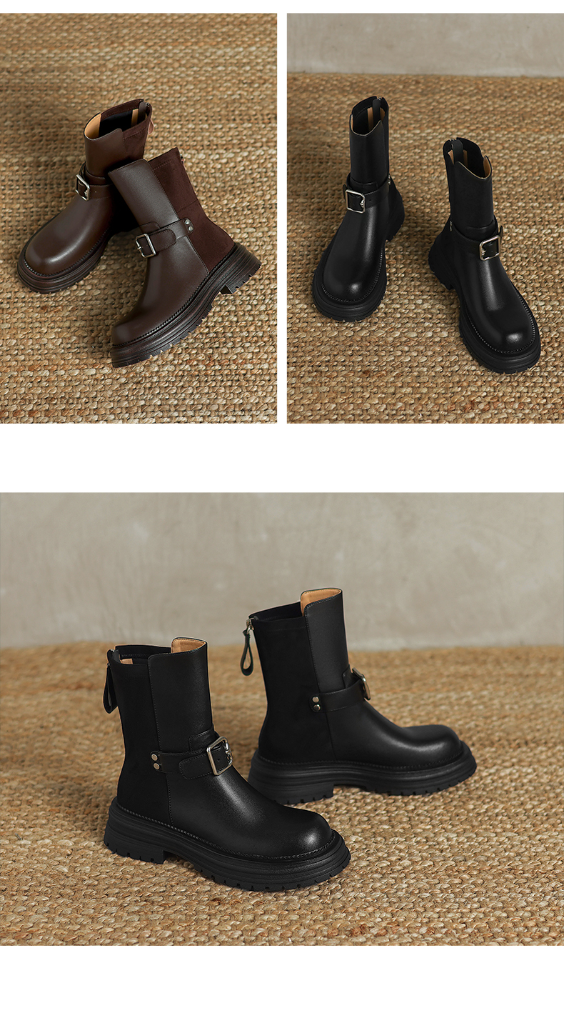 阿么手工女鞋2025新款西部牛仔靴女棕色复古厚底时尚中筒靴4.5CM