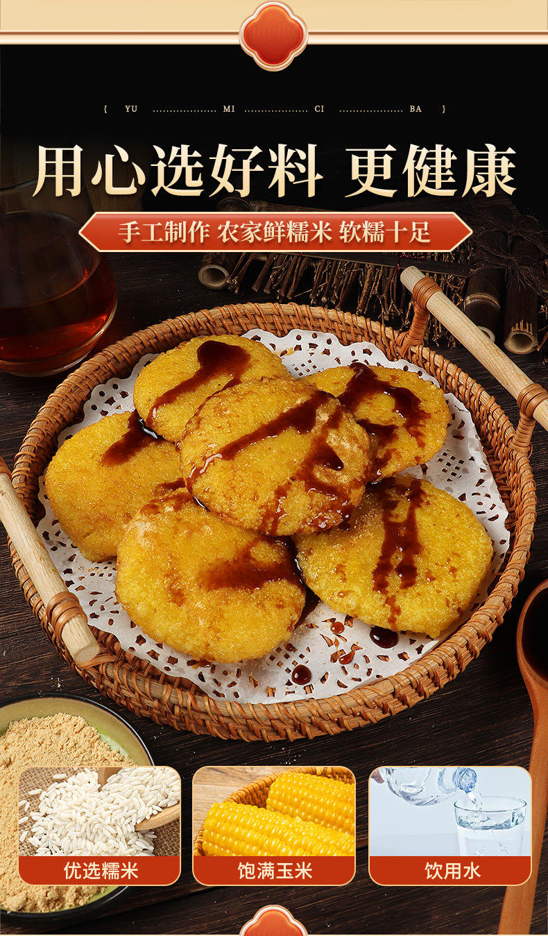 【传统风味,手工糯唧唧玉米糍粑】玉米糍粑纯糯米手工高粱糍粑,色泽金黄口口软糯香味浓郁,粗粮杂粮年糕红糖粑粑代早餐下午茶饱腹感强解馋QQ