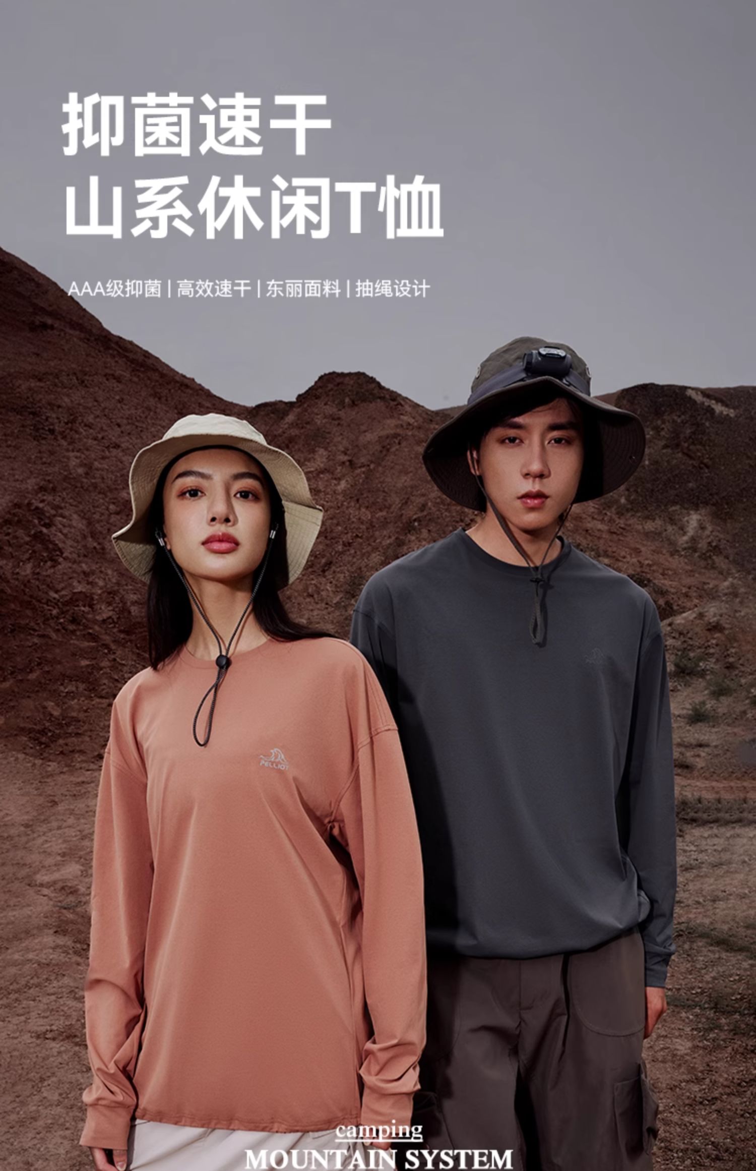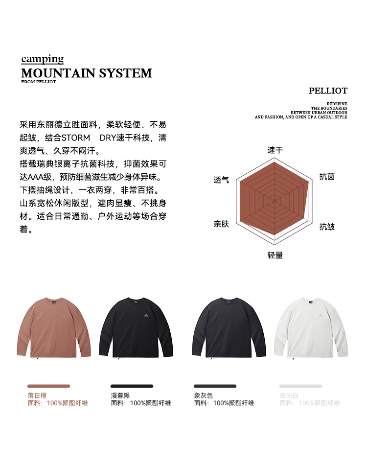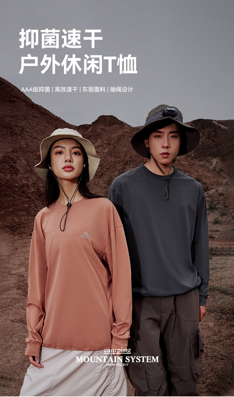 【山系】伯希和户外速干T恤女Polygiene抑菌TORAY男抗皱长袖衣
